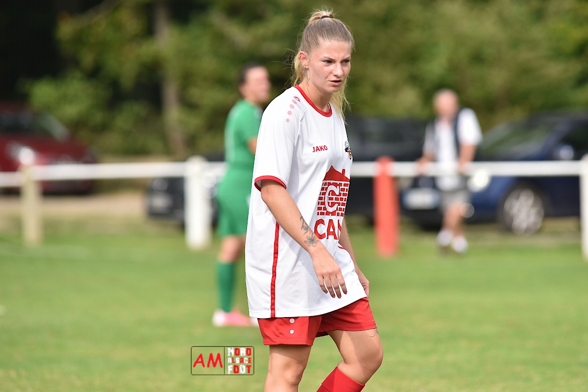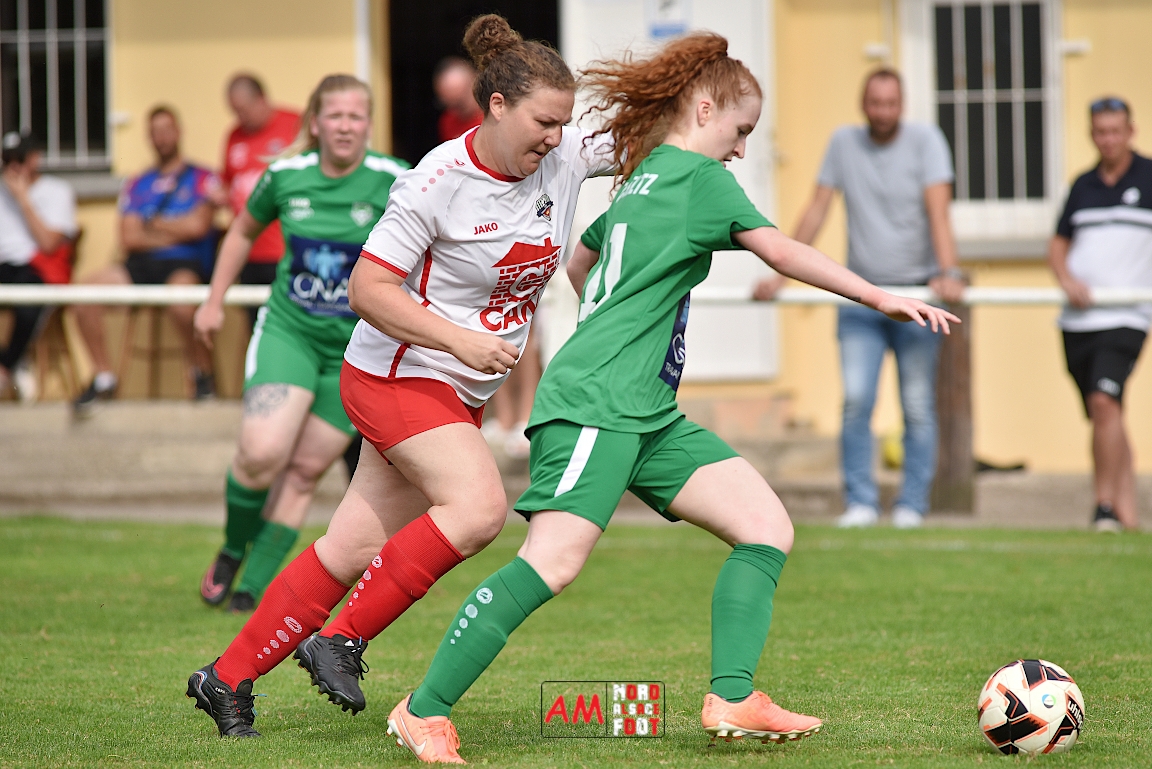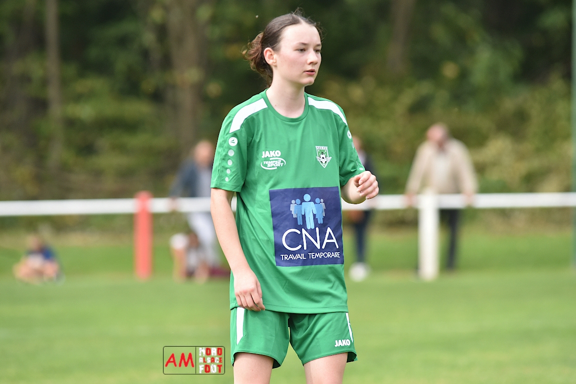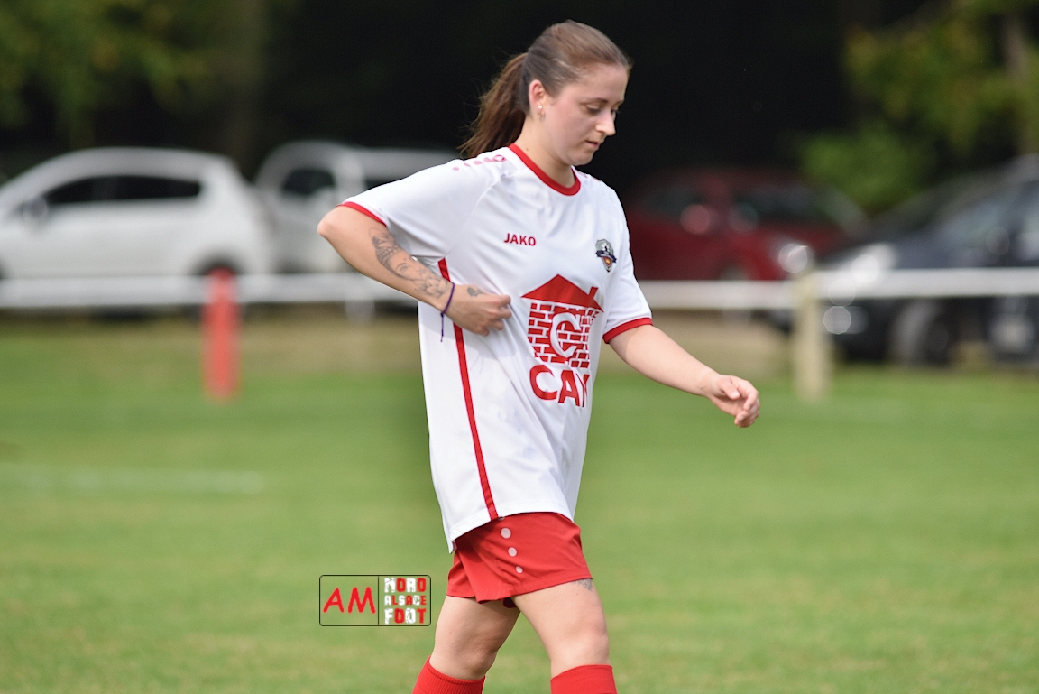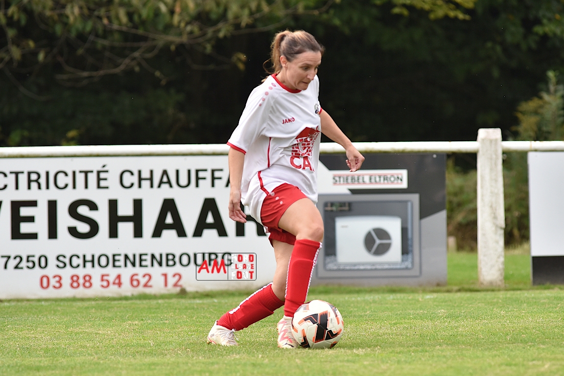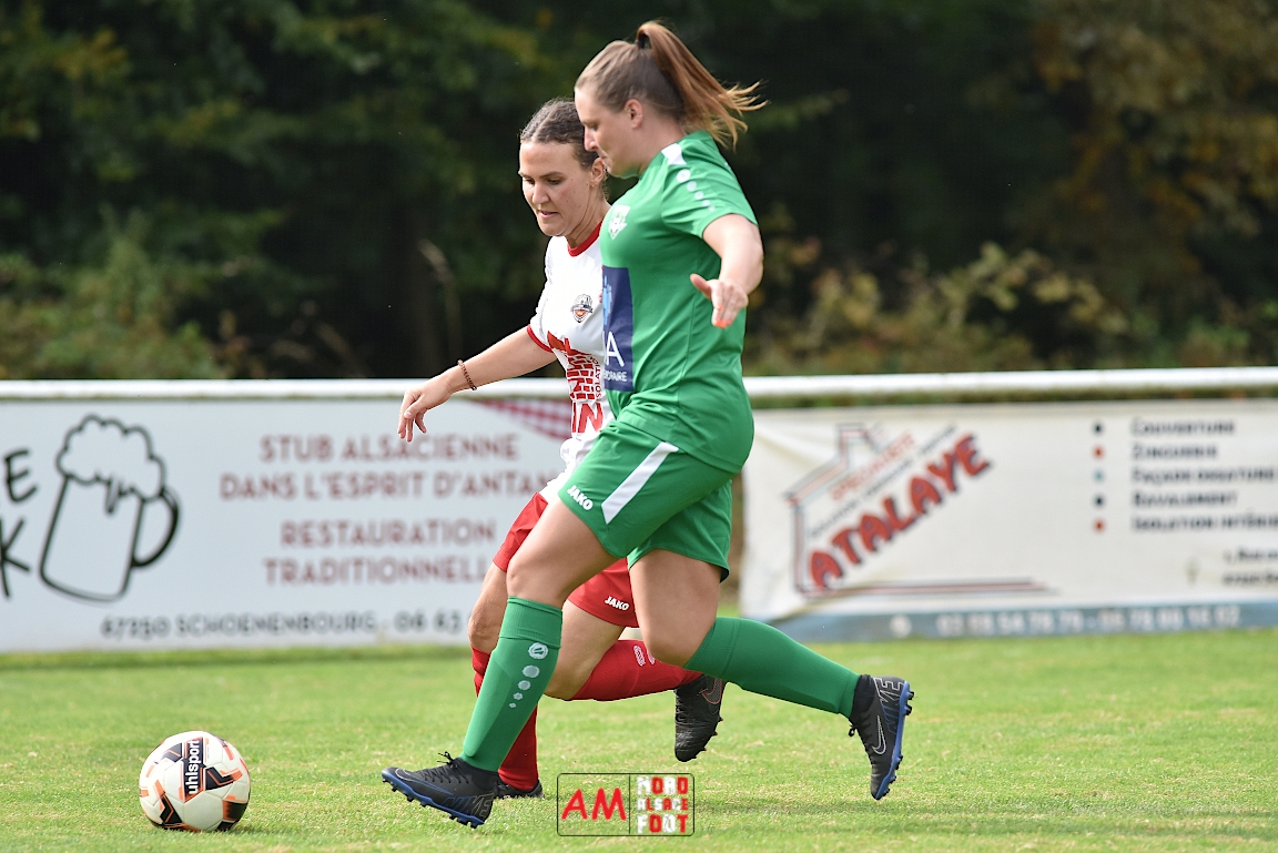 A l’occasion de la troisième journée de championnat chez les Seniors Féminines à 8 (Poule B), le FR Schoenenbourg/M. F accueillait le FC Seltz afin de tenter de rectifier le tir après la défaite enregistrée, il y a deux semaines, face à l’AS Hatten 2 (3-0), et ce, face à des adversaires n’ayant pas encore fait de faux pas en compétition officielle. Après une première période se soldant par un court avantage en faveur des rouges et blanches grâce à une réalisation signée Wagner Marlène (23e), les deux équipes allaient se neutraliser et, malgré les deux grosses occasions que les Seltzoises se sont procurées au cours des dix dernières minutes de jeu, le FR Schoenenbourg/M. F tint bon et s’imposa sur le plus petit des scores. Retrouvez, ci-dessous, quelques images de cette rencontre et, pour en apprécier le contenu, veuillez cliquer sur l’une d’entre-elles pour afficher le diaporama.