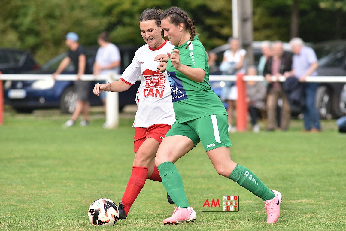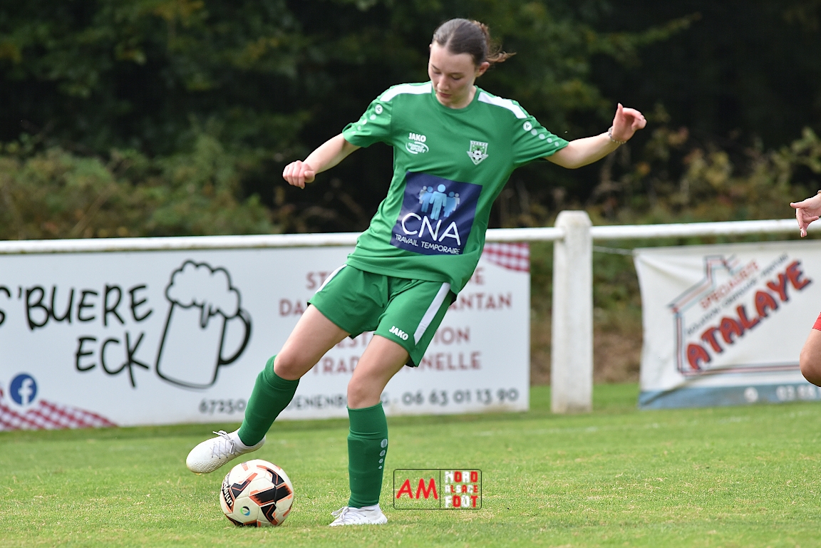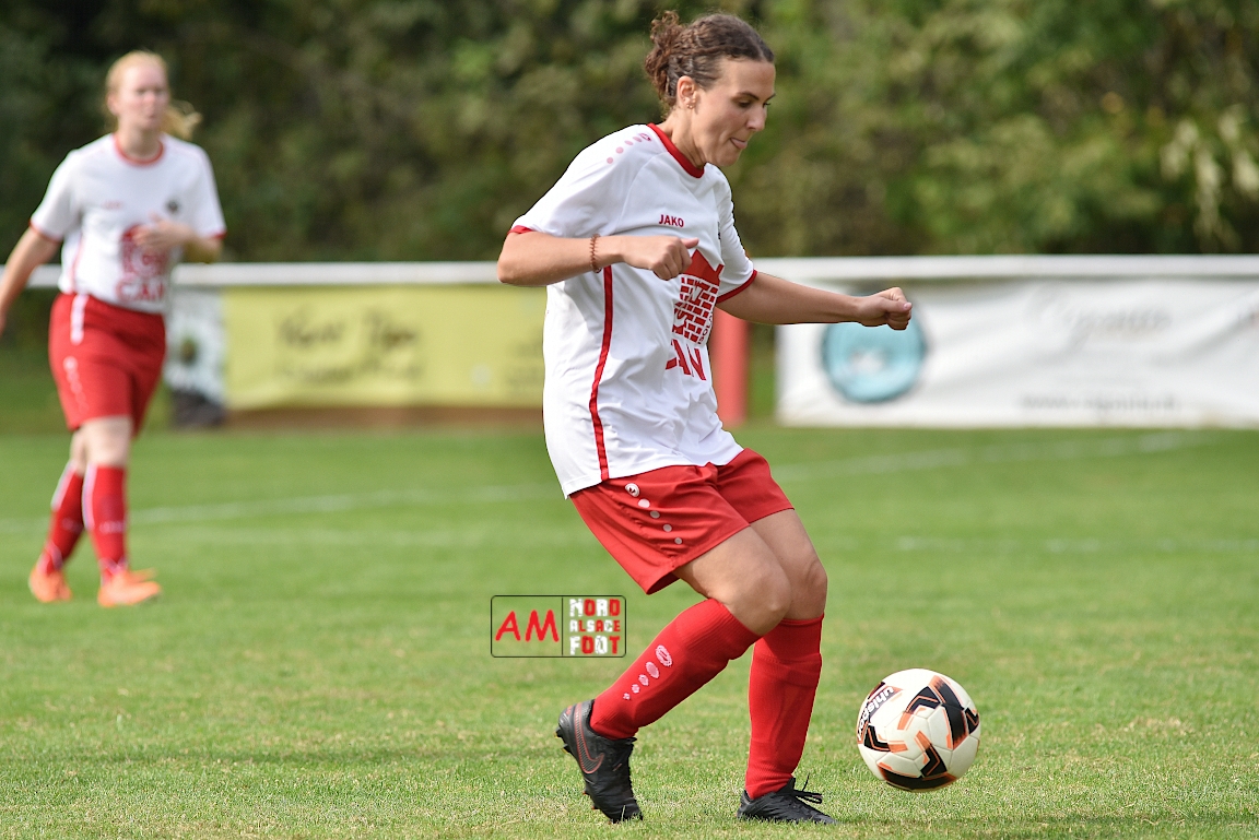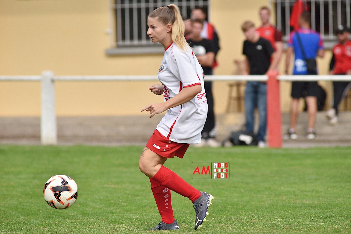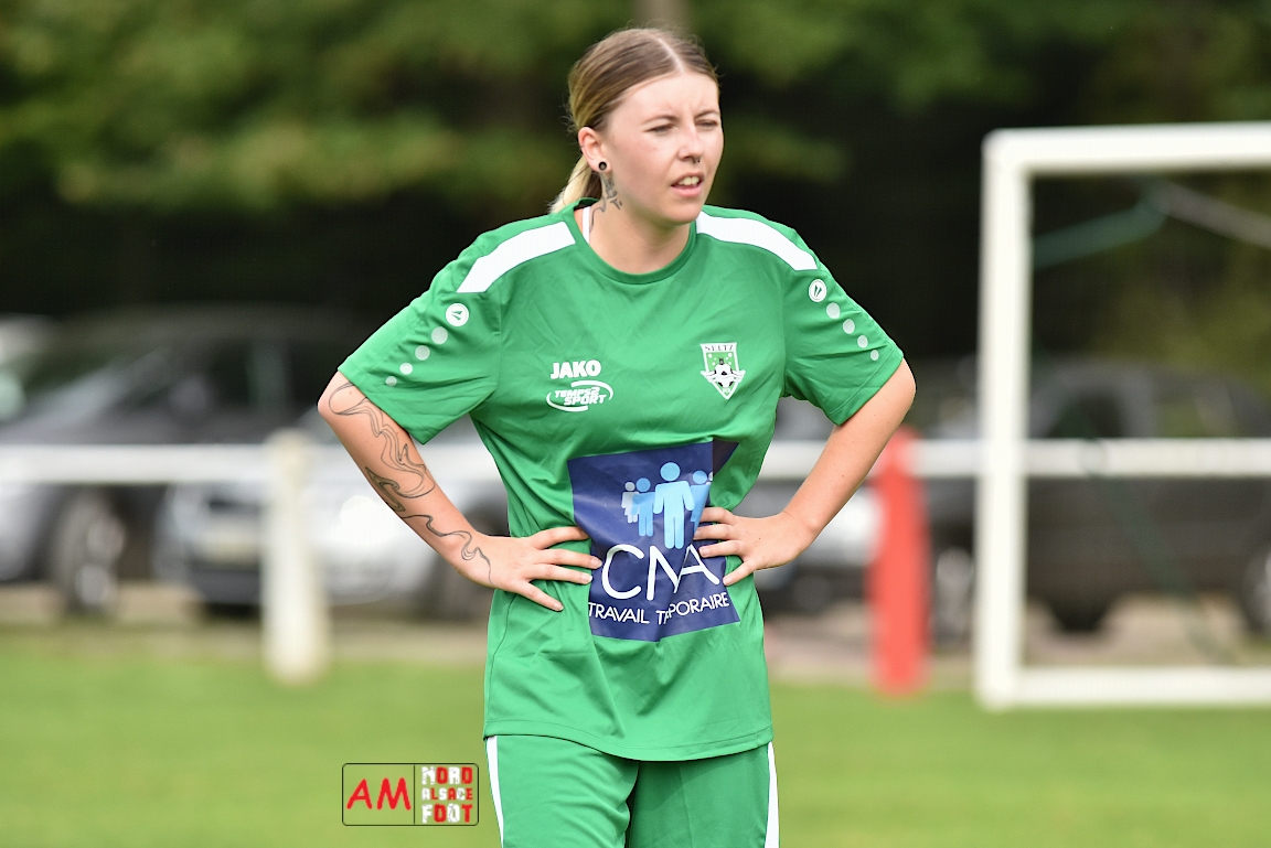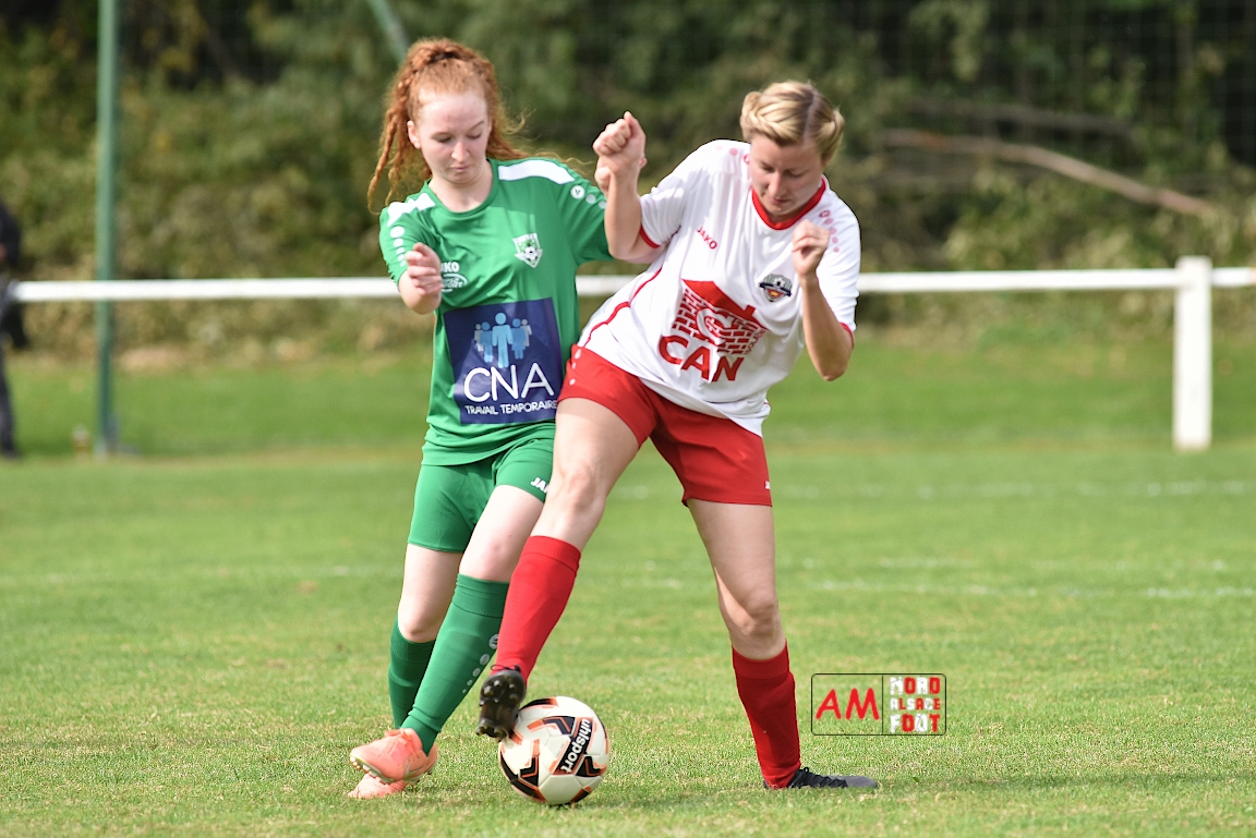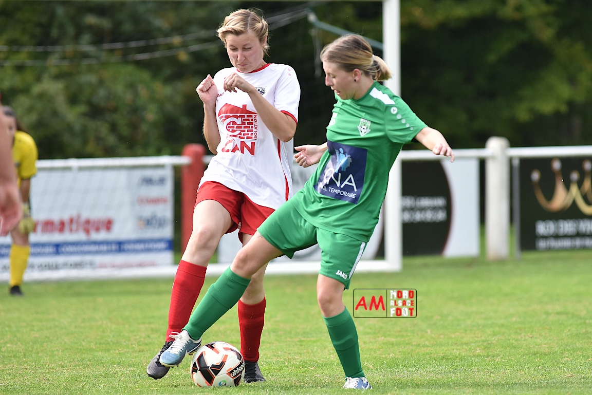 A l’occasion de la troisième journée de championnat chez les Seniors Féminines à 8 (Poule B), le FR Schoenenbourg/M. F accueillait le FC Seltz afin de tenter de rectifier le tir après la défaite enregistrée, il y a deux semaines, face à l’AS Hatten 2 (3-0), et ce, face à des adversaires n’ayant pas encore fait de faux pas en compétition officielle. Après une première période se soldant par un court avantage en faveur des rouges et blanches grâce à une réalisation signée Wagner Marlène (23e), les deux équipes allaient se neutraliser et, malgré les deux grosses occasions que les Seltzoises se sont procurées au cours des dix dernières minutes de jeu, le FR Schoenenbourg/M. F tint bon et s’imposa sur le plus petit des scores. Retrouvez, ci-dessous, quelques images de cette rencontre et, pour en apprécier le contenu, veuillez cliquer sur l’une d’entre-elles pour afficher le diaporama.