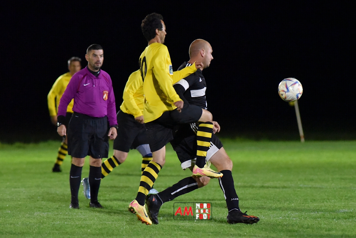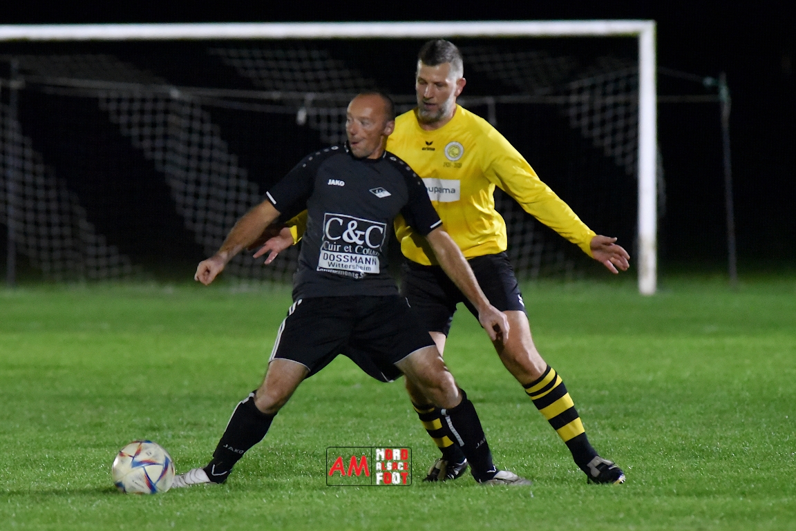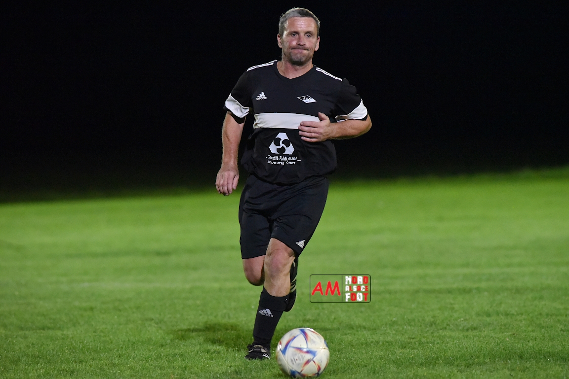A l’occasion de la troisième journée de championnat chez les Vétérans (Groupe D), l’entente Rittershoffen/Betschdorf 81 accueillait l’entente Wissembourg/EWAS 81 afin de tenter de confirmer leur récent succès décoché face aux Vétérans de l’Outre-Forêt (0-4), et ce, face à des adversaires pouvant viser la place de leader du groupe en faveur d’une victoire ce vendredi en cas de victoire. Après une première période se soldant par un léger avantage en faveur des visiteurs grâce à des réalisations signées Billmann Stéphane (6e) et Kose Ozcan (16e) contre un but inscrit pas Spangenberger Cyril (11e) en faveur des locaux, ces derniers allaient parvenir à égaliser à la 70e minute de jeu par l’intermédiaire de Rempp Stéphane avant que les jaunes et noirs n’arrachent la victoire dans les ultimes secondes du temps additionnel grâce à l’opportunisme de Ehrismann Arnaud (70e+4). Retrouvez, ci-dessous, quelques images de cette rencontre et, pour en apprécier le contenu, veuillez cliquer sur l’une d’entre-elles pour afficher le diaporama.