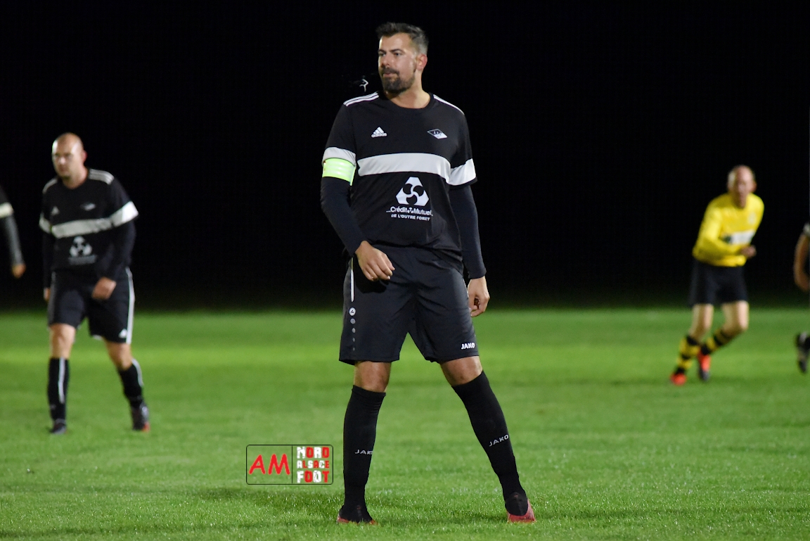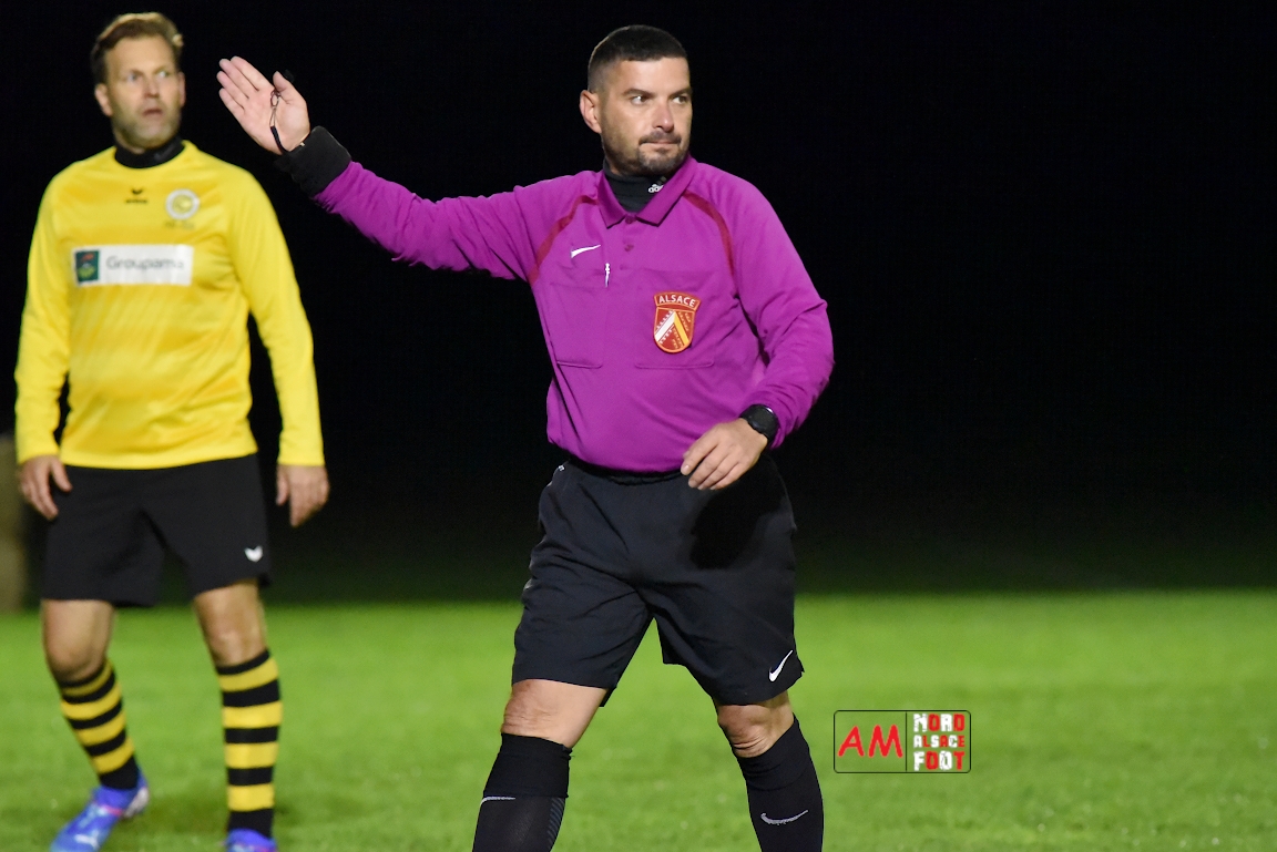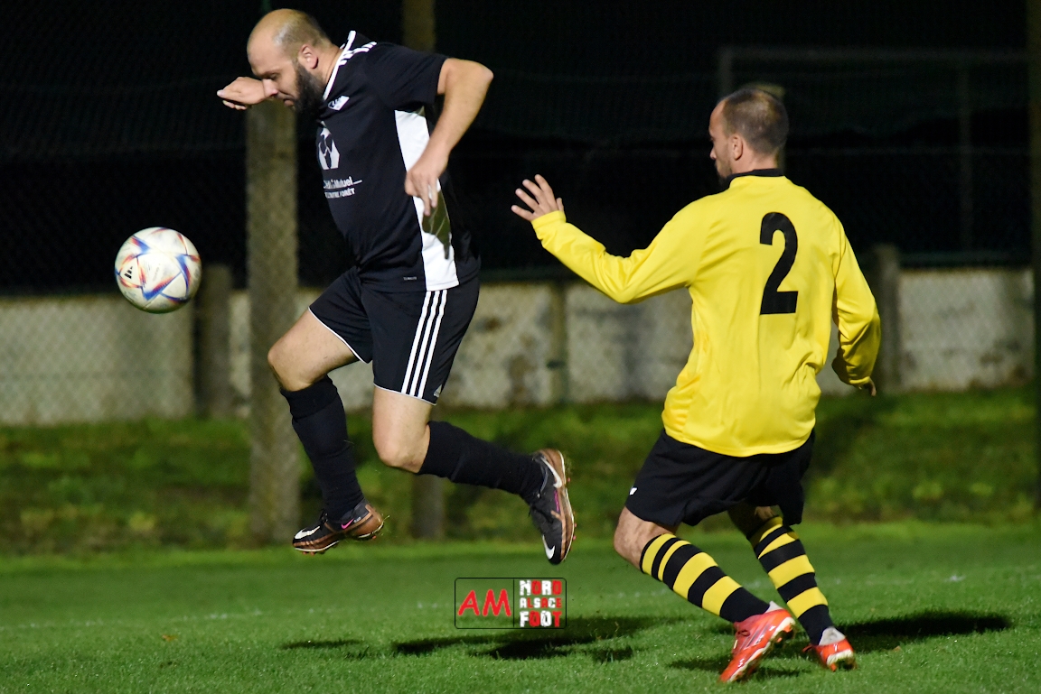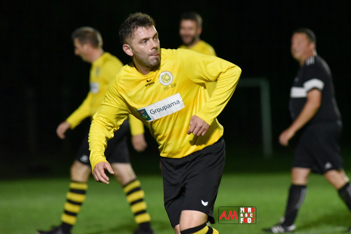 A l’occasion de la troisième journée de championnat chez les Vétérans (Groupe D), l’entente Rittershoffen/Betschdorf 81 accueillait l’entente Wissembourg/EWAS 81 afin de tenter de confirmer leur récent succès décoché face aux Vétérans de l’Outre-Forêt (0-4), et ce, face à des adversaires pouvant viser la place de leader du groupe en faveur d’une victoire ce vendredi en cas de victoire. Après une première période se soldant par un léger avantage en faveur des visiteurs grâce à des réalisations signées Billmann Stéphane (6e) et Kose Ozcan (16e) contre un but inscrit pas Spangenberger Cyril (11e) en faveur des locaux, ces derniers allaient parvenir à égaliser à la 70e minute de jeu par l’intermédiaire de Rempp Stéphane avant que les jaunes et noirs n’arrachent la victoire dans les ultimes secondes du temps additionnel grâce à l’opportunisme de Ehrismann Arnaud (70e+4). Retrouvez, ci-dessous, quelques images de cette rencontre et, pour en apprécier le contenu, veuillez cliquer sur l’une d’entre-elles pour afficher le diaporama.