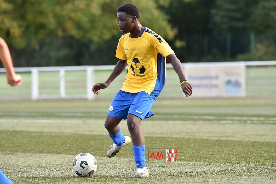 A l’occasion du premier tour de la Coupe Grand Est pour la catégorie U17, le Groupement Jeunes d’Alsace du Nord accueillait le FC Soleil Bischheim afin de confirmer leur récent succès décroché en championnat le week-end passé face à cette même équipe (1-3). Après une première période se soldant par un avantage confortable en faveur des visiteurs (0-2), les locaux réduisirent la marque en début de seconde période avant que leurs adversaires ne fasse définitivement le break. Retrouvez, ci-dessous, quelques images de cette rencontre et, pour en apprécier le contenu, veuillez cliquer sur l’une d’entre-elles pour afficher le diaporama.