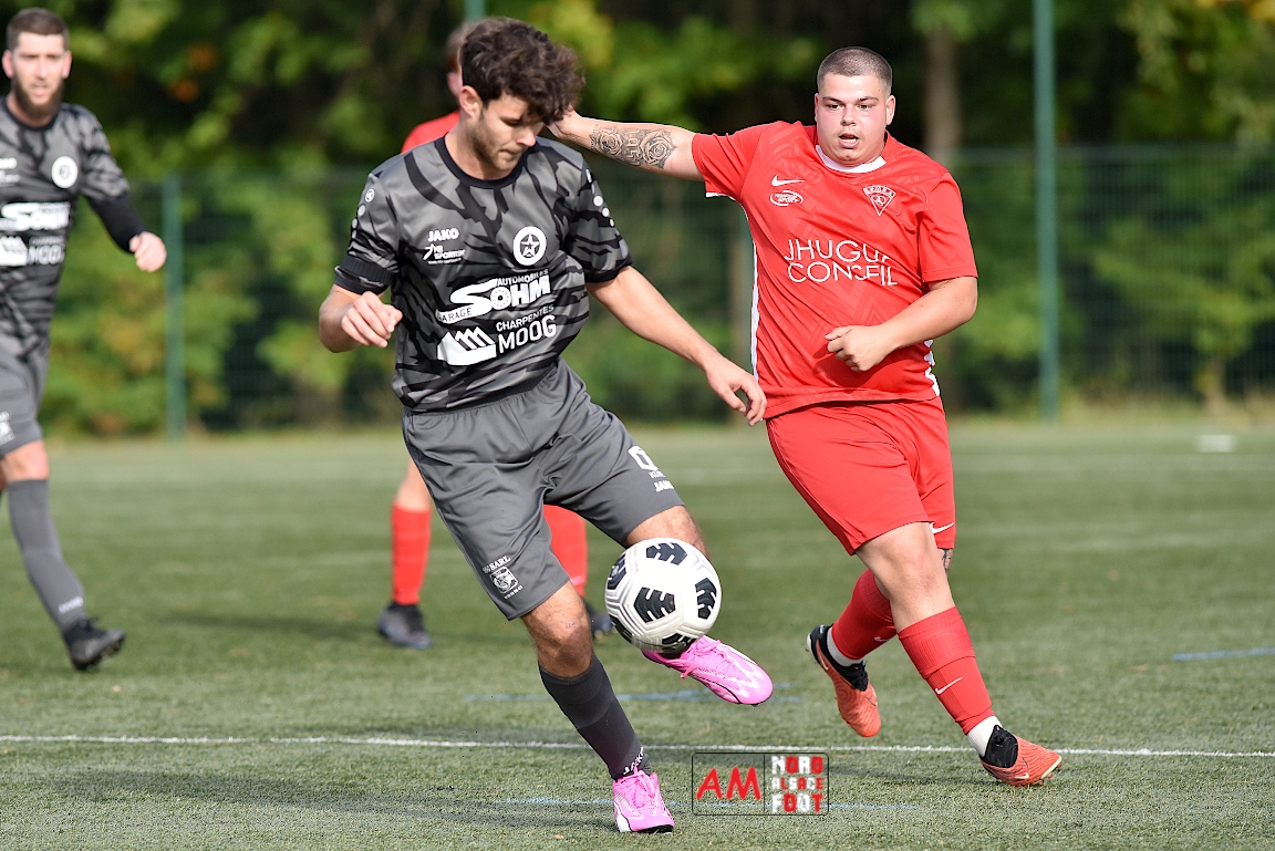A l’occasion du second tour du Challenge des Réserves – Vivialys, le FCE Schirrhein-Schirrhoffen 4 (District 7) accueillait le SR Rountzenheim/Auenheim 2 (District 7) afin de tenter de passer ce tour sans encombres face à des adversaires qu’ils recroiseront en championnat le 3 novembre prochain. Après une première période se soldant par un avantage confortable en faveur des locaux grâce à des réalisations signées Scherer Enzo (8e) et Ludwig Lionel (41e), ces derniers allaient ajouter un but au compteur par l’intermédiaire de Nedjai Yanis (51e) avant que les visiteurs ne réduisent la marque à la 81e minute de jeu par l’intermédiaire de Baumont Anthony et, dans les minutes suivantes, les gris allaient un peu plus creuser l’écart grâce à un but sur penalty inscrit par Mosser Julien (82e) et grâce à une réalisation signée Clar Aurélien (85e). Retrouvez, ci-dessous, quelques images de cette rencontre et, pour en apprécier le contenu, veuillez cliquer sur l’une d’entre-elles pour afficher le diaporama.