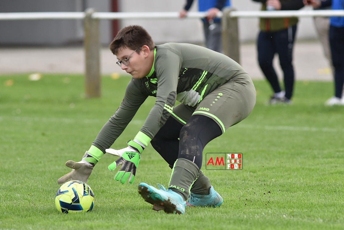 A l’occasion de la sixième journée de championnat chez les U13/D4 (Poule B), les U13-3 de l’Entente Plaine du Rhin (3e) accueillait les U13-2 du Groupement Vallée de la Sauer (6e et lanterne rouge) afin de tenter de confirmer leur récent succès décroché face aux U13-3 de la Section Jeunes Surbourg Betschdorf (6-7), et ce, face à des adversaires cherchant leur(s) premier(s) point(s). Après une première période se soldant par un large avantage en faveur des locaux (5-1), ces derniers allaient poursuivre sur leur lancée en seconde période en ajoutant quatre buts au compteur avant qu’ils ne finissent par s’imposer sur ce score de 9-1! Retrouvez, ci-dessous, quelques images de cette rencontre et, pour en apprécier le contenu, veuillez cliquer sur l’une d’entre-elles pour afficher le diaporama.