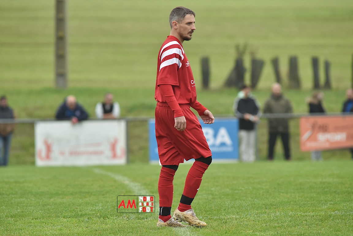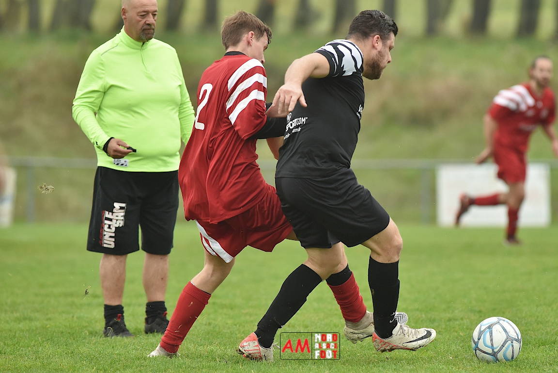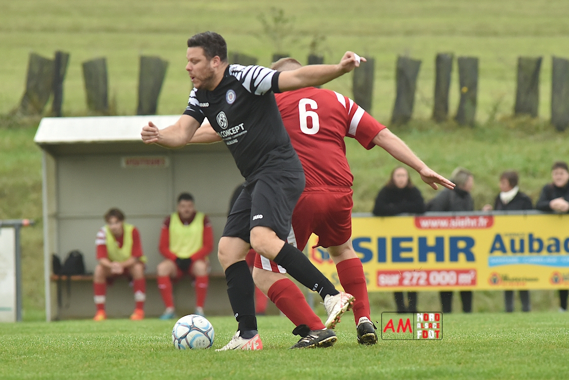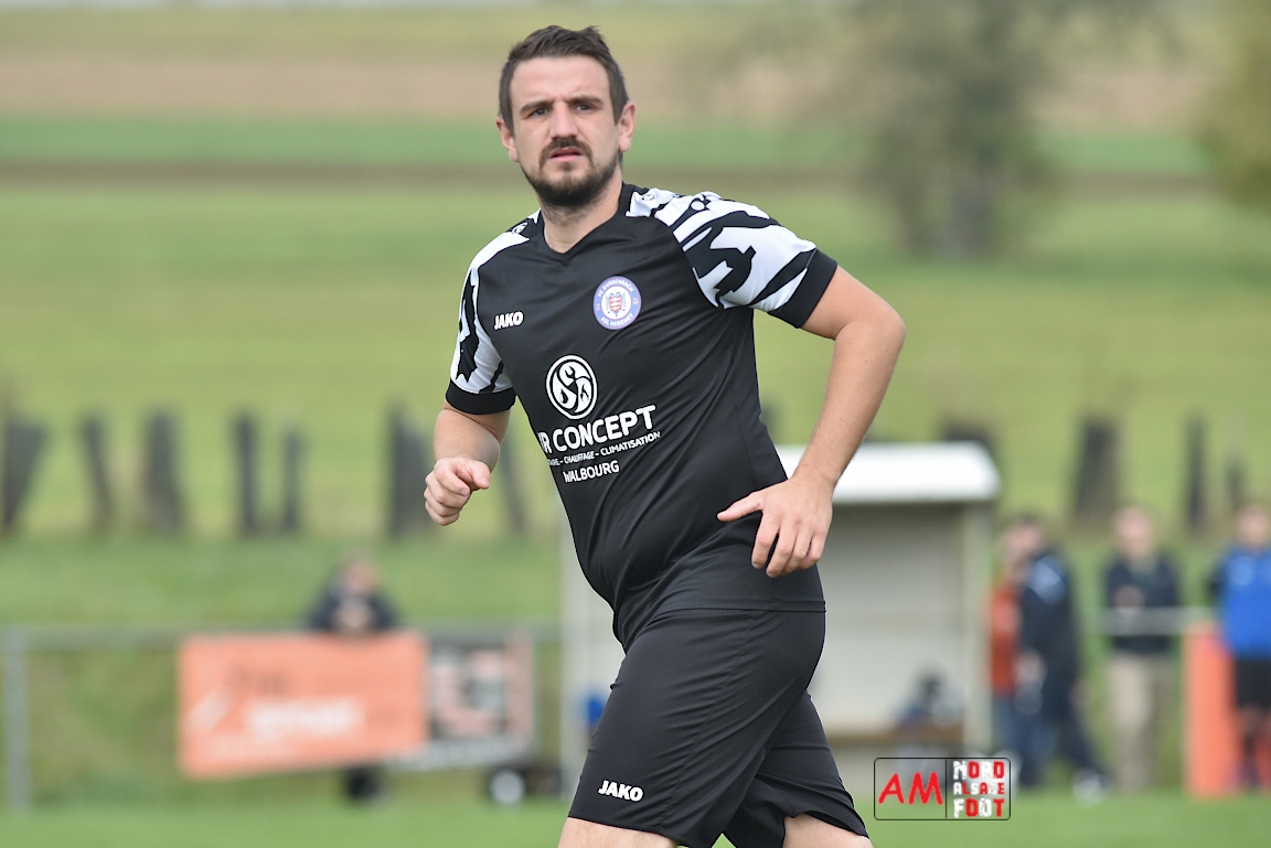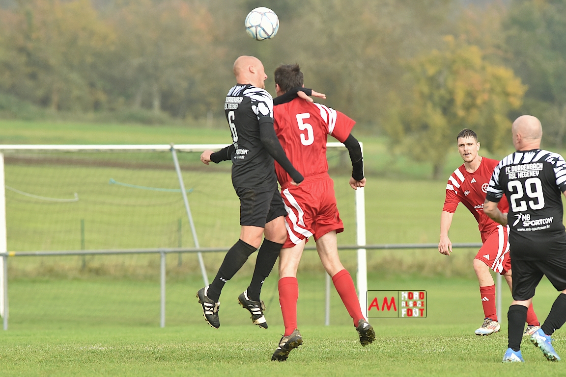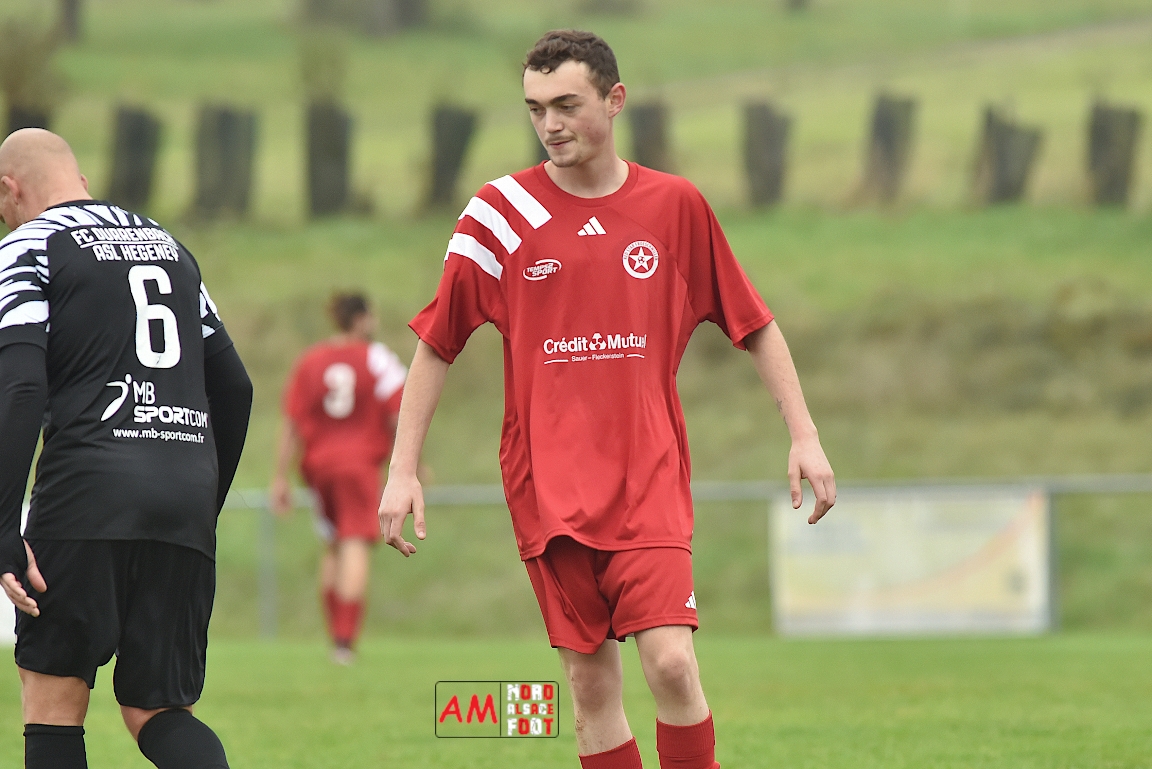 A l’occasion de la sixième journée de championnat en District 8 (Poule B), l’entente Hegeney/Durrenbach 3 (1er) accueillait le Red Star Froeschwiller 1 (6ème) afin de tenter de demeurer invaincue, et ce, face à des adversaires voulant rectifier le tir après la défaite concédée à domicile face au FC Mulhausen 2 (1-3). Après une première période se soldant par un large avantage en faveur des locaux grâce à des réalisations signées Sommer Ludovic (23e), Laemmel Guillaume (35e) et Suss Michaël (43e), ces derniers allaient continuer d’enfoncer le clou en seconde période grâce à un triplé de Sommer Ludovic (47e, 66e) avant qu’ils ne finissent par s’imposer sur ce score de 5-0! Retrouvez, ci-dessous, quelques images de cette rencontre et, pour en apprécier le contenu, veuillez cliquer sur l’une d’entre-elles pour afficher le diaporama.