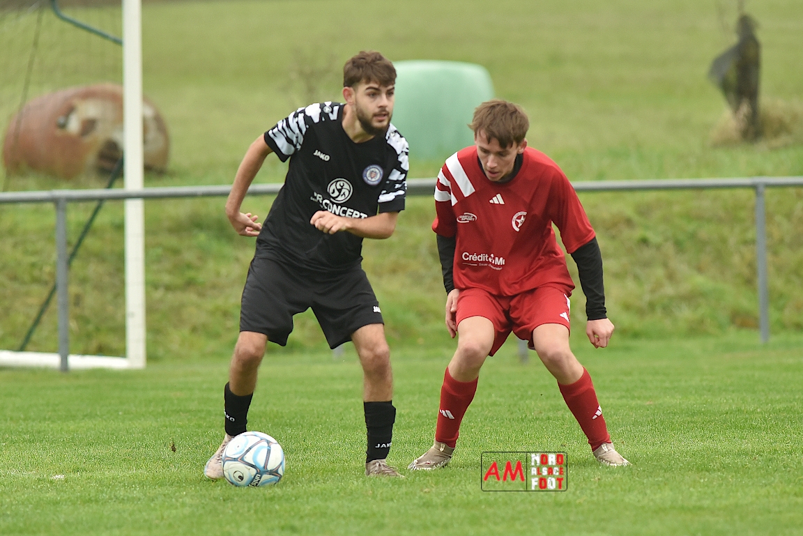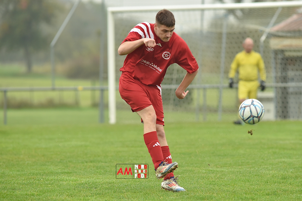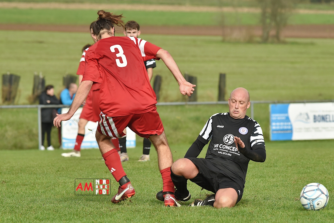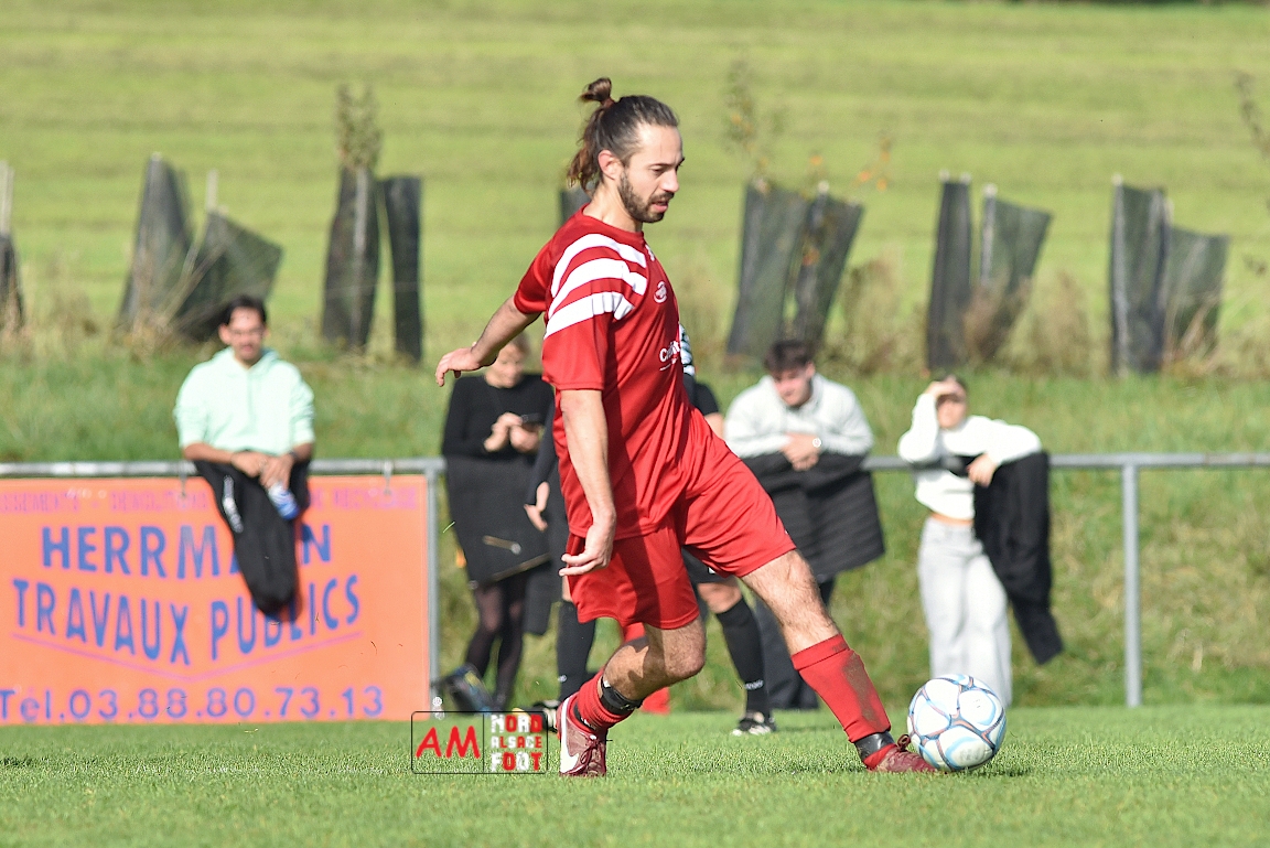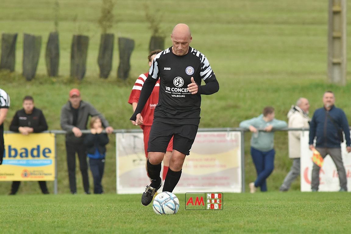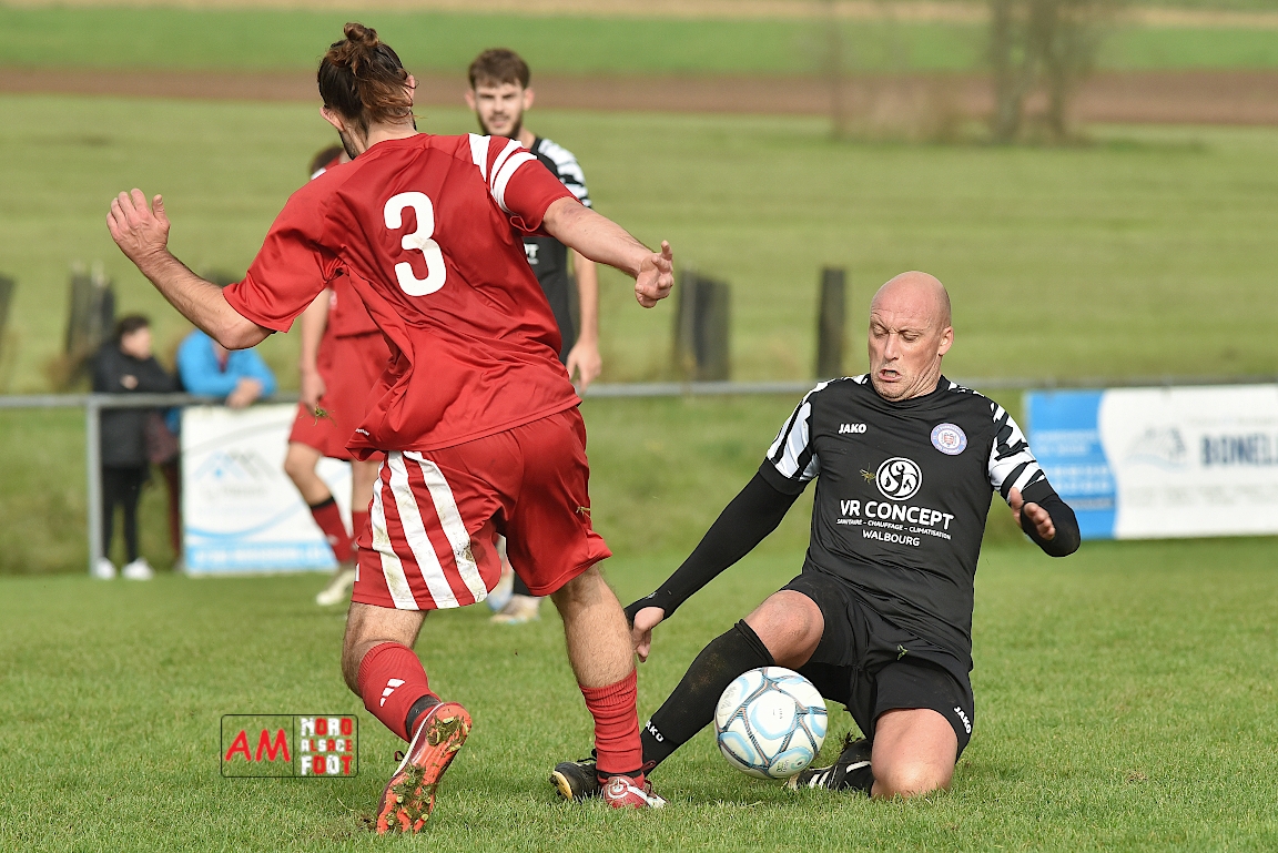 A l’occasion de la sixième journée de championnat en District 8 (Poule B), l’entente Hegeney/Durrenbach 3 (1er) accueillait le Red Star Froeschwiller 1 (6ème) afin de tenter de demeurer invaincue, et ce, face à des adversaires voulant rectifier le tir après la défaite concédée à domicile face au FC Mulhausen 2 (1-3). Après une première période se soldant par un large avantage en faveur des locaux grâce à des réalisations signées Sommer Ludovic (23e), Laemmel Guillaume (35e) et Suss Michaël (43e), ces derniers allaient continuer d’enfoncer le clou en seconde période grâce à un triplé de Sommer Ludovic (47e, 66e) avant qu’ils ne finissent par s’imposer sur ce score de 5-0! Retrouvez, ci-dessous, quelques images de cette rencontre et, pour en apprécier le contenu, veuillez cliquer sur l’une d’entre-elles pour afficher le diaporama.