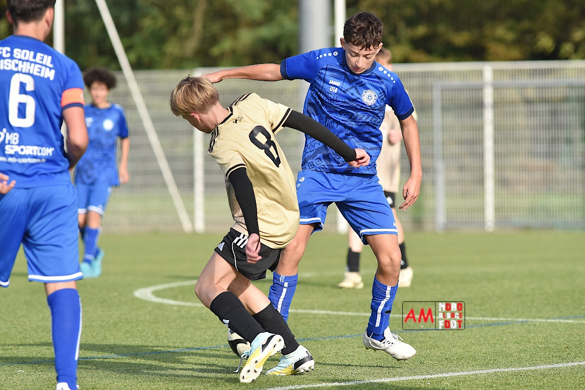 A l’occasion de la treizième journée de championnat chez les U14/D1 (Poule A), l’Entente de la Plaine du Rhin accueillait le FC Soleil Bischheim afin de tenter de rectifier le tir après deux défaites consécutives, et ce, face à des adversaires visant la passe de trois ce samedi après-midi. Après une première période se soldant par un léger avantage en faveur des visiteurs (1-2), ces derniers allaient faire le break en seconde période avant qu’ils ne s’imposent sur ce score de 1-3! Retrouvez, ci-dessous, quelques images de cette rencontre et, pour en apprécier le contenu, veuillez cliquer sur l’une d’entre-elles pour afficher le diaporama.