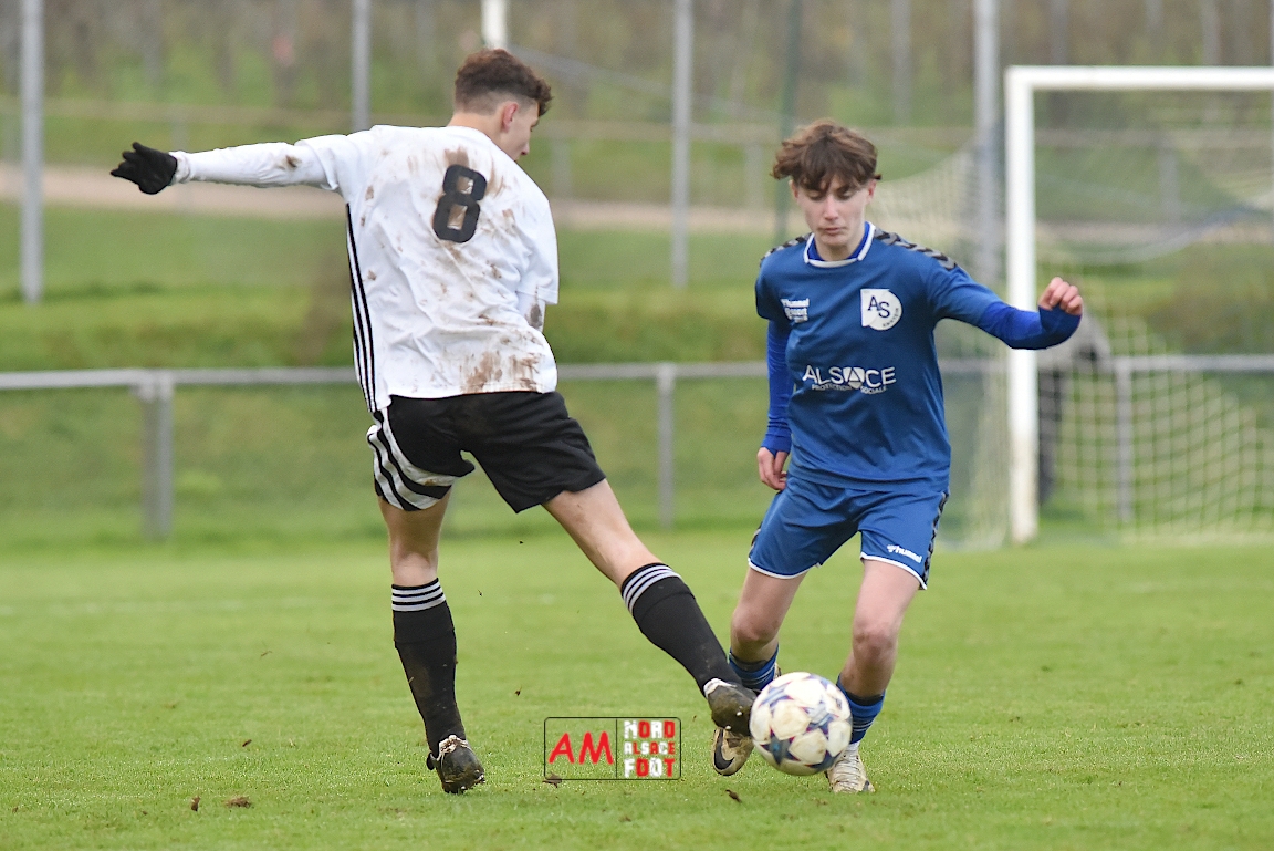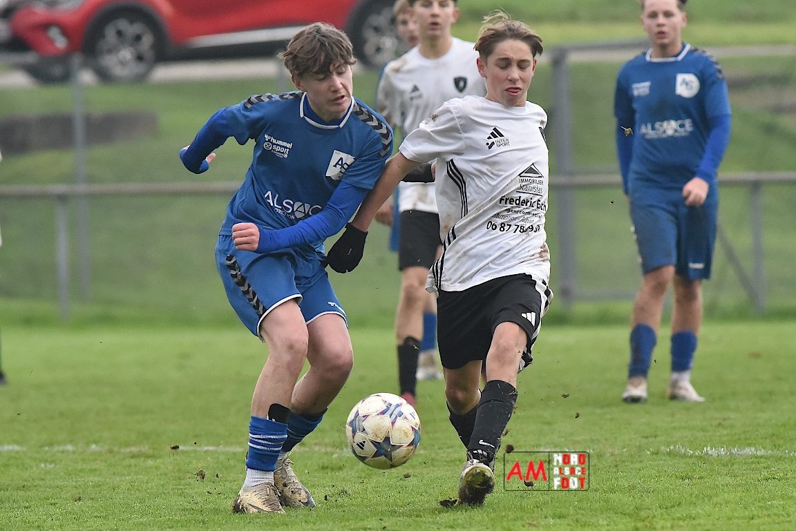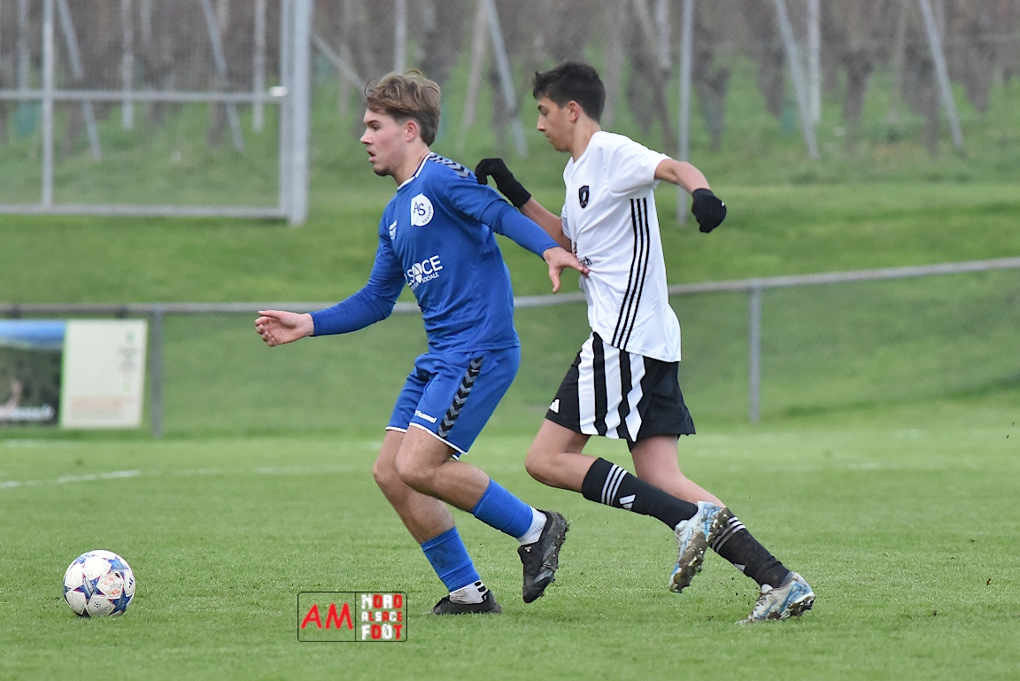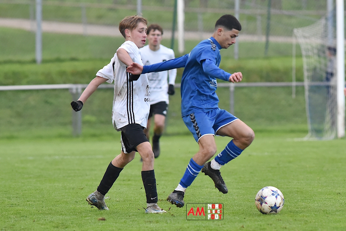 A l’occasion de la huitième journée de championnat chez les U16/Régional 2 (Poule C), le Groupement Jeunes d’Alsace du Nord accueillait l’AS Erstein afin de tenter de gagner la première partie de tableau en faveur d’une victoire, et ce, face à des adversaires restant sur deux défaites d’affilée. Après une première période se soldant par un avantage confortable en faveur des locaux (3-1), les deux formations se neutralisèrent en seconde période avant que les protégés de Juncker Hervé et de Stephan Hervé ne finissent par s’imposer sur ce score de 3-1. Retrouvez, ci-dessous, quelques images de cette rencontre et, pour en apprécier le contenu, veuillez cliquer sur l’une d’entre elles pour afficher le diaporama.