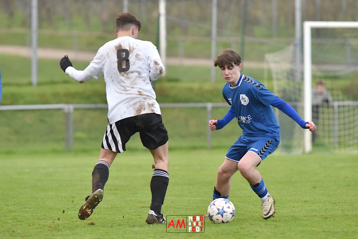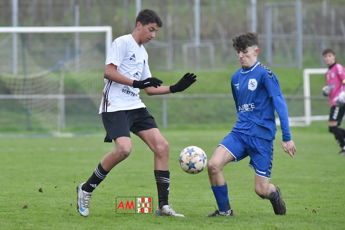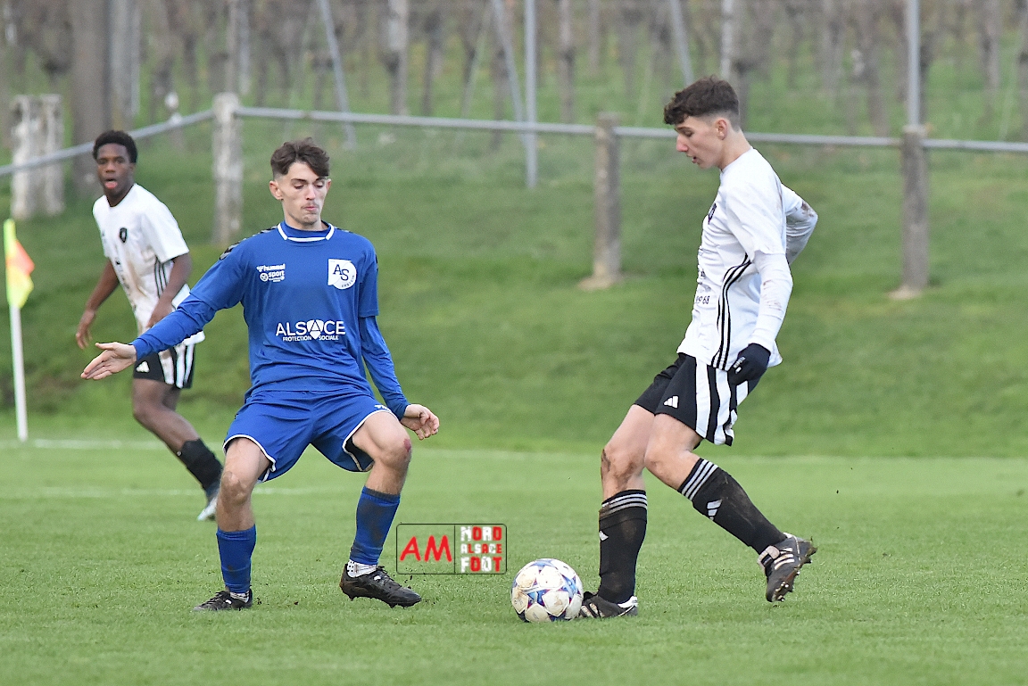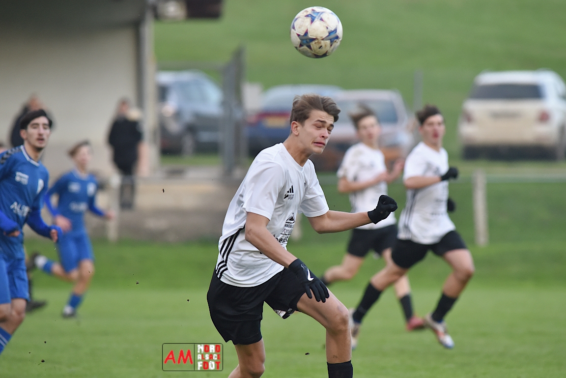 A l’occasion de la huitième journée de championnat chez les U16/Régional 2 (Poule C), le Groupement Jeunes d’Alsace du Nord accueillait l’AS Erstein afin de tenter de gagner la première partie de tableau en faveur d’une victoire, et ce, face à des adversaires restant sur deux défaites d’affilée. Après une première période se soldant par un avantage confortable en faveur des locaux (3-1), les deux formations se neutralisèrent en seconde période avant que les protégés de Juncker Hervé et de Stephan Hervé ne finissent par s’imposer sur ce score de 3-1. Retrouvez, ci-dessous, quelques images de cette rencontre et, pour en apprécier le contenu, veuillez cliquer sur l’une d’entre elles pour afficher le diaporama.