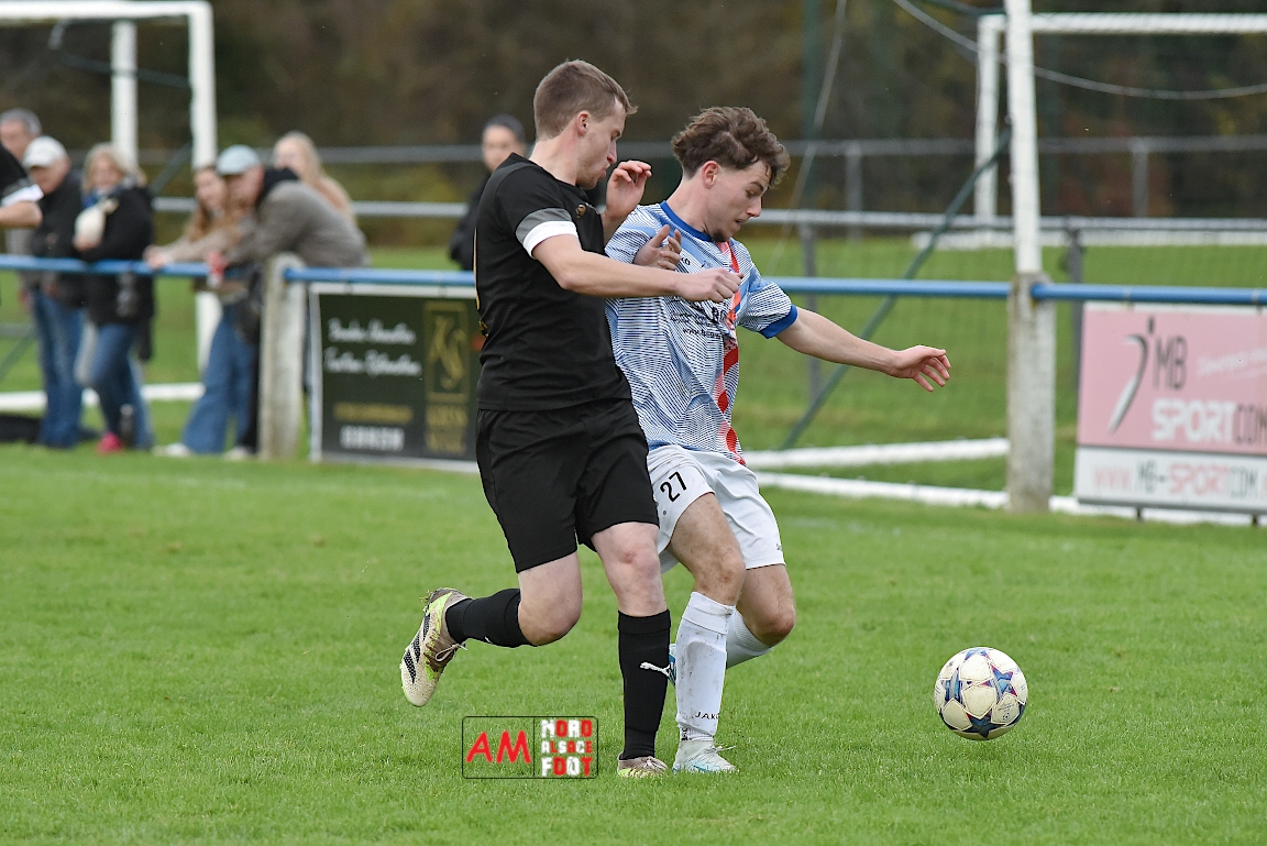 A l’occasion de la dixième journée de championnat en District 1 (Poule A), le FC Durrenbach (11e) accueillait l’AS Pfulgriesheim (10e) afin de tenter de s’offrir un succès important pouvant leur permettre de provisoirement s’extirper de la zone rouge en faveur d’une victoire ce dimanche, et ce, face à des adversaires voulant terminer le mois comme ils l’ont commencé, à savoir avec trois points dans la musette. Après une première période se soldant par un score de parité (1-1), les locaux prirent le large en seconde période en inscrivant pas moins de trois buts avant qu’ils ne s’adjugent une victoire sur ce score de 4-1! Retrouvez, ci-dessous, quelques images de cette rencontre et, pour en apprécier le contenu, veuillez cliquer sur l’une d’entre elles pour afficher le diaporama.