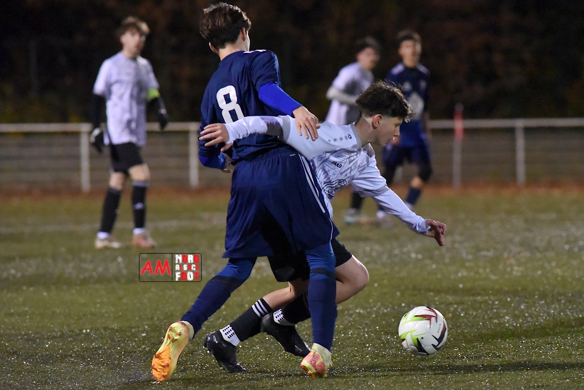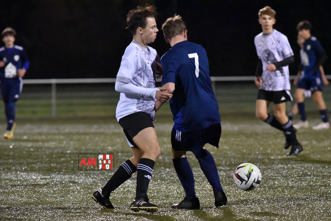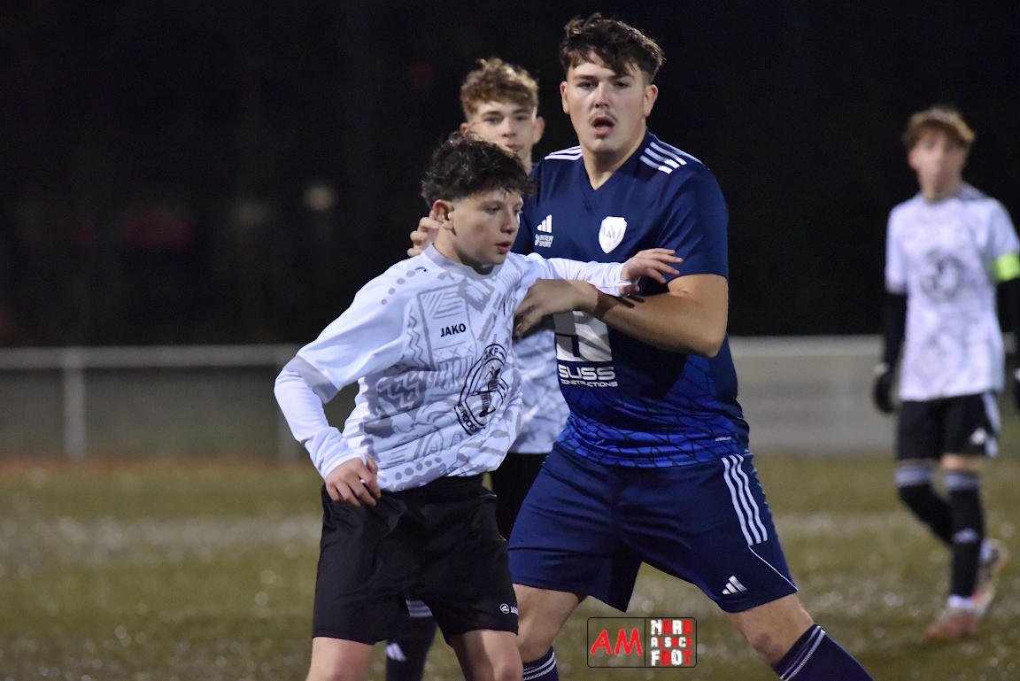 A l’occasion d’un match en retard comptant pour la cinquième journée de championnat chez les U18/D2 (Poule A), le Groupement Jeunes d’Alsace du Nord (8e) accueillait le FA Val de Moder (7e) afin de tenter de boucler la phase aller comme il l’a commencé à savoir par une victoire, et ce, face à des adversaires pouvant prendre sept points d’avance sur la zone rouge en cas de succès ce mercredi. Après une première période se soldant par un léger avantage en faveur des locaux grâce à des réalisations signées Tchetchoua William (4e) et Steiner Yanis (37e) contre un but inscrit par Koebel Nathan (27e) en faveur des visiteurs, les protégés de Boff Jean-Nicolas allait faire le break à l’heure de jeu par l’intermédiaire de Meyer Quentin avant qu’ils ne finissent par s’imposer sur ce score de 3-1! Retrouvez, ci-dessous, quelques images de cette rencontre et, pour en apprécier le contenu, veuillez cliquer sur l’une d’entre elles pour afficher le diaporama.