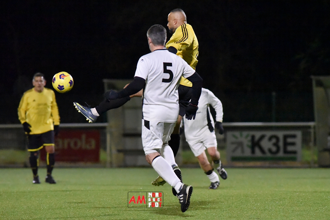 A l’occasion d’un match en retard comptant pour la quatrième journée de championnat chez les Super Vétérans (Poule J), le FC Seltz (3e) accueillait l’AS Hatten (5e) afin de tenter de prendre sa revanche sur le match de Coupe d’Alsace et cette large victoire de l’AS Hatten (5-1). Après une première période se soldant par un léger avantage en faveur des locaux grâce à des réalisations signées Bruder Marc (19e) et Gentes Cédric (20e) contre un but inscrit par Steinbrunn Daniel (30e), les Seltzois allaient faire le break à la 45e minute de jeu par l’intermédiaire de Vix Jean-Yves avant que les Hattenois ne réduisent la marque à la fin du temps réglementaire par l’intermédiaire de Vetter Dominique mais, au final, c’est le FC Seltz qui remporta ce derby aller sur ce score de 3-2! Retrouvez, ci-dessous, quelques images de cette rencontre et, pour en apprécier le contenu, veuillez cliquer sur l’une d’entre elles pour afficher le diaporama.