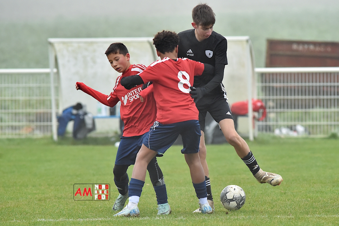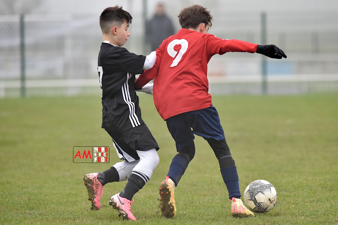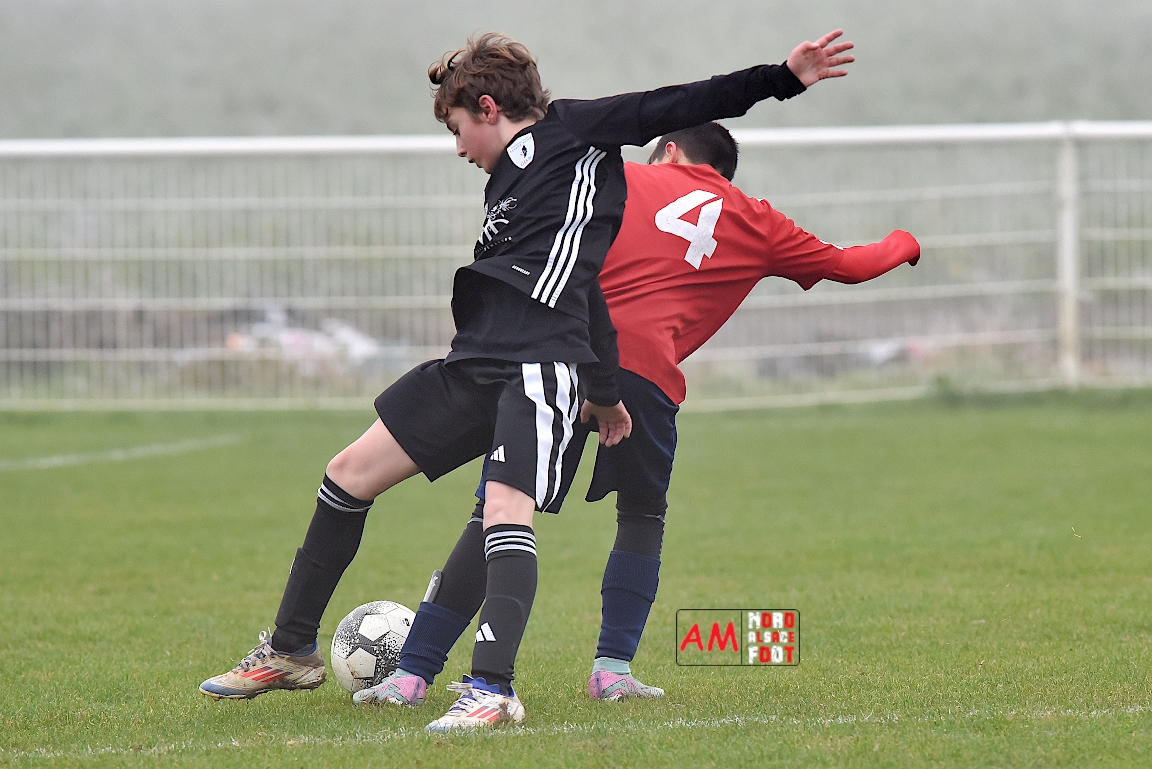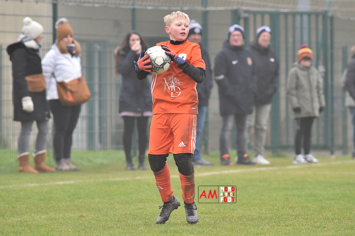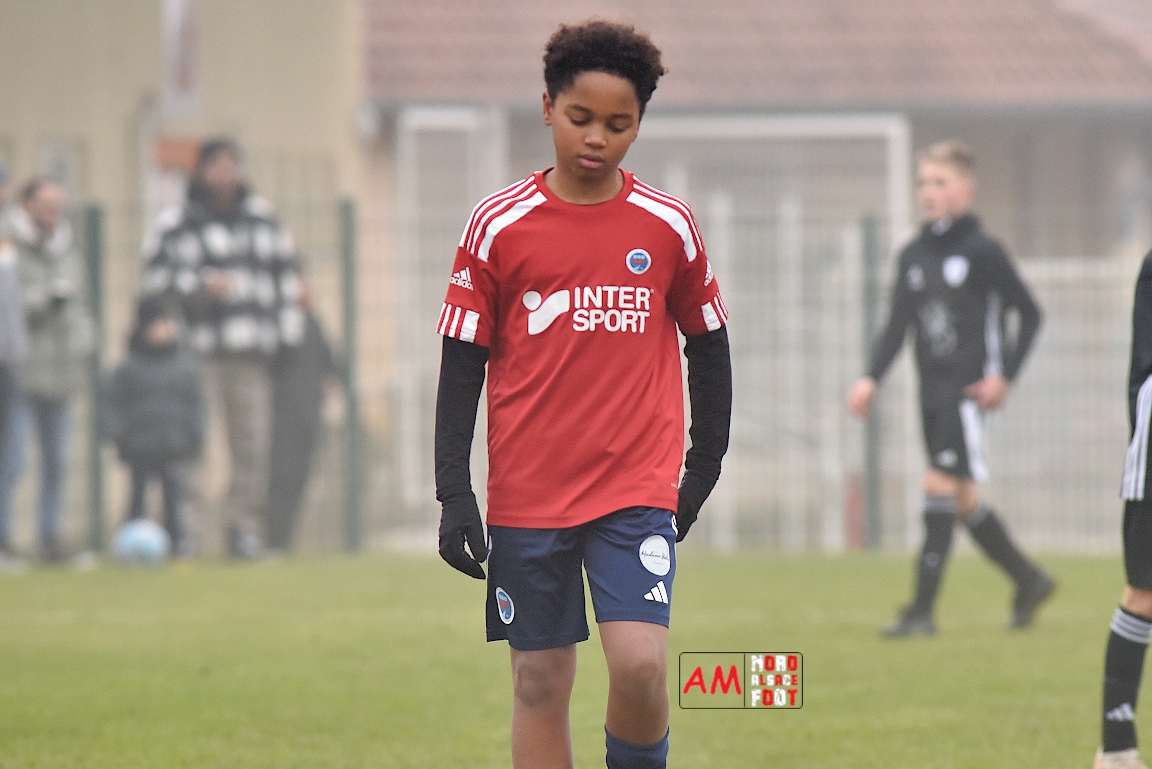 A l’occasion de la dernière journée de championnat chez les U13/D2 (Poule A), les U13-2 du Groupement Jeunes d’Alsace du Nord (lanterne rouge) accueillaient les U13-2 du FCSR Haguenau (1er) pour un choc des extrêmes comptant un peu pour du beurre, les doublures Haguenoviennes étant assurées de garder le lead et celles du GJAN étant assurées de finir à la dernière place quelque soit le résultat du jour. Après une première période se soldant par un large avantage en faveur des visiteurs (1-4), ces derniers allaient ajouter cinq buts en seconde période tout en en concédant un afin de s’adjuger une neuvième victoire sur ce score de 2-9! Retrouvez, ci-dessous, quelques images de cette rencontre et, pour en apprécier le contenu, veuillez cliquer sur l’une d’entre elles pour afficher le diaporama.