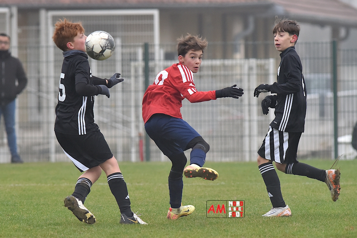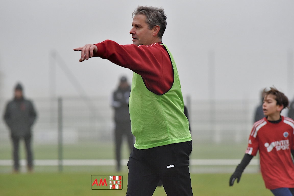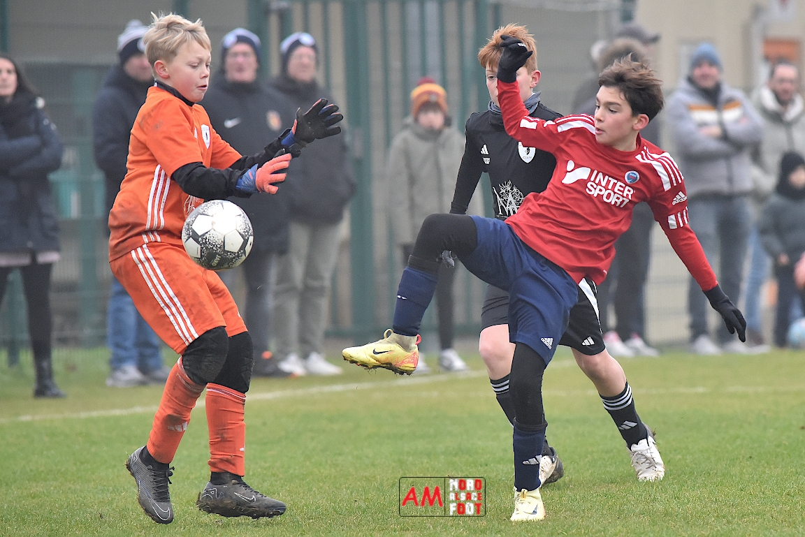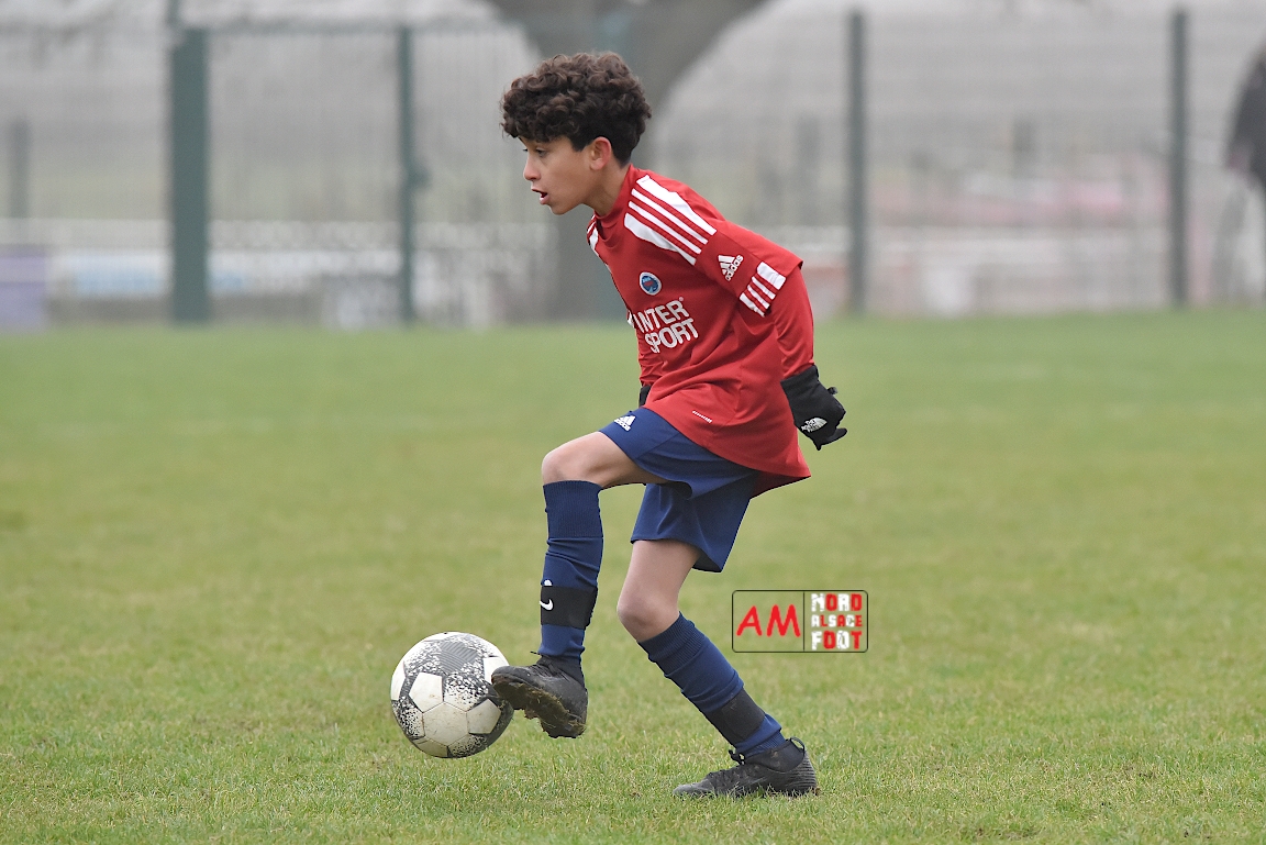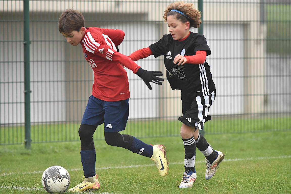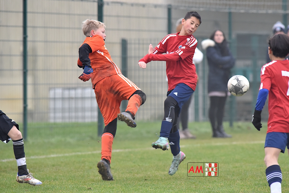 A l’occasion de la dernière journée de championnat chez les U13/D2 (Poule A), les U13-2 du Groupement Jeunes d’Alsace du Nord (lanterne rouge) accueillaient les U13-2 du FCSR Haguenau (1er) pour un choc des extrêmes comptant un peu pour du beurre, les doublures Haguenoviennes étant assurées de garder le lead et celles du GJAN étant assurées de finir à la dernière place quelque soit le résultat du jour. Après une première période se soldant par un large avantage en faveur des visiteurs (1-4), ces derniers allaient ajouter cinq buts en seconde période tout en en concédant un afin de s’adjuger une neuvième victoire sur ce score de 2-9! Retrouvez, ci-dessous, quelques images de cette rencontre et, pour en apprécier le contenu, veuillez cliquer sur l’une d’entre elles pour afficher le diaporama.