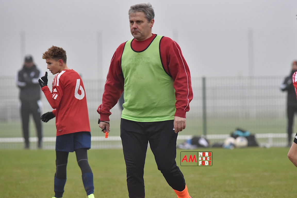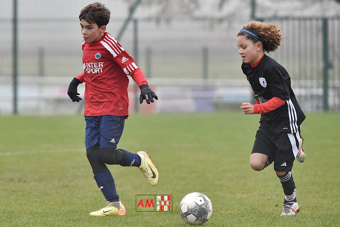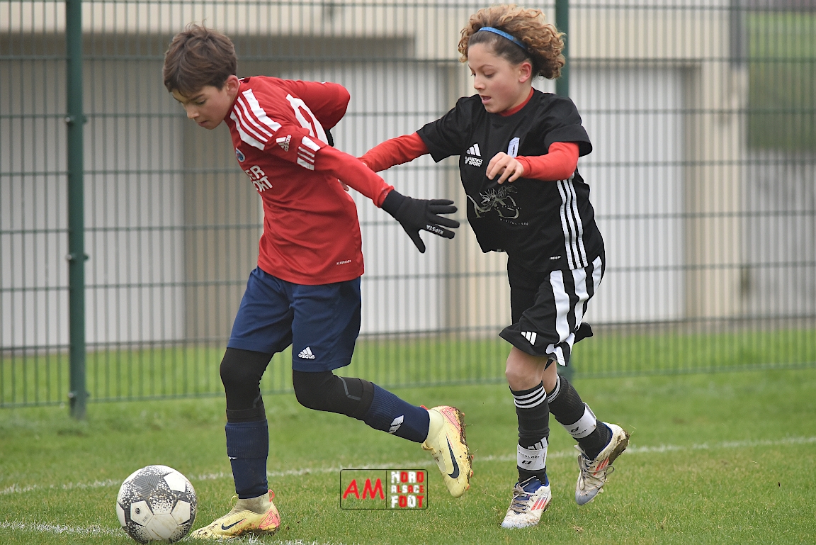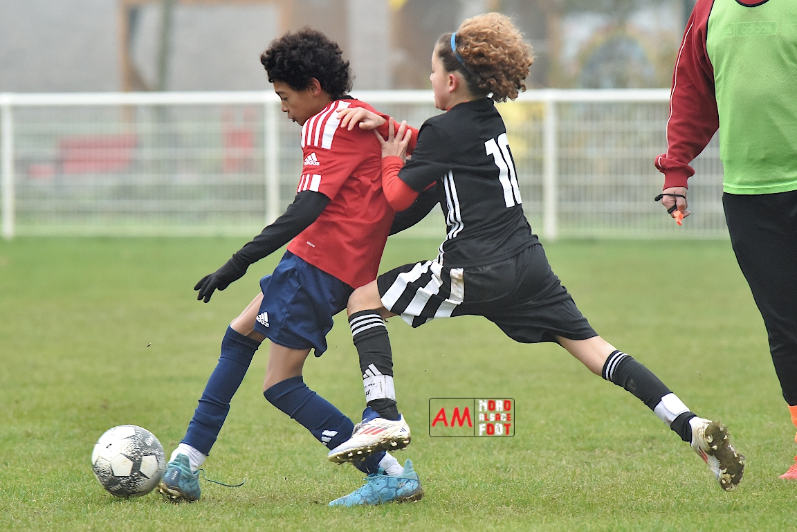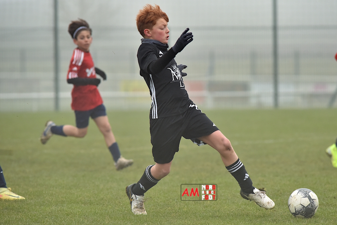 A l’occasion de la dernière journée de championnat chez les U13/D2 (Poule A), les U13-2 du Groupement Jeunes d’Alsace du Nord (lanterne rouge) accueillaient les U13-2 du FCSR Haguenau (1er) pour un choc des extrêmes comptant un peu pour du beurre, les doublures Haguenoviennes étant assurées de garder le lead et celles du GJAN étant assurées de finir à la dernière place quelque soit le résultat du jour. Après une première période se soldant par un large avantage en faveur des visiteurs (1-4), ces derniers allaient ajouter cinq buts en seconde période tout en en concédant un afin de s’adjuger une neuvième victoire sur ce score de 2-9! Retrouvez, ci-dessous, quelques images de cette rencontre et, pour en apprécier le contenu, veuillez cliquer sur l’une d’entre elles pour afficher le diaporama.