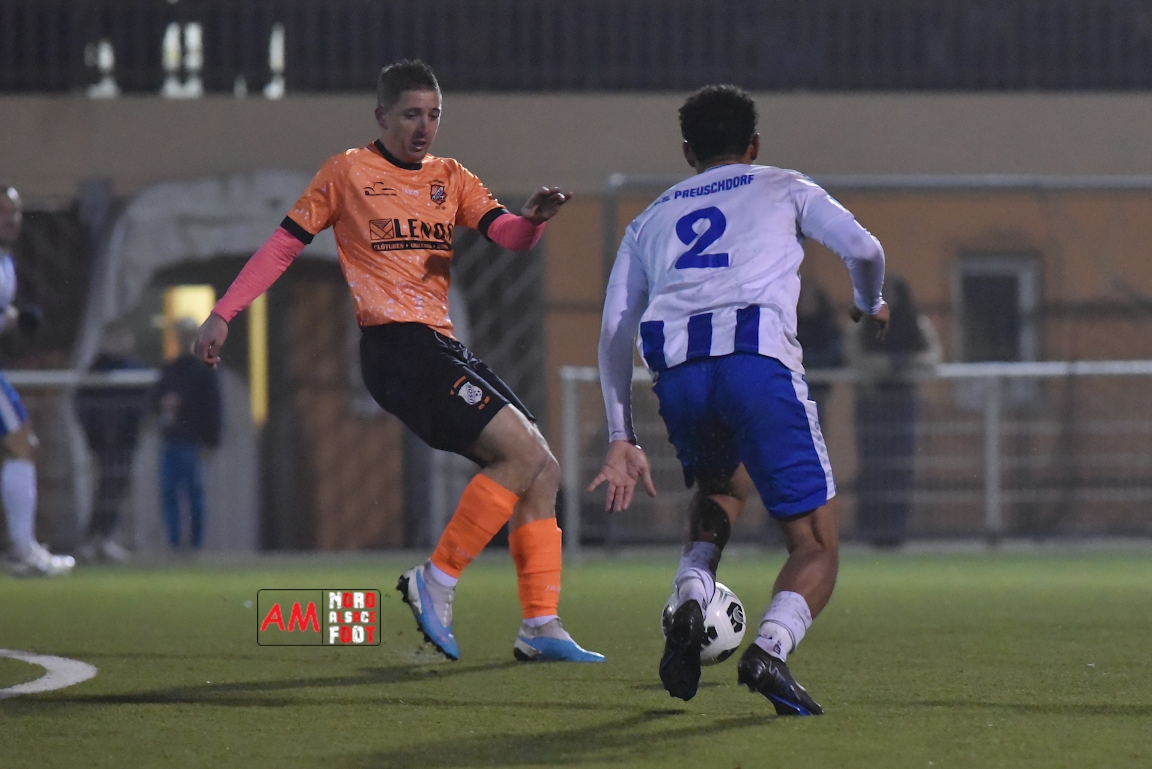 A l’occasion du quatrième tour de la Coupe du Grand Est, l’US Preuschdorf (Régional 3) accueillait l’US Oberlauterbach (Régional 1) afin de tenter de réaliser un exploit, et ce, face à des adversaires ayant enregistrés une première victoire en championnat, le week-end dernier, face au FC Obermodern (0-3). Après une première période se soldant sur un score nul et vierge, l’US Preuschdorf allait craquer en seconde période en encaissant trois buts signés Kraemer Sébastien (63e), Strohm Mathieu (70e) et Beill Lucas (88e) avant de s’incliner sur ce score de 0-3! Retrouvez, ci-dessous, quelques images de cette rencontre et, pour en apprécier le contenu, veuillez cliquer sur l’une d’entre elles pour afficher le diaporama.