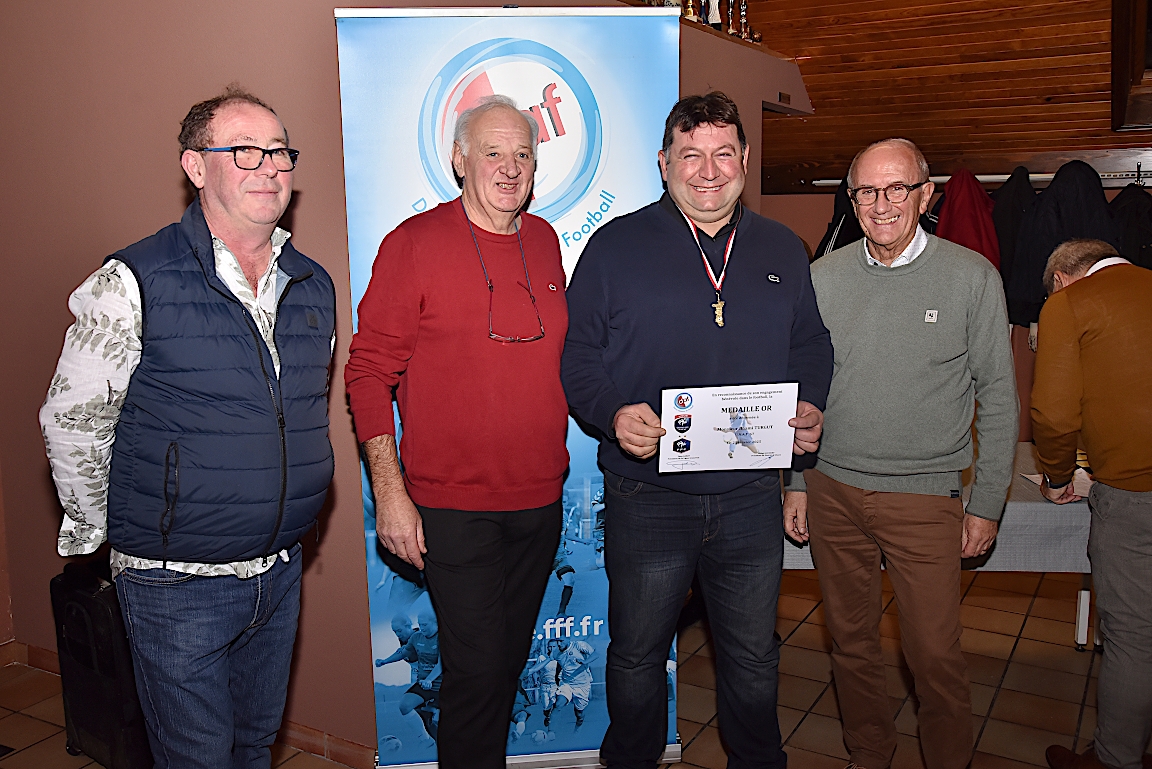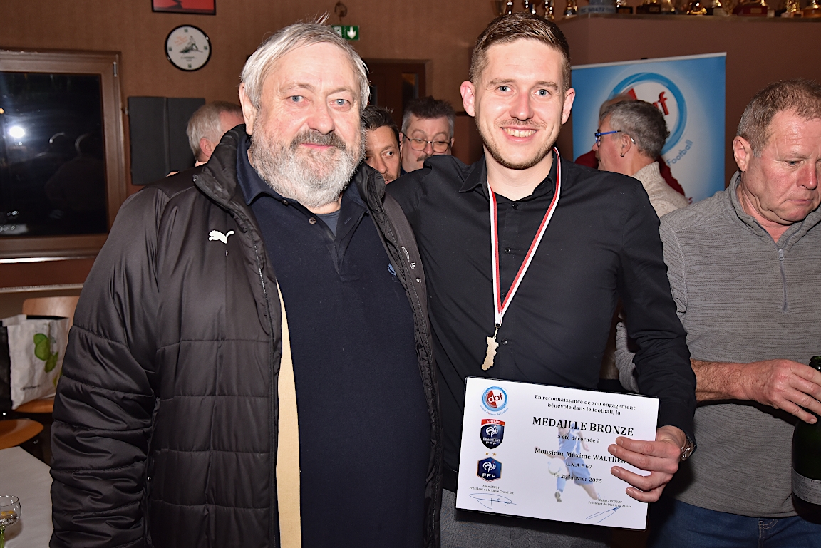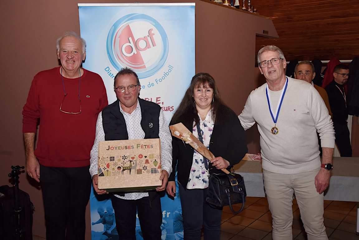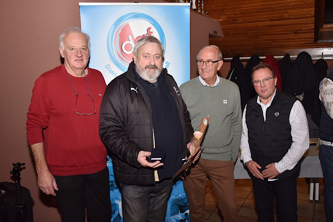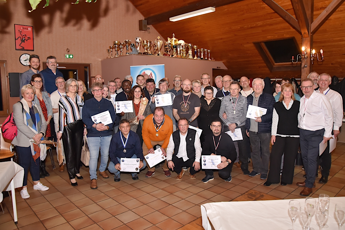 L’UNAF Secteur Haguenau a convié, ce samedi 25 janvier à partir de 19h00 dans le club house du FC Soultz/s/Forêt, pas moins de seize arbitres et leurs compagnes à assister à la cérémonie officielle suivie d’une remise de distinctions pour chacun pour leurs années consacrées à l’arbitrage. Le doyen de l’assemblée, Schneider René, s’est notamment vu remettre la plaquette or du District d’Alsace ainsi que la médaille de vermeil de la Ligue du Grand Est de Football pour ses 51 années consacrées à l’arbitrage. Après la partie officielle, vint la partie conviviale avec un apéritif suivi d’un beackeoffe ou émincé de dinde avec spaetzle. Retrouvez, ci-dessous, quelques images de cette cérémonie, et pour en apprécier le contenu, veuillez cliquer sur l’une d’entre-elles pour afficher le diaporama.