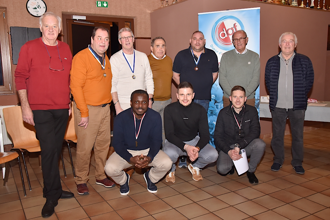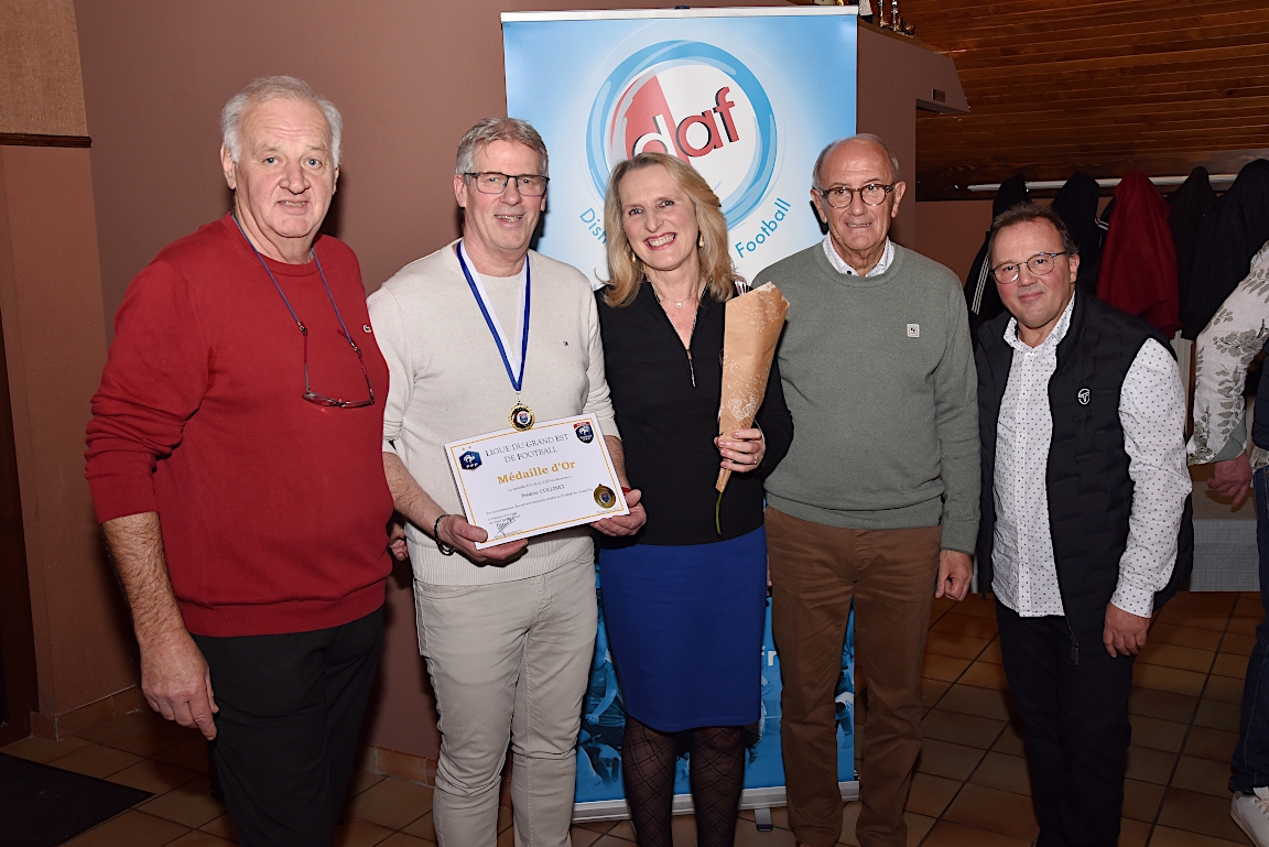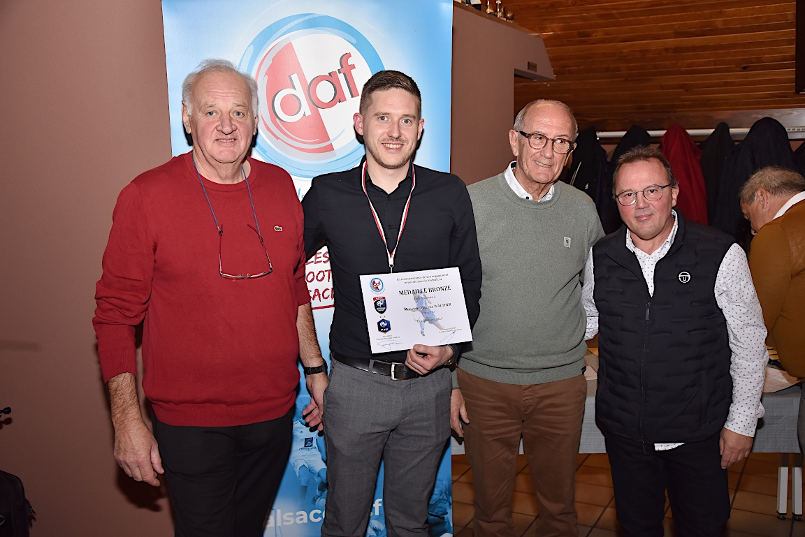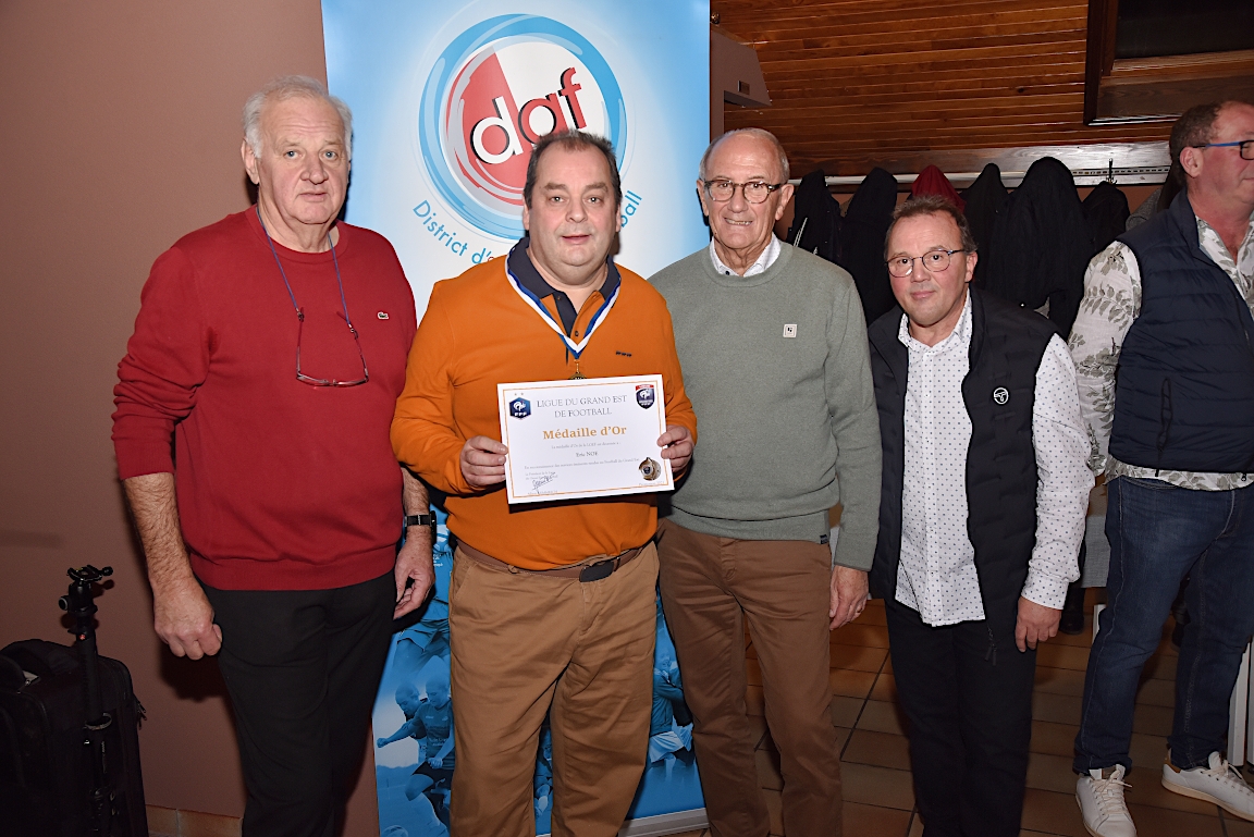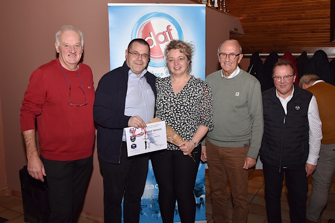 L’UNAF Secteur Haguenau a convié, ce samedi 25 janvier à partir de 19h00 dans le club house du FC Soultz/s/Forêt, pas moins de seize arbitres et leurs compagnes à assister à la cérémonie officielle suivie d’une remise de distinctions pour chacun pour leurs années consacrées à l’arbitrage. Le doyen de l’assemblée, Schneider René, s’est notamment vu remettre la plaquette or du District d’Alsace ainsi que la médaille de vermeil de la Ligue du Grand Est de Football pour ses 51 années consacrées à l’arbitrage. Après la partie officielle, vint la partie conviviale avec un apéritif suivi d’un beackeoffe ou émincé de dinde avec spaetzle. Retrouvez, ci-dessous, quelques images de cette cérémonie, et pour en apprécier le contenu, veuillez cliquer sur l’une d’entre-elles pour afficher le diaporama.