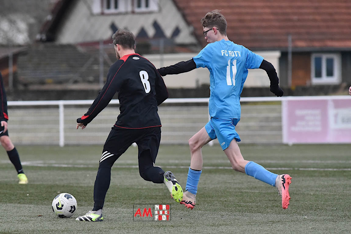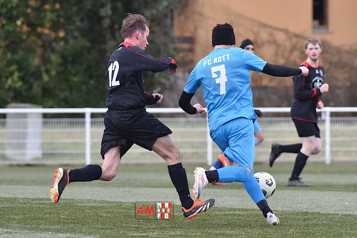 A l’occasion d’un premier match de préparation, le FC Rott 2 (District 8) accueillait la SS Beinheim 2 (District 7), dimanche matin, au stade des Turcos de Wissembourg. Après une première période se soldant par un avantage confortable en faveur des visiteurs grâce à un doublé de Sommes Hayat (30e sp, 43e), ces derniers allaient corser l’addition en ajoutant six buts au compteur par l’intermédiaire de Sommes Muhamet (46e), de Courdavault Cyrille (48e), de Muller Louis (54e), de Guth Jordan (72e) et de Sommes Hayat (56e, 80e) tout en concédant un but ayant été inscrit par Bouvier Stéphane (70e), les deux équipes se quittant finalement sur ce score de 1-8.
