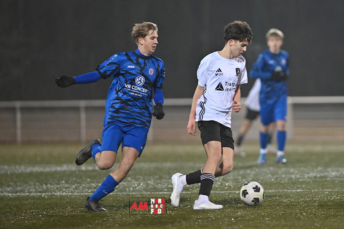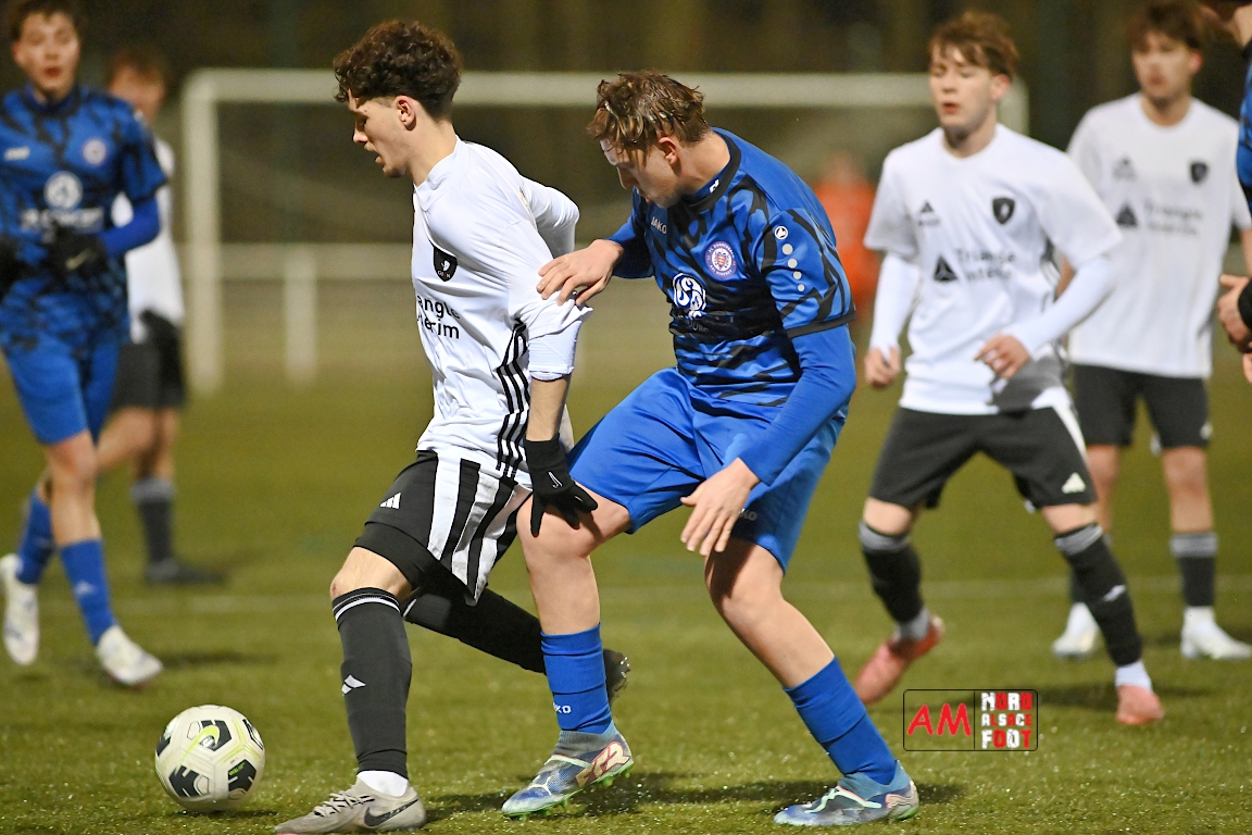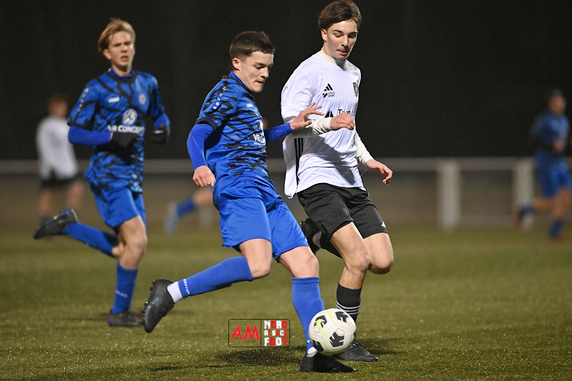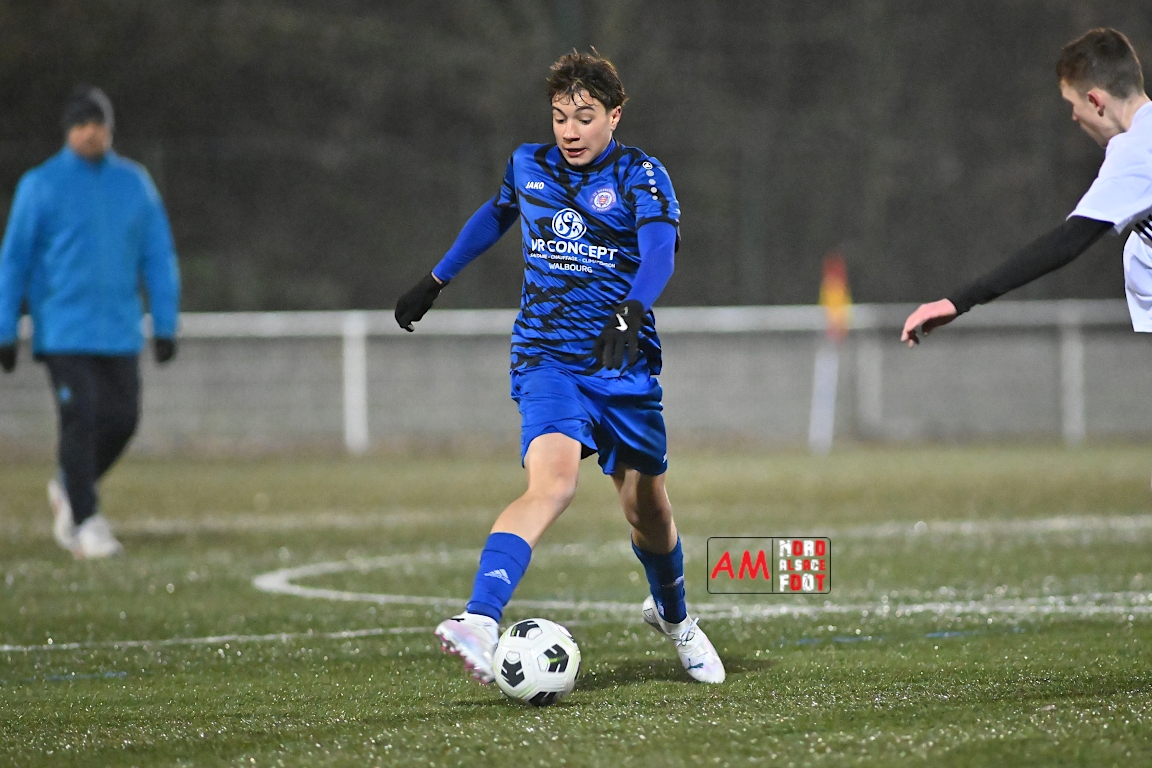 A l’occasion d’un match de préparation, les U17 du Groupement Jeunes d’Alsace du Nord affrontaient les U18 de l’entente Durrenbach/Hegeney pour une dernière répétition avant le retour à la compétition intervenant la semaine prochaine pour les locaux face à l’AS Berrwiller (le 22/02 à 15h30). Après une première période se soldant par un avantage confortable en faveur des locaux (3-1), ces derniers allaient continuer de creuser l’écart en seconde période en ajoutant trois buts au compteur avant qu’ils ne finissent par s’imposer sur ce score de 6-1. Retrouvez, ci-dessous, quelques images de cette rencontre et, pour en apprécier le contenu, veuillez cliquer sur l’une d’entre elles pour afficher le diaporama.