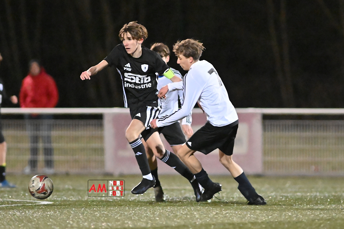 A l’occasion du tour intermédiaire de la Coupe d’Encouagement – Crédit Mutuel pour la catégorie U15, le Groupement Jeunes d’Alsace du Nord affrontait l’entente Hegeney/Durrenbach afin de tenter d’obtenir l’un des tickets pour le prochain tour de cette compétition, et ce, face à des adversaires ayant infligés une véritable gifle au FCE Schirrhein-Schirrhoffen lors du tour précédent (0-7). Après une première période se soldant par un court avantage en faveur des visiteurs (0-1), le score n’évolua pas en seconde période et l’entente Hegeney/Durrenbach finit par oblitérer son ticket pour le tour suivant. Retrouvez, ci-dessous, quelques images de cette rencontre et, pour en apprécier le contenu, veuillez cliquer sur l’une d’entre elles pour afficher le diaporama.