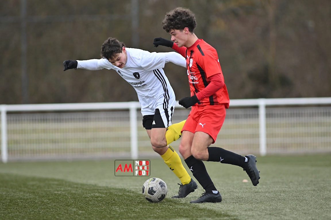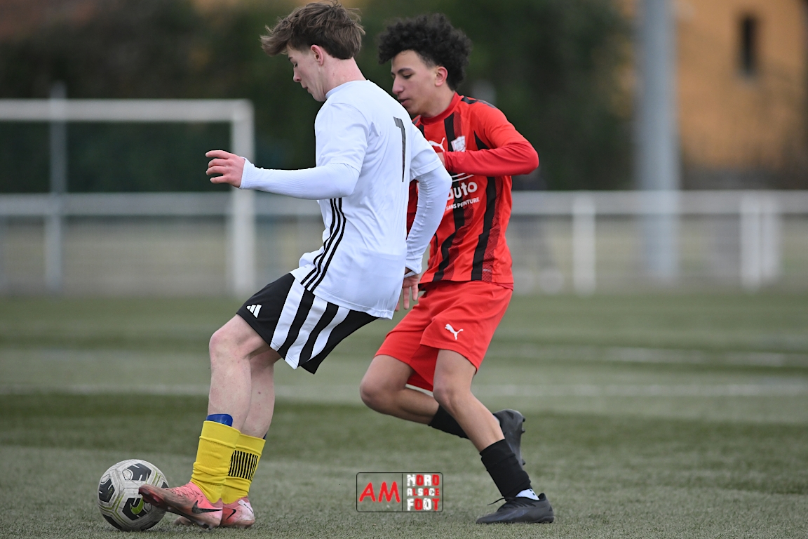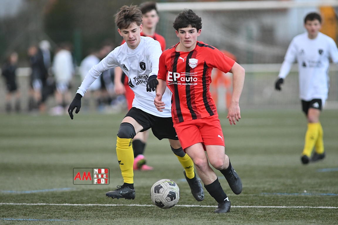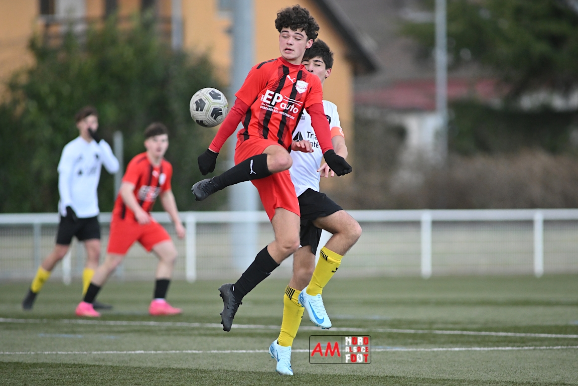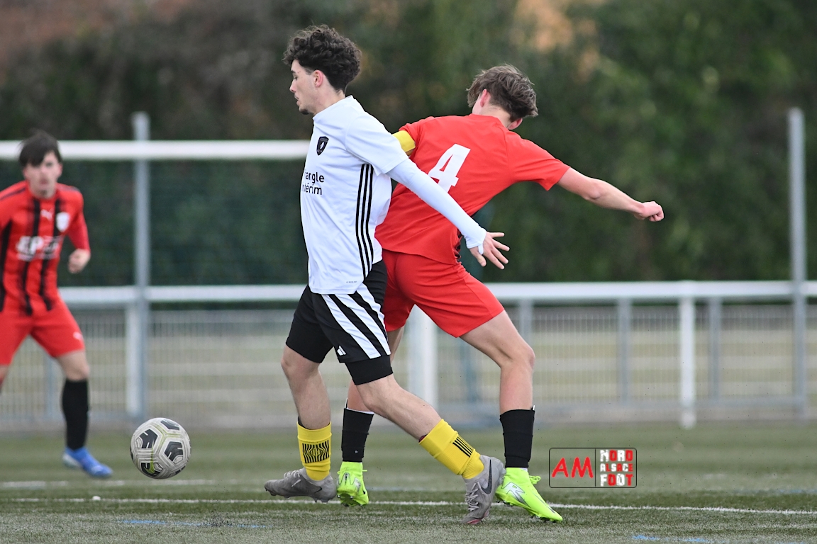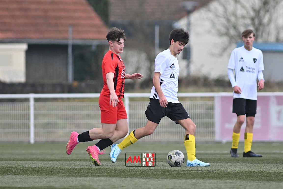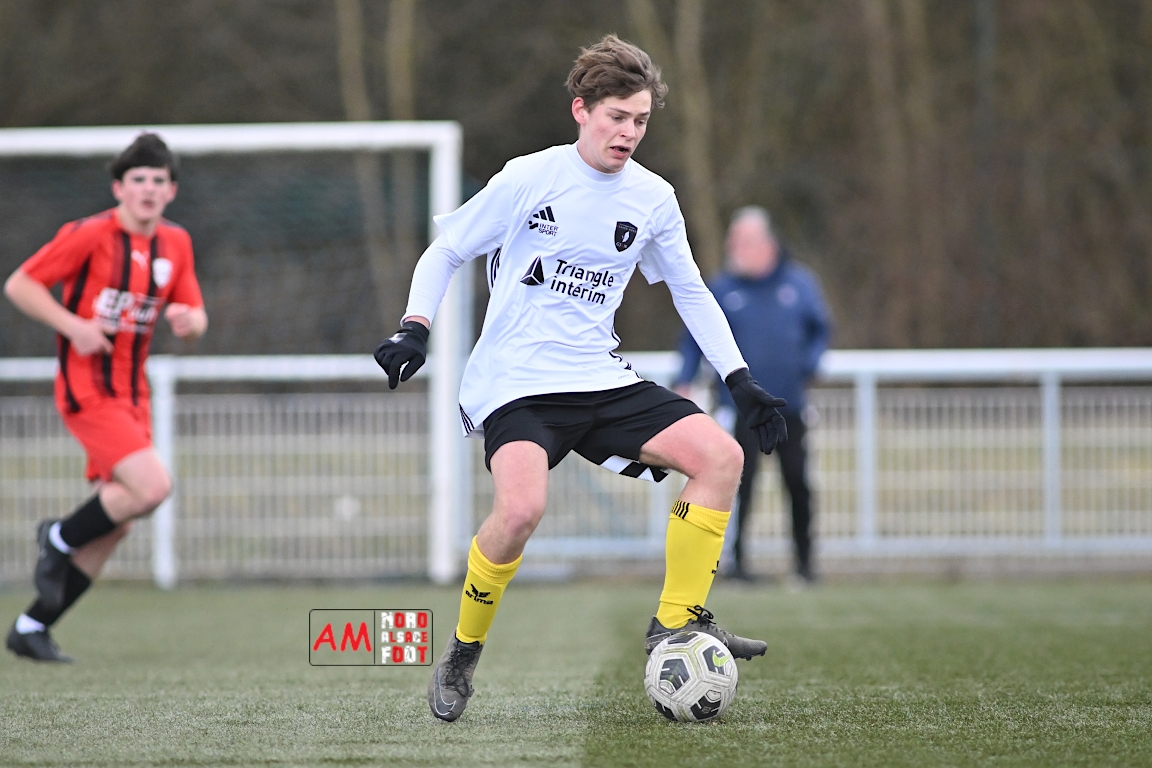 A l’occasion de la douzième journée de championnat chez les U17 Régional 2 (Poule C), le Groupement Jeunes d’Alsace du Nord accueillait le FC Sainte Marguerite afin de tout mettre en oeuvre pour remporter cette rencontre avec la seconde place en ligne de mire, et ce, face à des adversaires restants sur deux matchs sans défaite. Après une première période se soldant par un large avantage en faveur des locaux (3-0), ls visiteurs allaient refaire leur retard en seconde période avant que les protégés du duo Treger/Beill ne parviennent à arracher la victoire dans les derniers instants de la partie. Retrouvez, ci-dessous, quelques images de cette rencontre et, pour en apprécier le contenu, veuillez cliquer sur l’une d’entre elles pour afficher le diaporama.