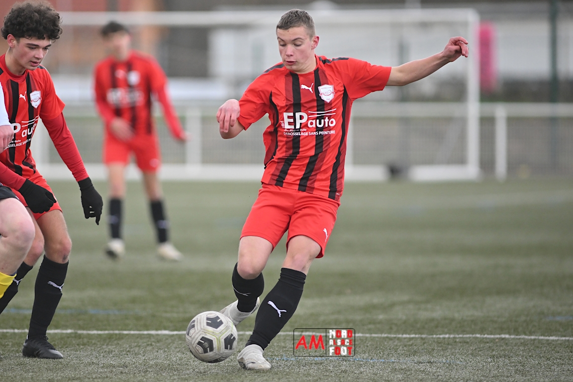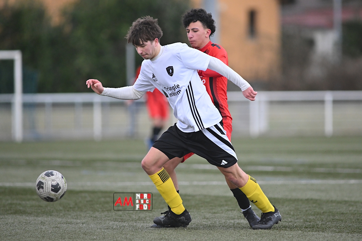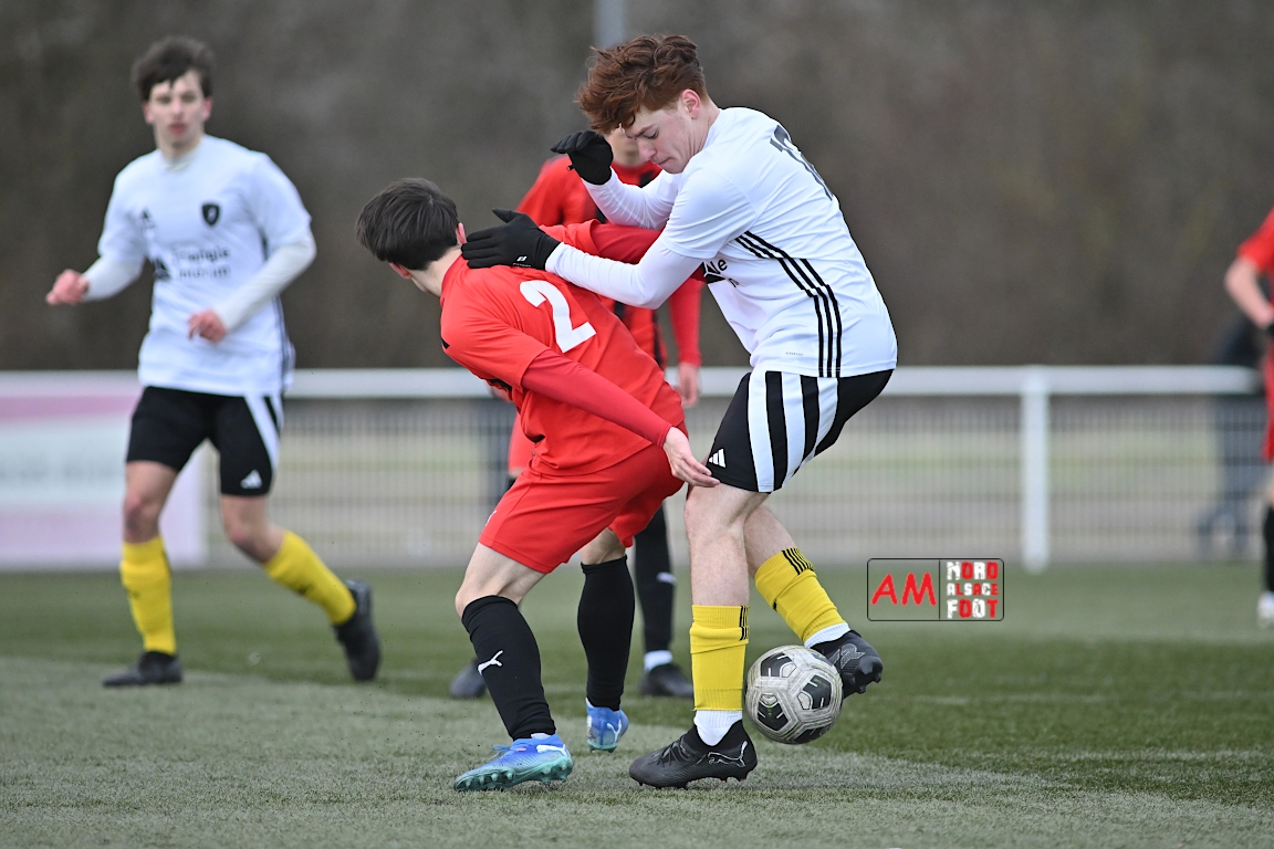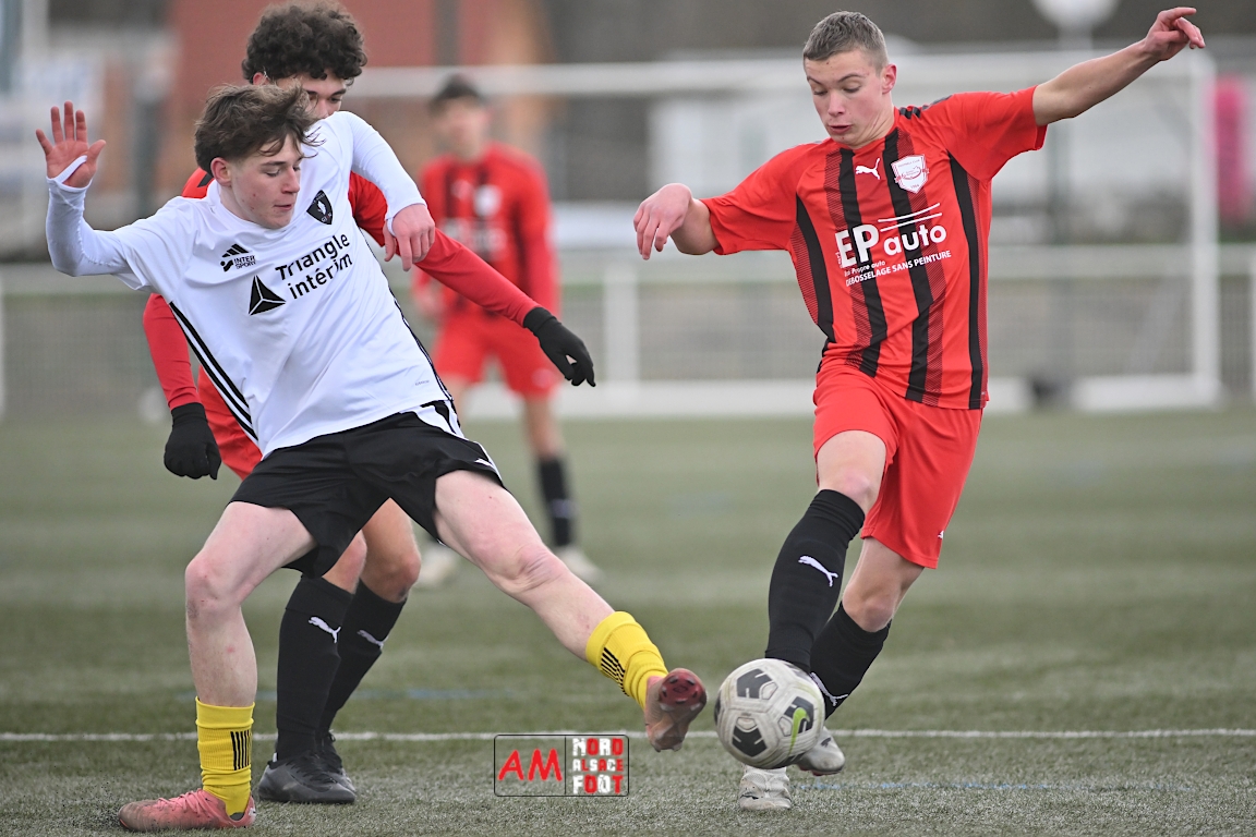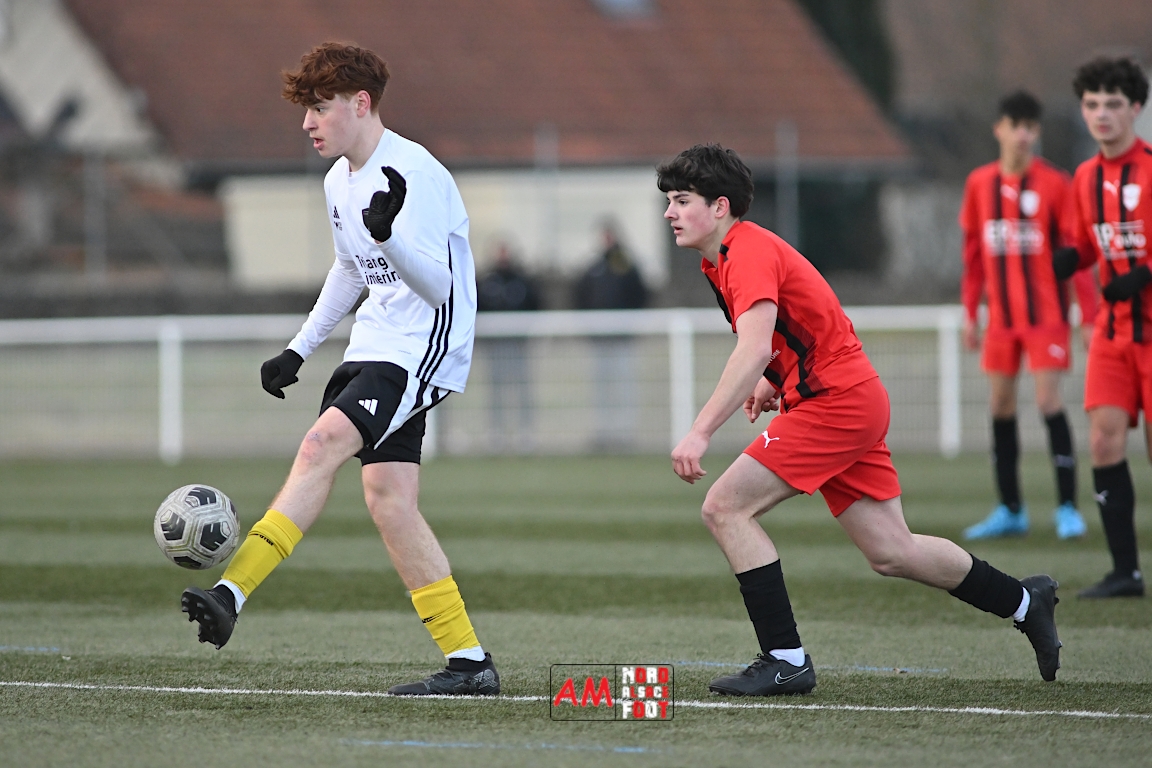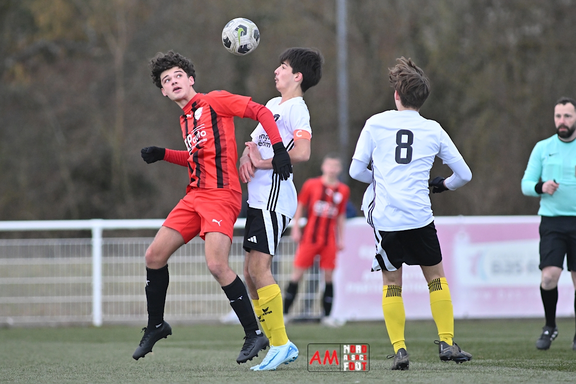 A l’occasion de la douzième journée de championnat chez les U17 Régional 2 (Poule C), le Groupement Jeunes d’Alsace du Nord accueillait le FC Sainte Marguerite afin de tout mettre en oeuvre pour remporter cette rencontre avec la seconde place en ligne de mire, et ce, face à des adversaires restants sur deux matchs sans défaite. Après une première période se soldant par un large avantage en faveur des locaux (3-0), ls visiteurs allaient refaire leur retard en seconde période avant que les protégés du duo Treger/Beill ne parviennent à arracher la victoire dans les derniers instants de la partie. Retrouvez, ci-dessous, quelques images de cette rencontre et, pour en apprécier le contenu, veuillez cliquer sur l’une d’entre elles pour afficher le diaporama.