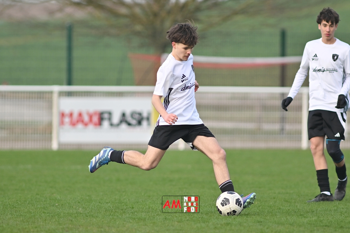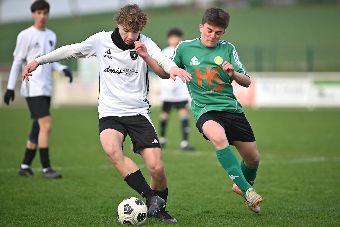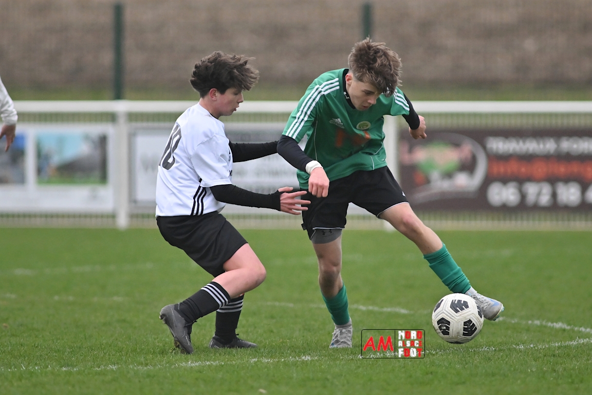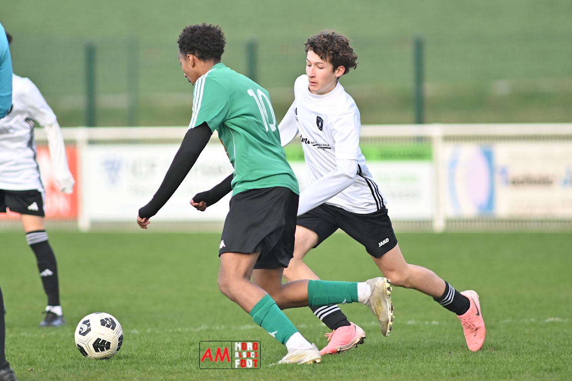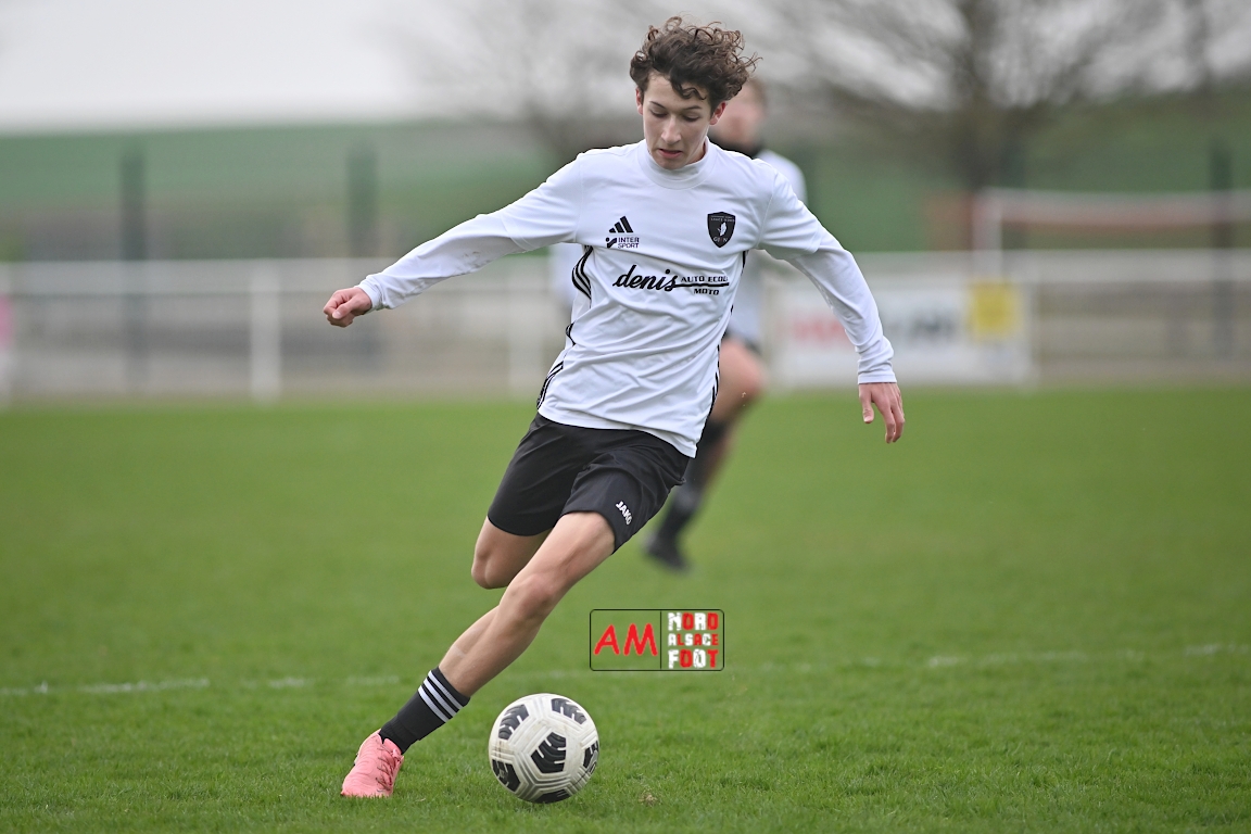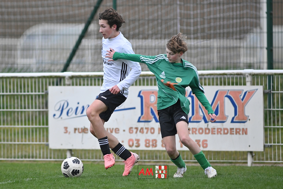 A l’occasion de la deuxième journée de championnat de cette phase “Titre” chez les U16/D1 (Poule A), le Groupement Jeunes d’Alsace du Nord accueillait l’ASL Strasbourg Robertsau afin de tenter de corriger le tir après la lourde défaite concédée le week-end dernier face au FCE Schirrhein-Schirrhoffen (6-2), et ce, face à des adversaires étant également passés au travers de leur première rencontre en étant sèchement battus par le Zornthal (4-0). Après une première période se soldant par un avantage confortable en faveur des locaux (2-0), les visiteurs allaient réduire l’écart en seconde période sans toutefois parvenir à arracher l’égalisation, le GJAN l’emportant finalement sur ce score de 2-1! Retrouvez, ci-dessous, quelques images de cette rencontre et, pour en apprécier le contenu, veuillez cliquer sur l’une d’entre elles pour afficher le diaporama.