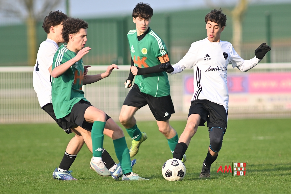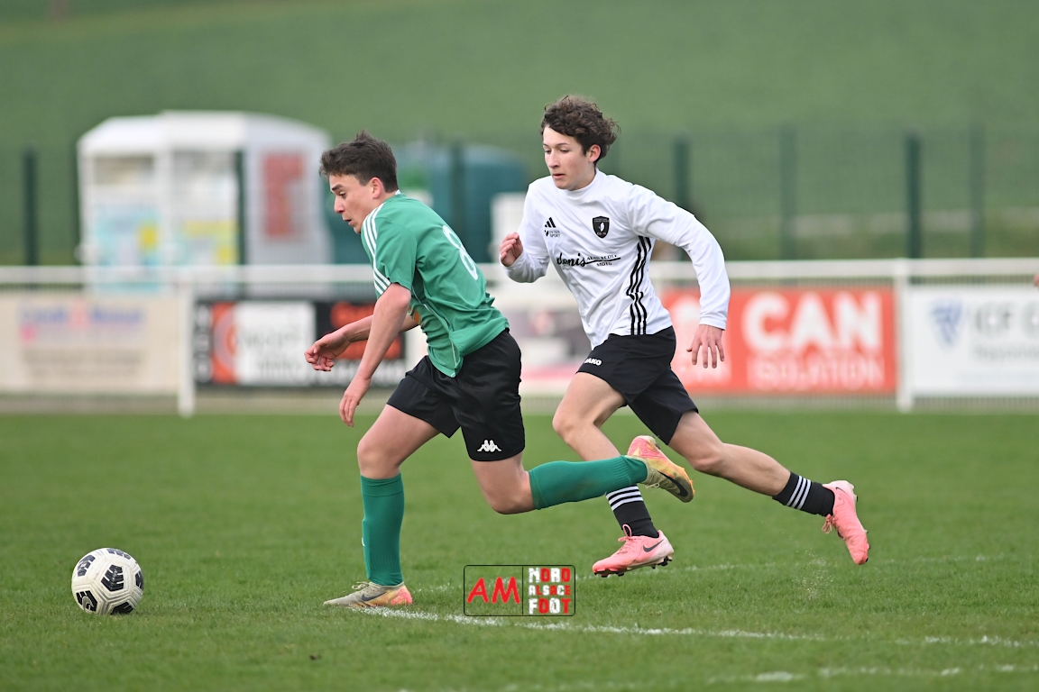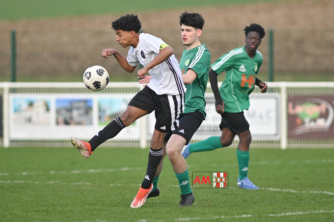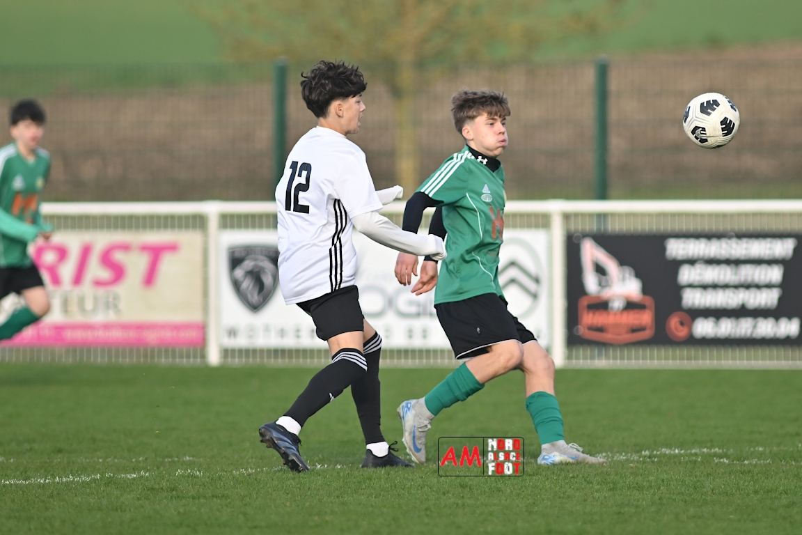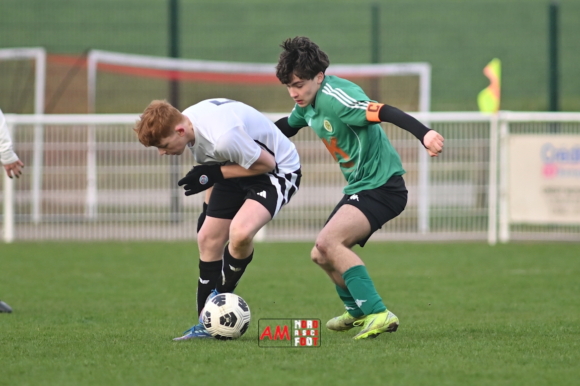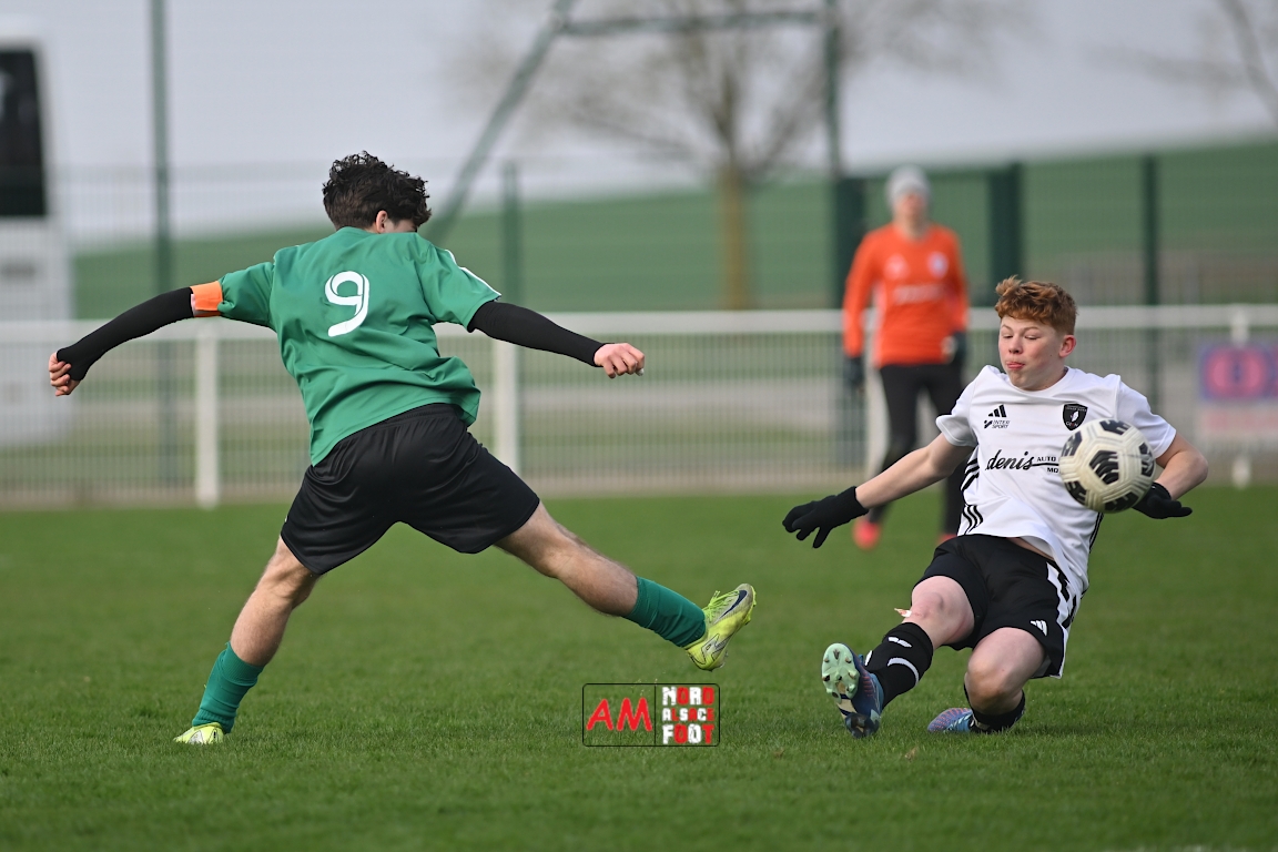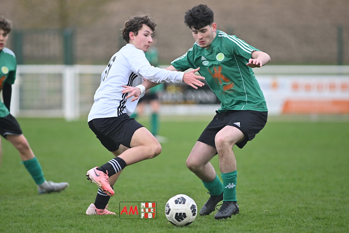 A l’occasion de la deuxième journée de championnat de cette phase “Titre” chez les U16/D1 (Poule A), le Groupement Jeunes d’Alsace du Nord accueillait l’ASL Strasbourg Robertsau afin de tenter de corriger le tir après la lourde défaite concédée le week-end dernier face au FCE Schirrhein-Schirrhoffen (6-2), et ce, face à des adversaires étant également passés au travers de leur première rencontre en étant sèchement battus par le Zornthal (4-0). Après une première période se soldant par un avantage confortable en faveur des locaux (2-0), les visiteurs allaient réduire l’écart en seconde période sans toutefois parvenir à arracher l’égalisation, le GJAN l’emportant finalement sur ce score de 2-1! Retrouvez, ci-dessous, quelques images de cette rencontre et, pour en apprécier le contenu, veuillez cliquer sur l’une d’entre elles pour afficher le diaporama.