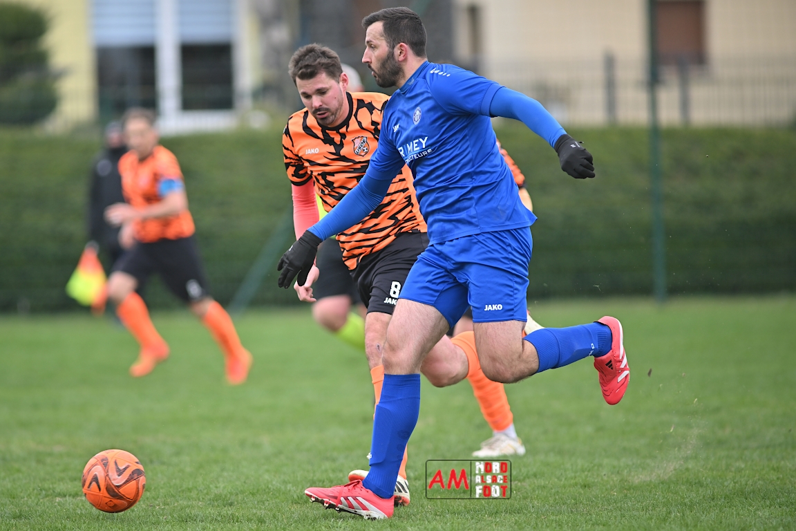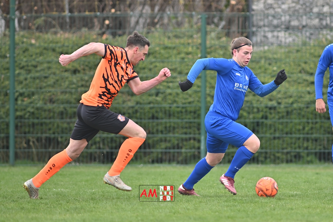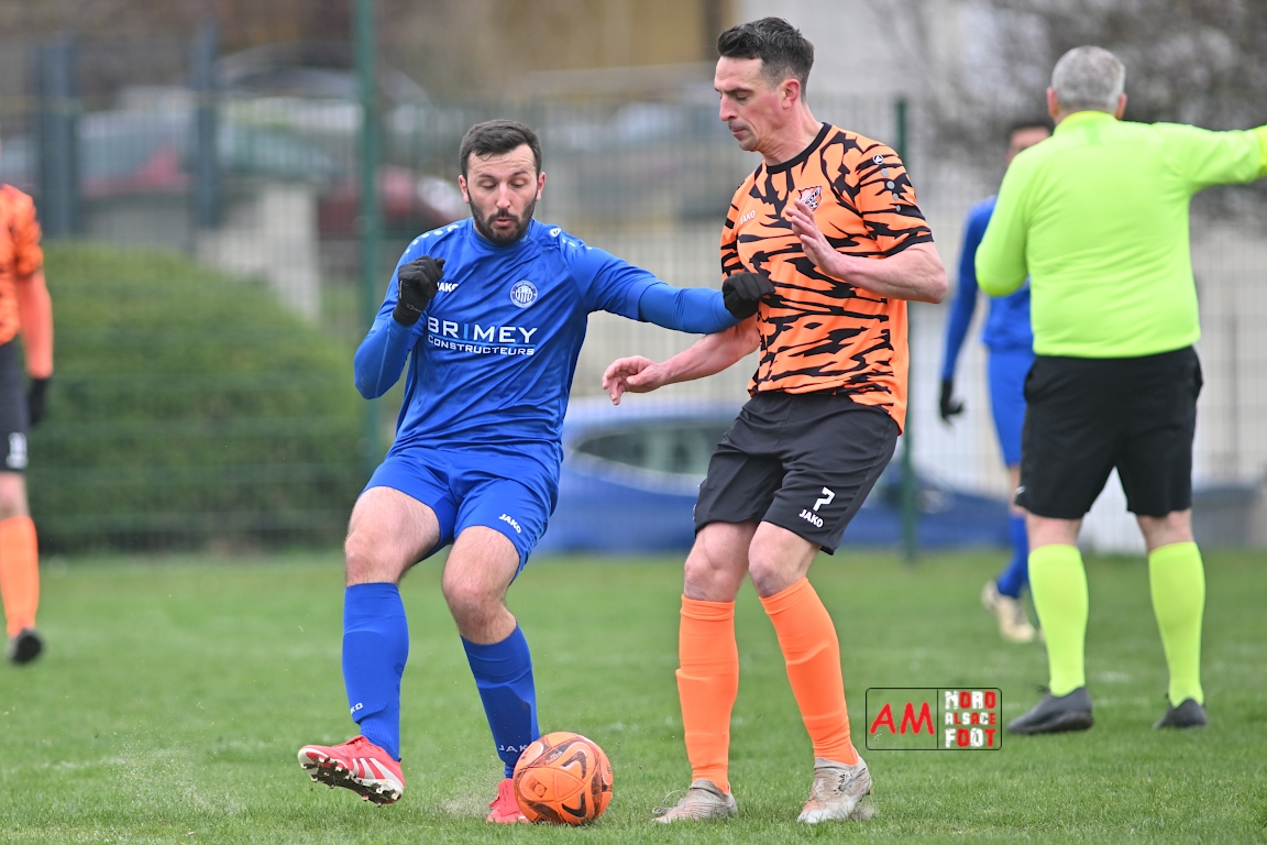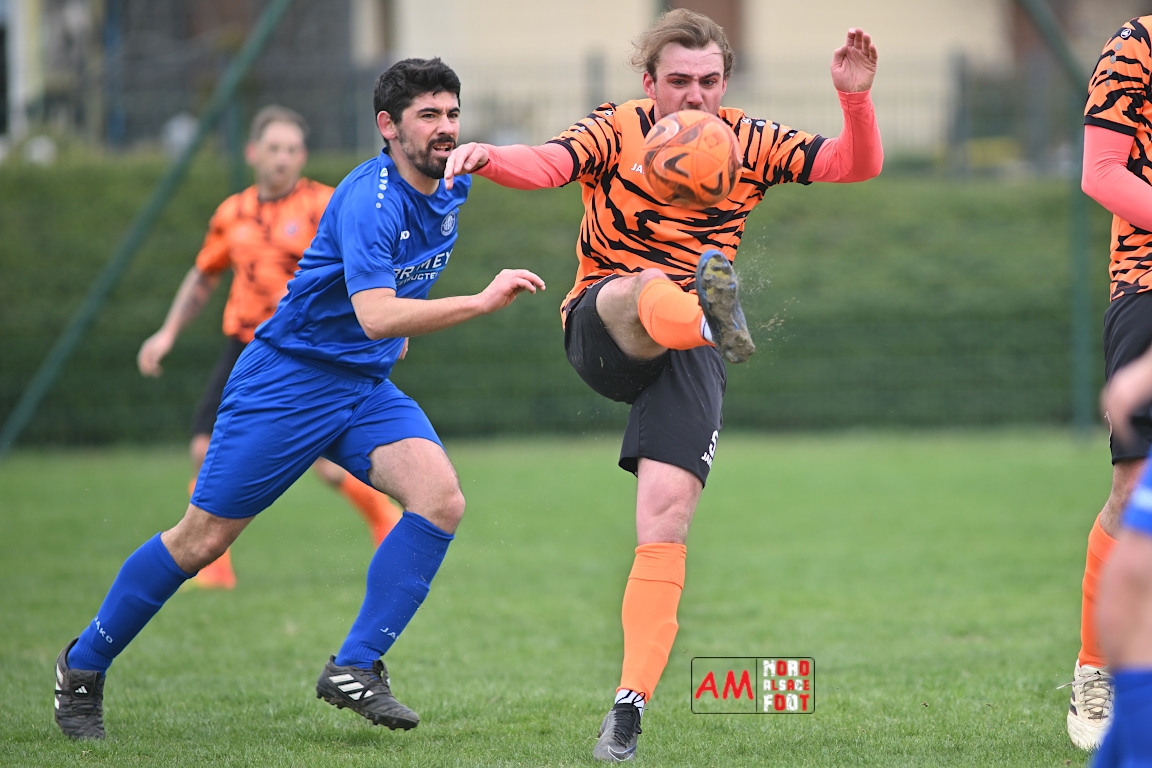 A l’occasion de la quatorzième journée de championnat en District 4 (Poule B), l’US Oberlauterbach 3 (2e) accueillait l’US Preuschdorf 2 (1er) pour un choc pouvant permettre aux locaux de revenir à deux longueur de son adversaire du jour en cas de victoire. Après une première période se soldant par un score nul et vierge, les visiteurs ouvrirent le score à la 48e minute de jeu par l’intermédiaire de Bignet Nicolas avant que les locaux n’égalisent grâce à Herr Fabien (64e) et, au bout du temps additionnel de cette seconde période, un coup-franc de Geyer Julien (90e+3) permit aux oranges de s’imposer sur le fil sur ce score de 2-1. Retrouvez, ci-dessous, quelques images de cette rencontre et, pour en apprécier le contenu, veuillez cliquer sur l’une d’entre elles pour afficher le diaporama.
