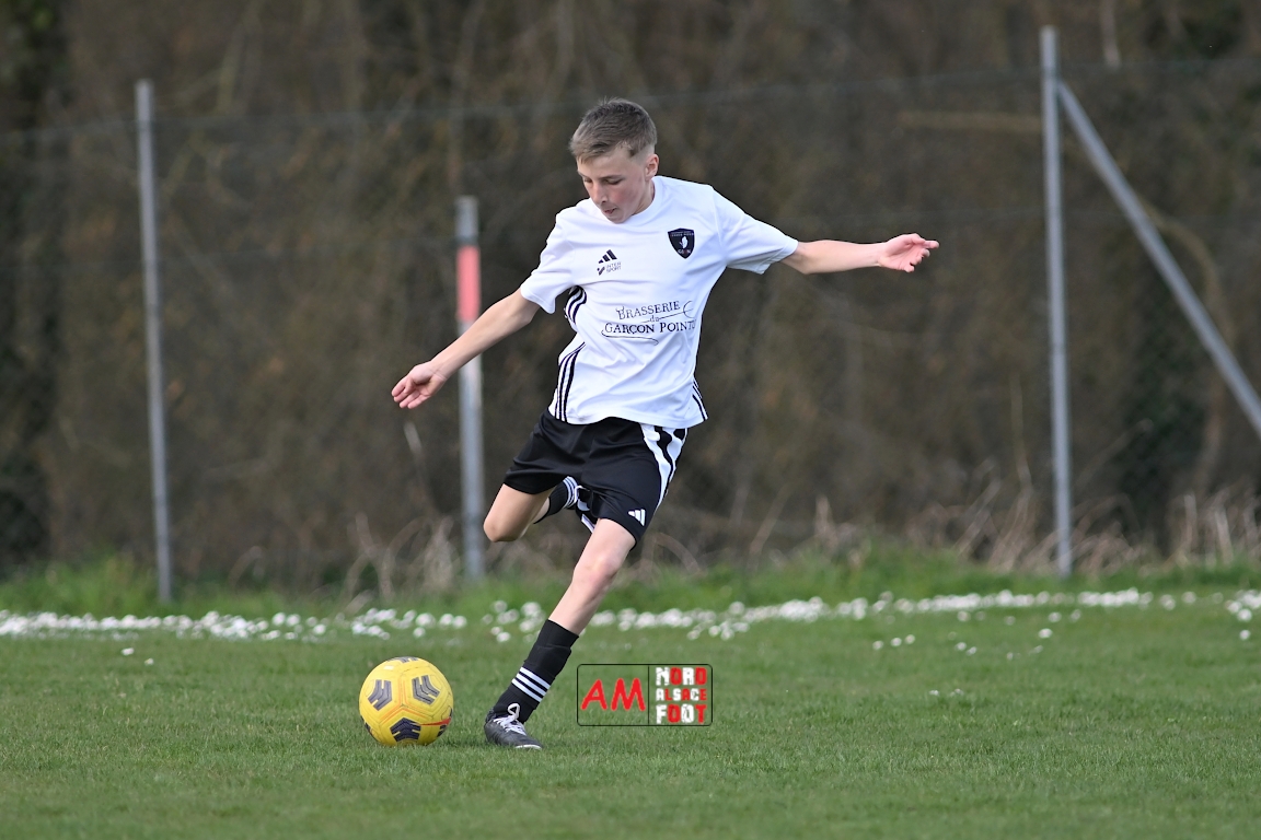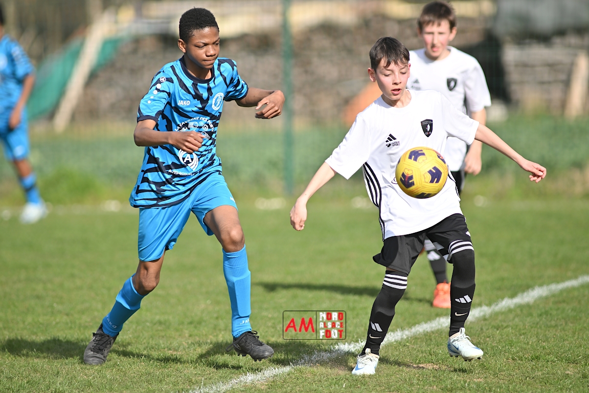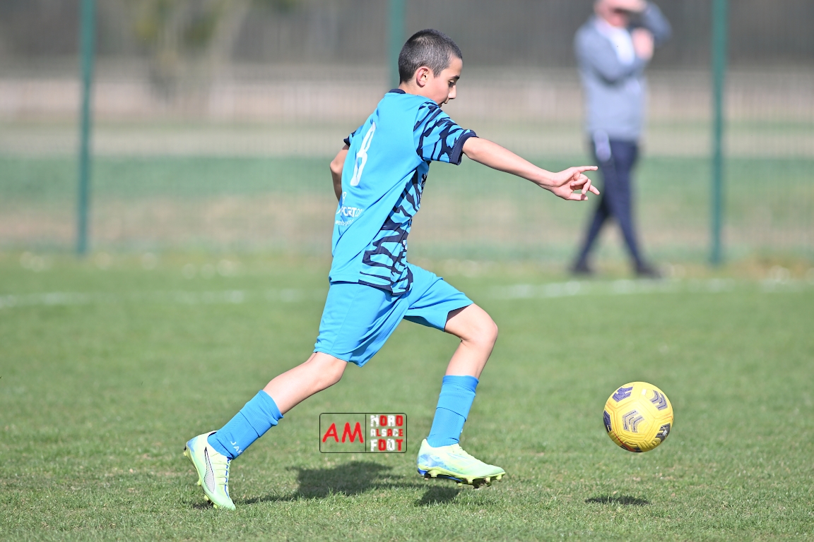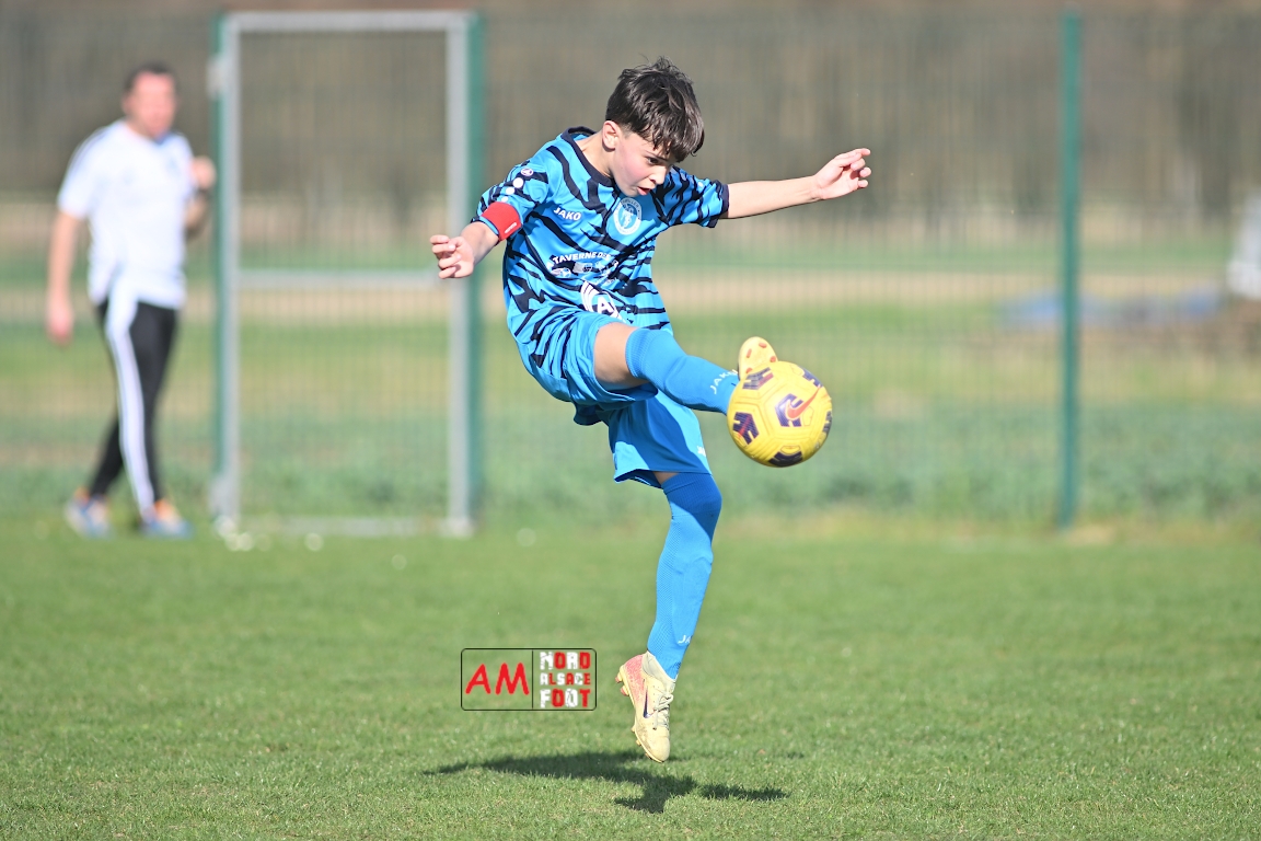 A l’occasion de la troisième journée de championnat de cette phase printanière en U13/D3 (Poule D), les U13-3 du Groupement Jeunes d’Alsace du Nord accueillaient le FC Bischwiller afin de tenter la passe de trois, et ce, face à des adversaires cherchant à confirmer leur récent succès décroché le week-end dernier face au FC Eschbach (6-3). Après une première période se soldant par un avantage confortable en faveur des visiteurs (0-2), les locaux allaient renverser la tendance en seconde période et ils finirent par s’imposer sur ce score de 3-2. Retrouvez, ci-dessous, quelques images de cette rencontre et, pour en apprécier le contenu, veuillez cliquer sur l’une d’entre elles pour afficher le diaporama.