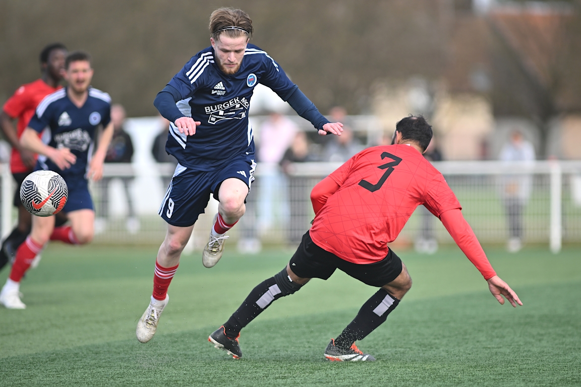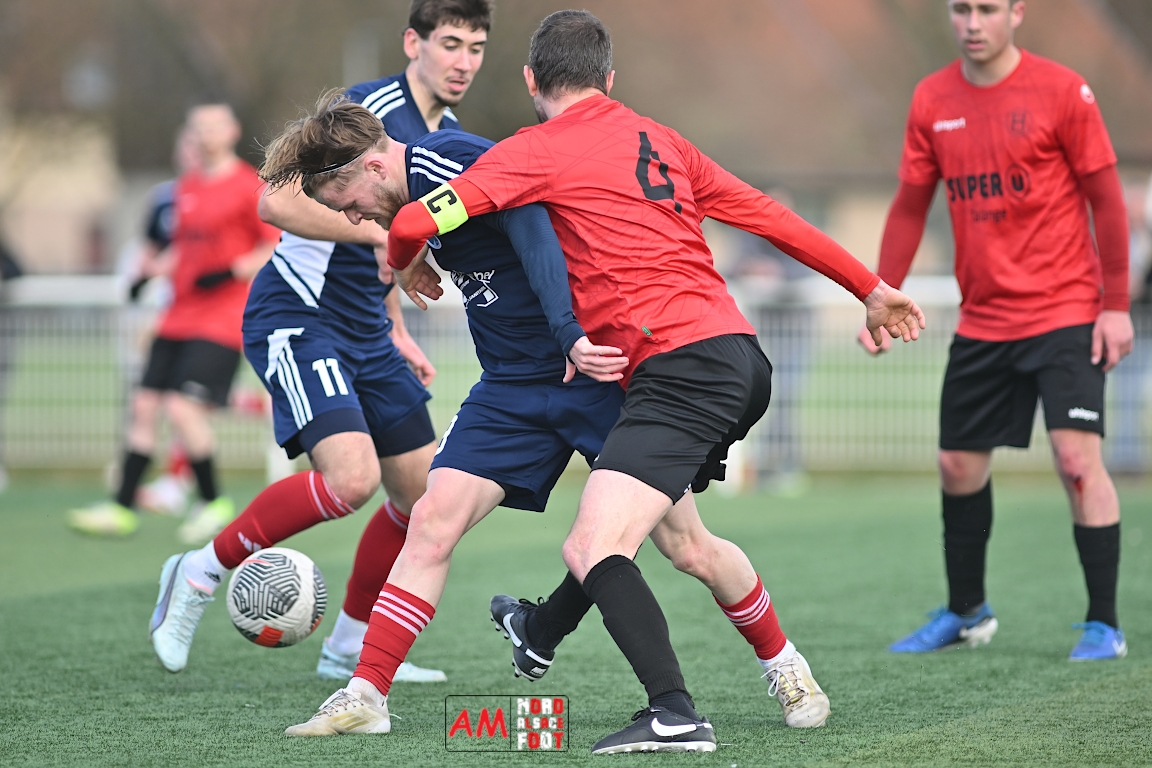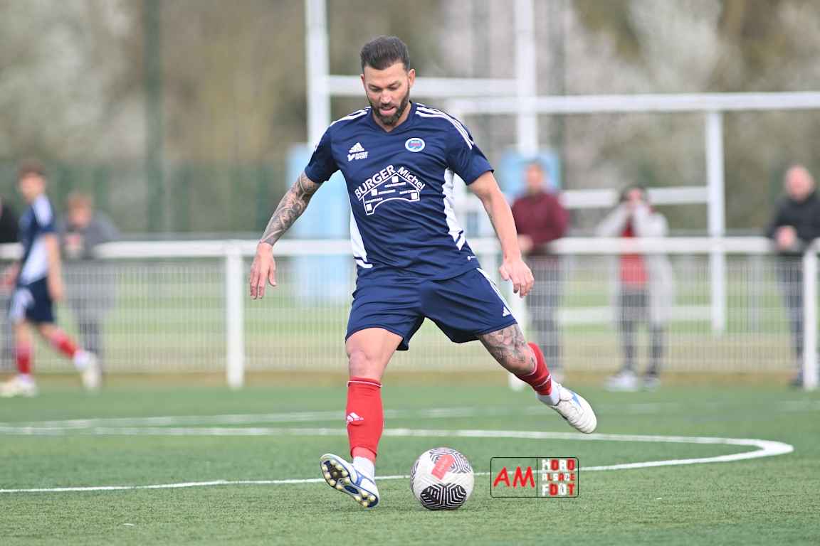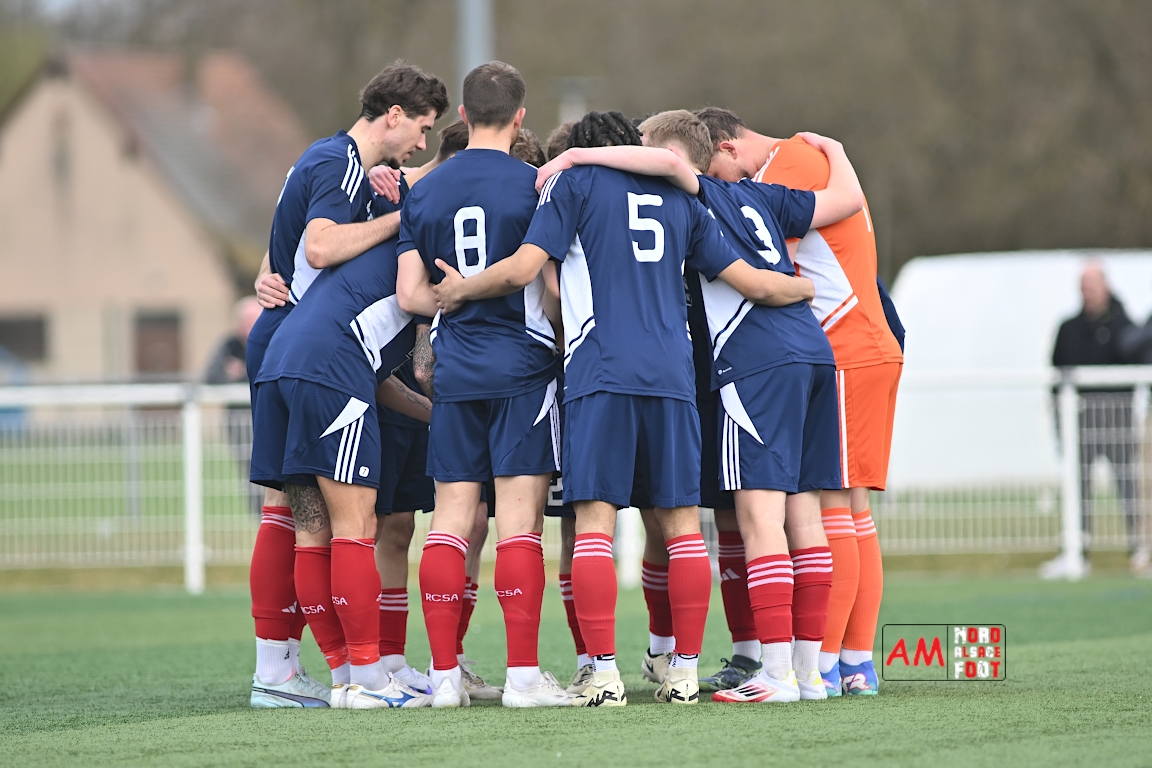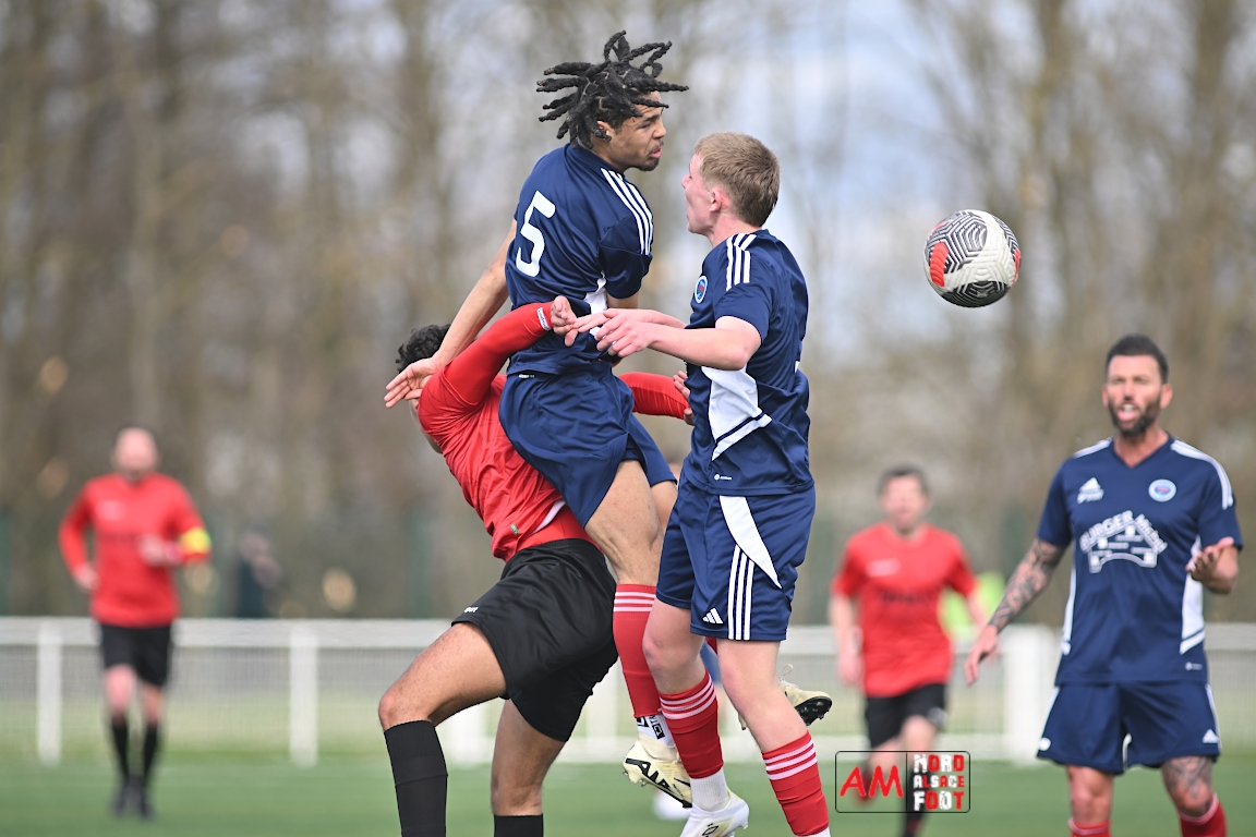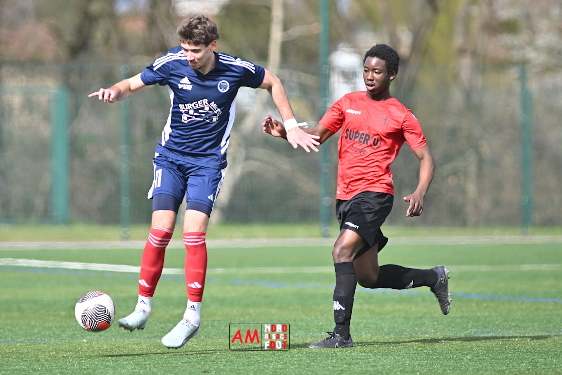 A l’occasion de la dix-neuvième journée de championnat en Régional 1 (Poule B), le FR Haguenau 2 accueillait le FC Hagondange afin de tenter de rectifier le tir après la défaite concédée la semaine dernière face à l’US Oberlauterbach (3-0), et ce, face à la lanterne rouge de ce groupe. Après une première période se soldant par un score nul et vierge, les locaux allaient inscrire deux buts par l’intermédiaire de Delamarre Anthony (49e) et de Bauer Noa (63e) avant que Touati Zakariya ne réduise la marque sur penalty (75e) et, dans les derniers instants du temps réglementaire, les doublures haguenoviennes refirent le break grâce à un penalty de Sonrel Cédric (89e). Retrouvez, ci-dessous, quelques images de cette rencontre et, pour en apprécier le contenu, veuillez cliquer sur l’une d’entre elles pour afficher le diaporama.