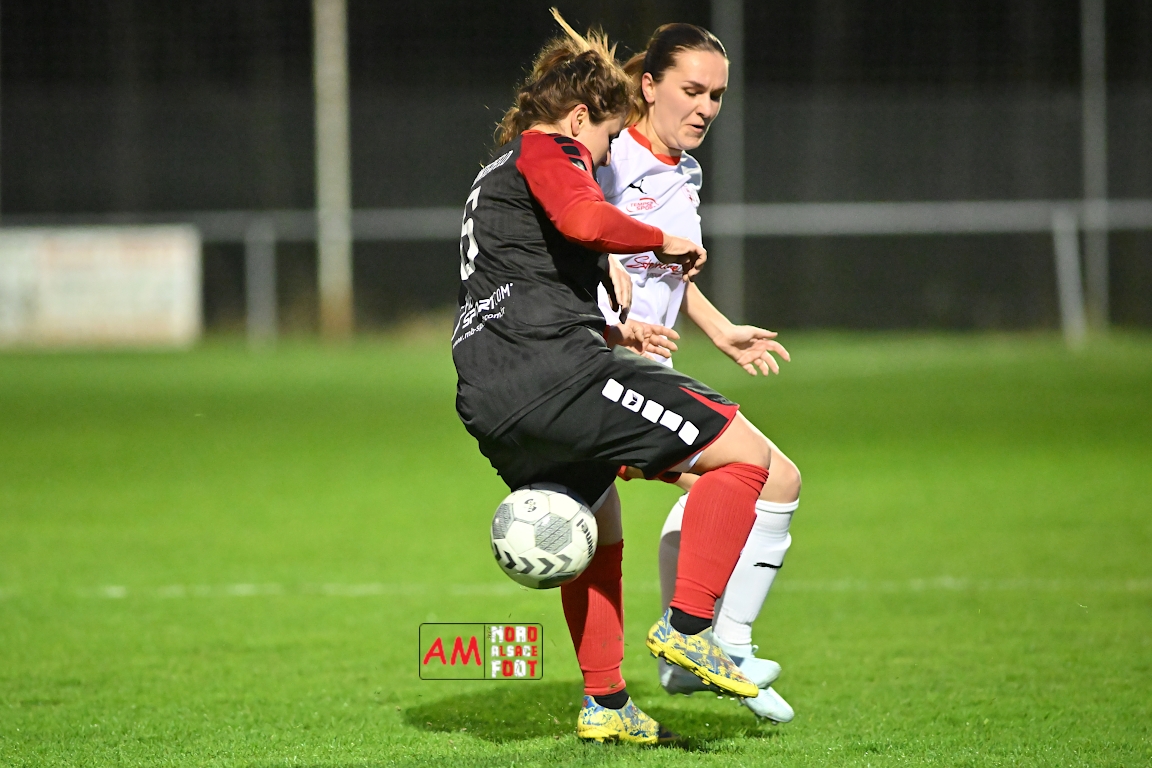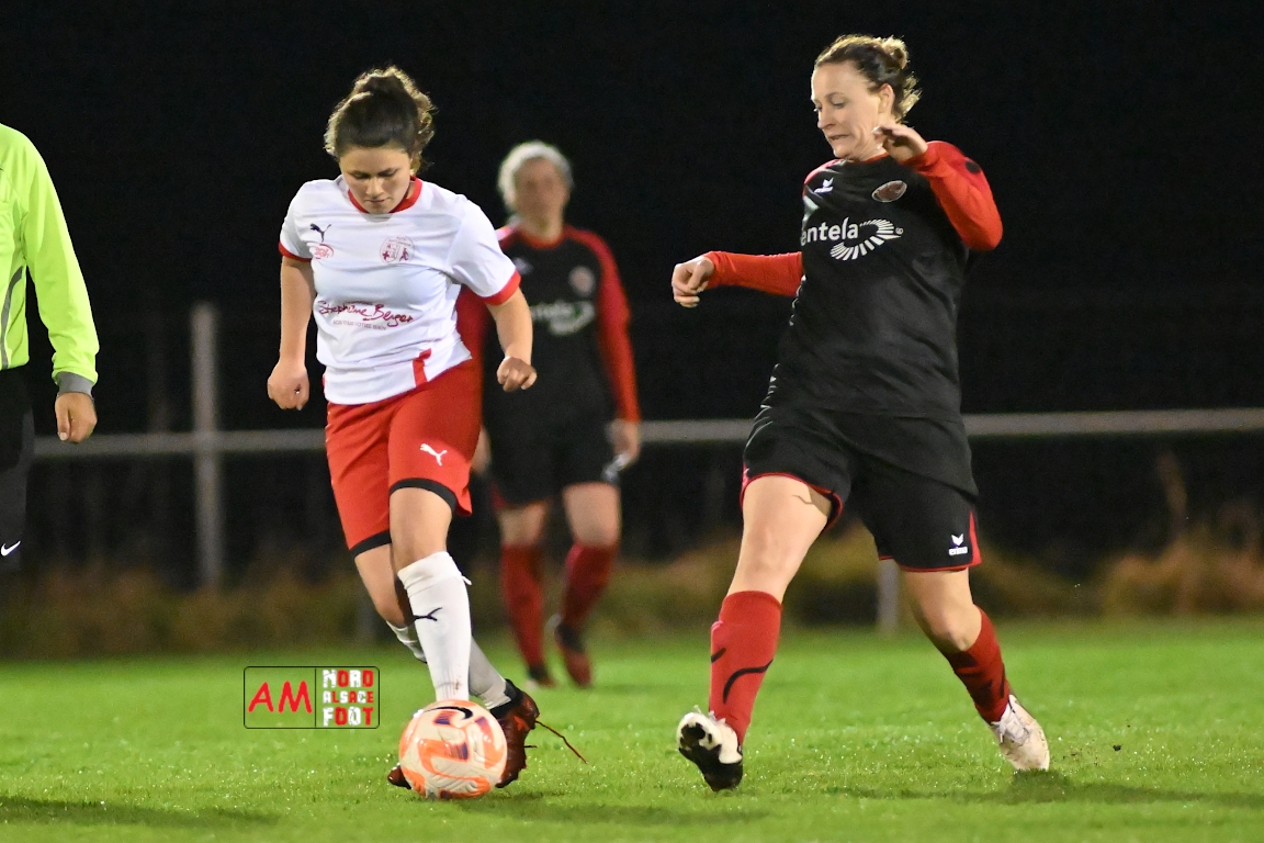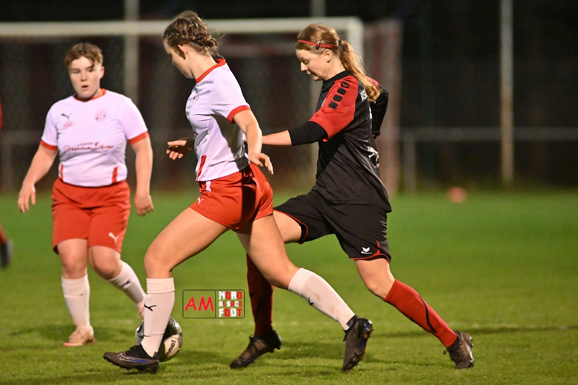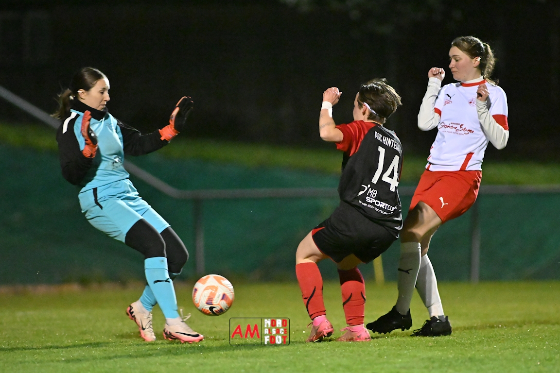 A l’occasion de la treizième journée de championnat en District 1 Féminine (Poule A), l’AS Copains Hinterfeld F accueillait l’entente Duttlenheim/Hindisheim F afin de tenter de remporter une première victoire à domicile, et ce, face à des adversaires ne s’étant jamais imposées à l’extérieur. Après une première période se soldant par un score nul et vierge, les Roten teufel allaient inscrire deux buts en seconde période avant qu’elles ne s’imposent sur ce score de 2-0. Retrouvez, ci-dessous, quelques images de cette rencontre et, pour en apprécier le contenu, veuillez cliquer sur l’une d’entre elles pour afficher le diaporama.