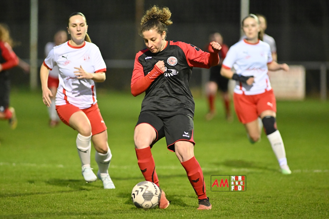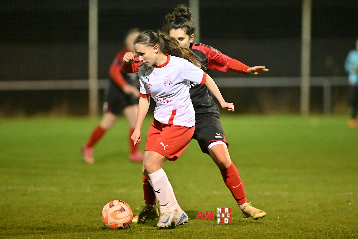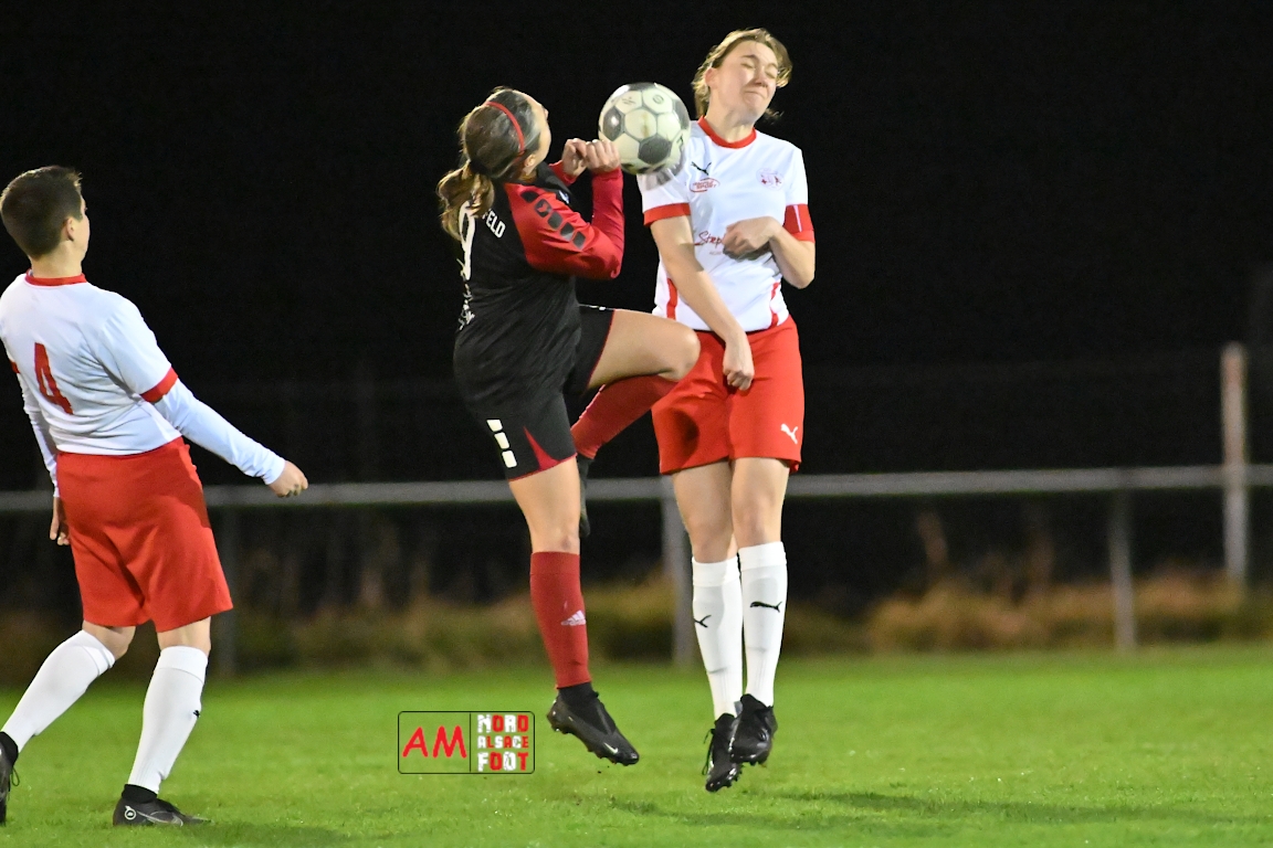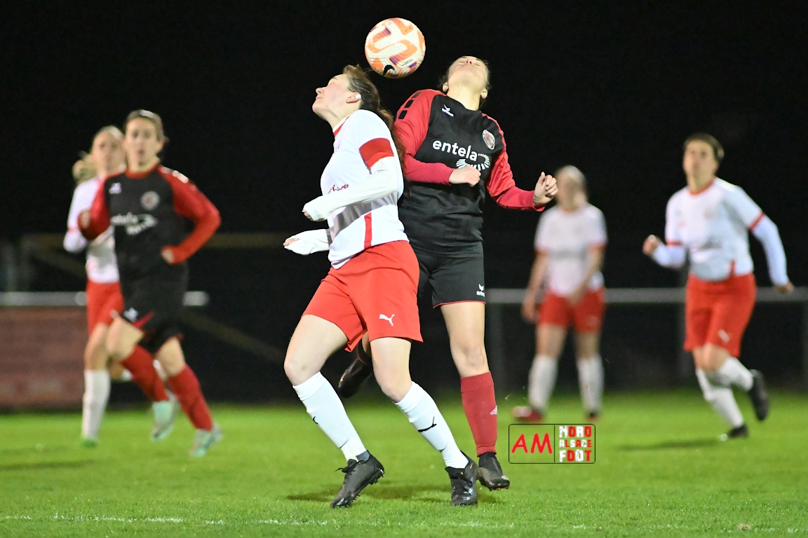 A l’occasion de la treizième journée de championnat en District 1 Féminine (Poule A), l’AS Copains Hinterfeld F accueillait l’entente Duttlenheim/Hindisheim F afin de tenter de remporter une première victoire à domicile, et ce, face à des adversaires ne s’étant jamais imposées à l’extérieur. Après une première période se soldant par un score nul et vierge, les Roten teufel allaient inscrire deux buts en seconde période avant qu’elles ne s’imposent sur ce score de 2-0. Retrouvez, ci-dessous, quelques images de cette rencontre et, pour en apprécier le contenu, veuillez cliquer sur l’une d’entre elles pour afficher le diaporama.