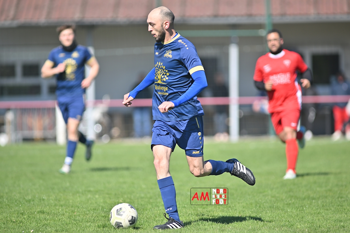 A l’occasion d’un match amical, le SR Rountzenheim/Auenheim 2 (District 7 Maintien) accueillait le FC Soufflenheim 3 (District 8 Accession) afin de tenter de garder le rythme après la remise générale des compétitions du District. Après une première période se soldant par un avantage confortable en faveur des locaux grâce à des réalisations signées Gattulli Raphaël (1ère) et Sempre Clément (5e), ces derniers allaient poursuivre sur leur lancée en seconde période en ajoutant deux buts au compteur grâce à un doublé de Feyertag Nicolas (47e, 49e) avant que les visiteurs ne réduisent la marque par l’intermédiaire de Zaug Adrien (51e) et Paralakkilic Yasin (56e) et, à la 63e minute de jeu, les locaux creusèrent l’écart grâce à un nouveau but de Feyertag Nicolas, leurs homologues ne baissant par pour autant les bras en remontant le score grâce à des buts inscrits par Dursun Berkan (74e), Parlakkilic Yasin (76e) et Karabiber Mehmet (79e, sp) mais ce fut sans compter sur Alfarela Alfredo, ce dernier permettant finalement au SR Rountzenheim/Auenheim 2 de s’imposer sur ce score de 6-5! Retrouvez, ci-dessous, quelques images de cette rencontre et, pour en apprécier le contenu, veuillez cliquer sur l’une d’entre elles pour afficher le diaporama.