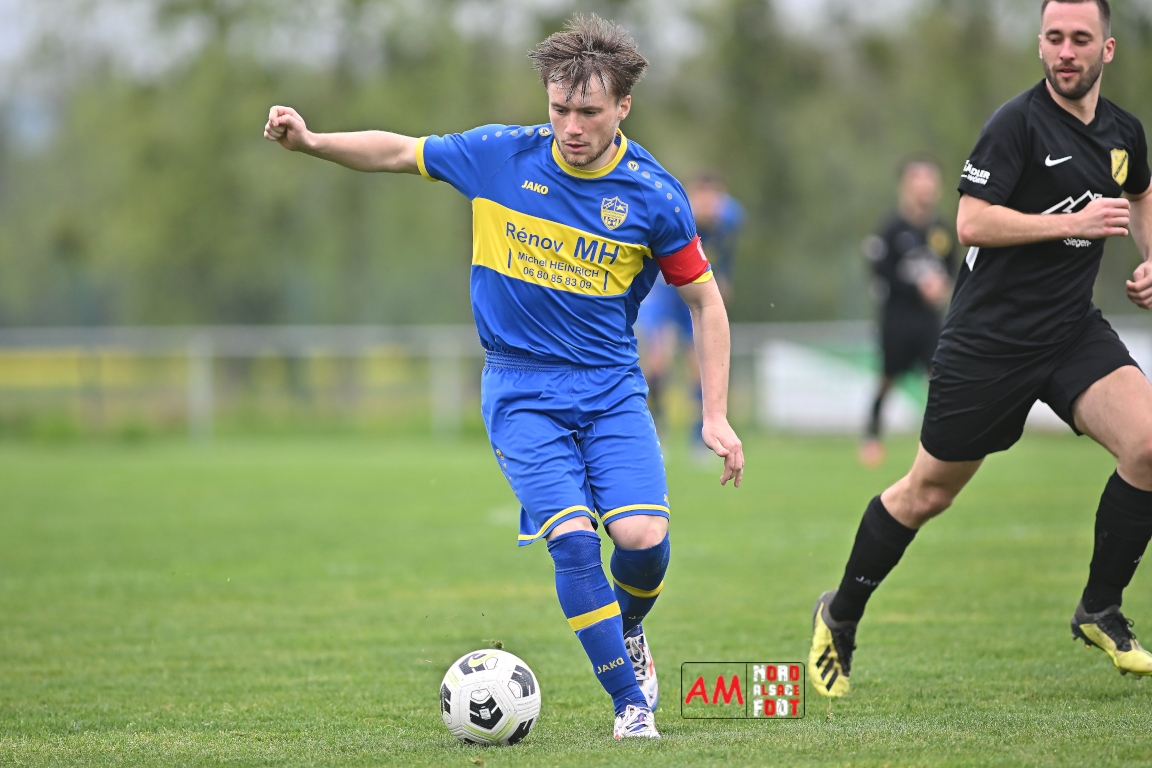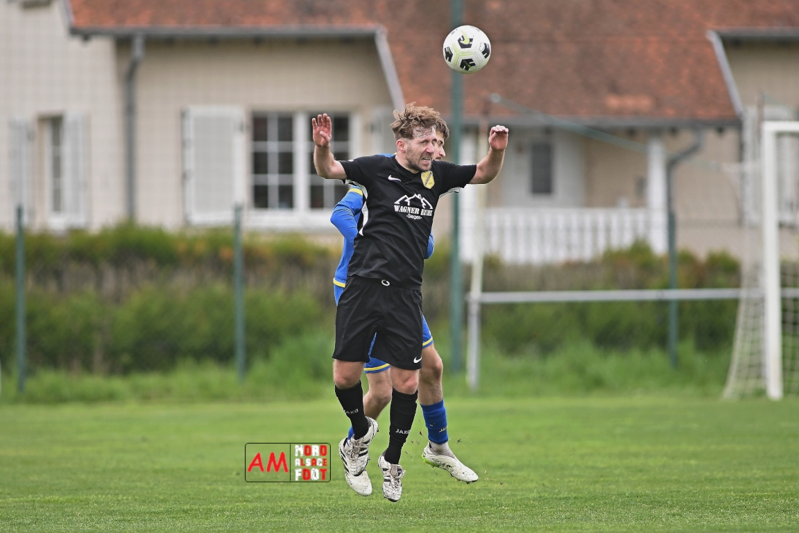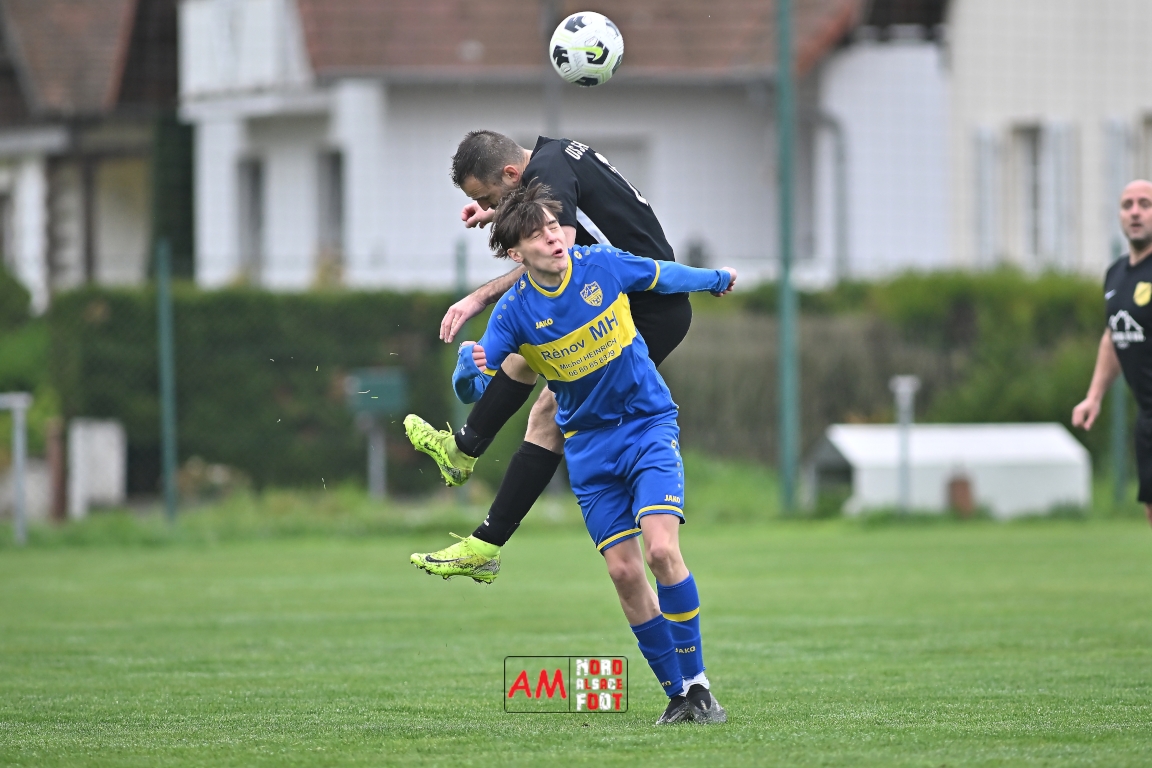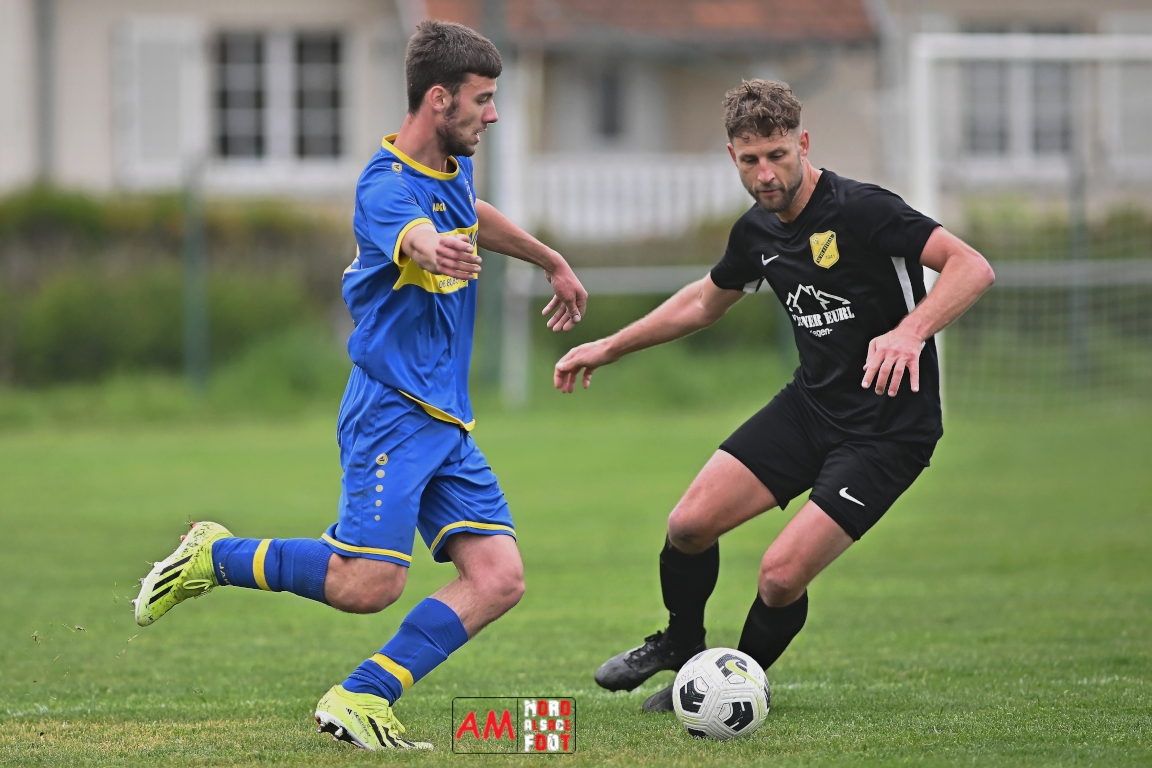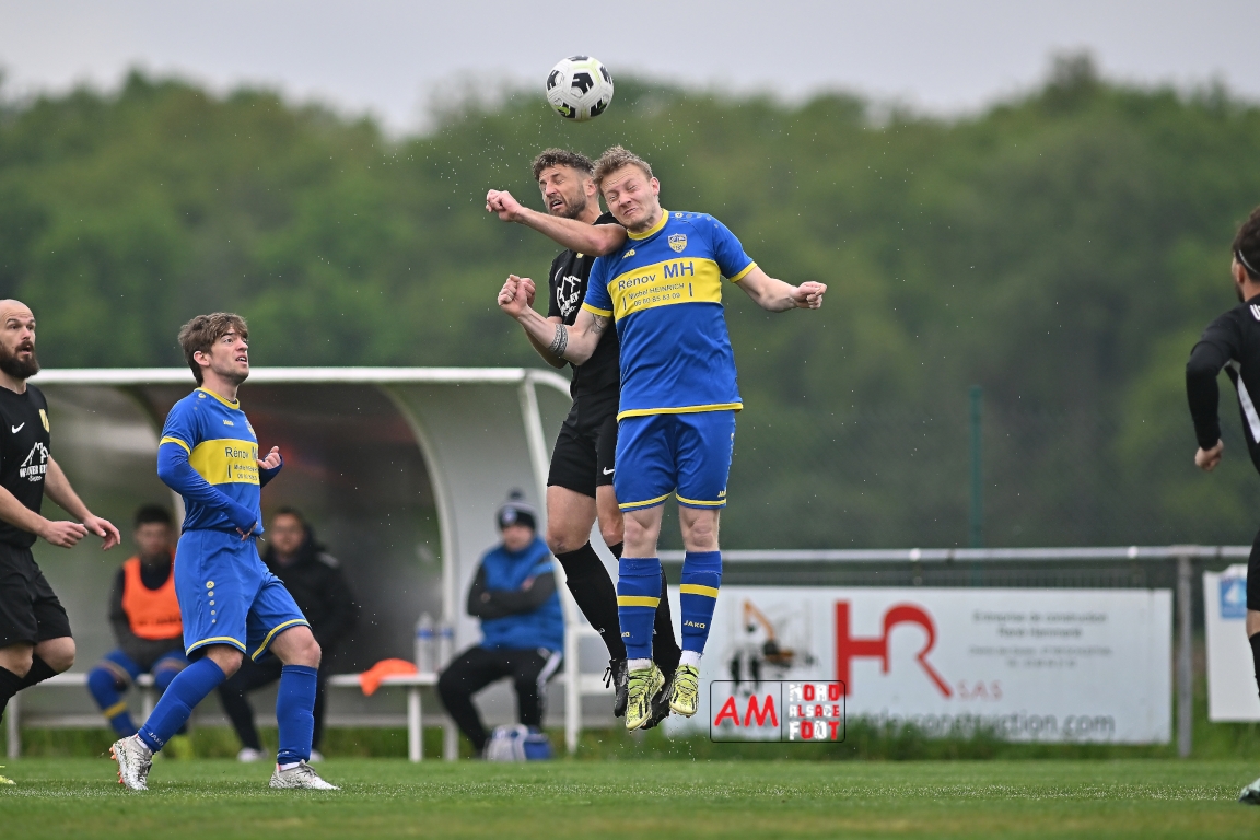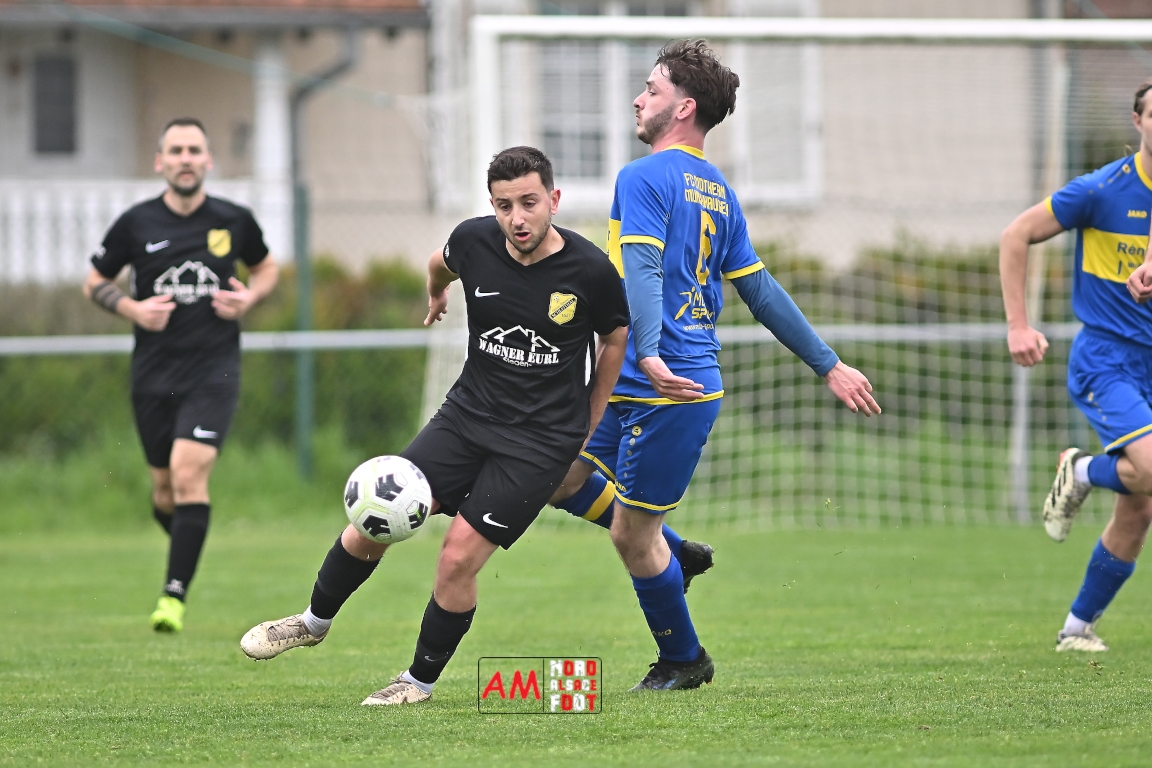 A l’occasion d’un match en retard comptant pour la neuvième journée de championnat en District 5 (Poule B), l’US Schleithal (2e) accueillait l’entente Munchhausen/Mothern 2 (1er) afin de tenter d’infliger un premier revers à leurs adversaires du jour qui, de leur côté, peuvent accuser treize points d’avance en cas de succès ce vendredi matin. Après une première période se soldant par un score nul et vierge, les locaux allaient corriger leurs adversaires en seconde période grâce à des réalisations signées Fischer Michel (55e), Vetter Marvin (69e) et Lienhardt Joey (76e, 90e+2) avant qu’ils ne finissent par largement s’imposer sur ce score de 4-0! Retrouvez, ci-dessous, quelques images de cette rencontre et, pour en apprécier le contenu, veuillez cliquer sur l’une d’entre elles pour afficher le diaporama.