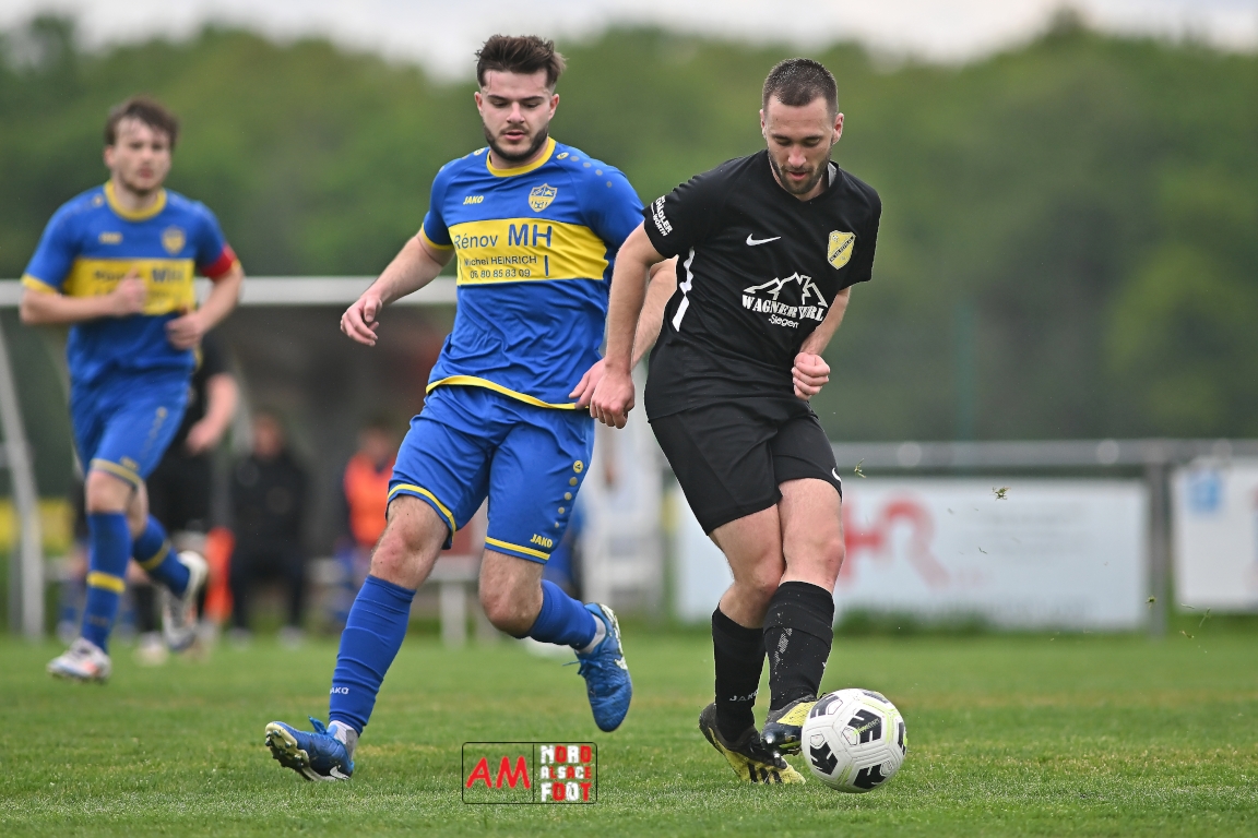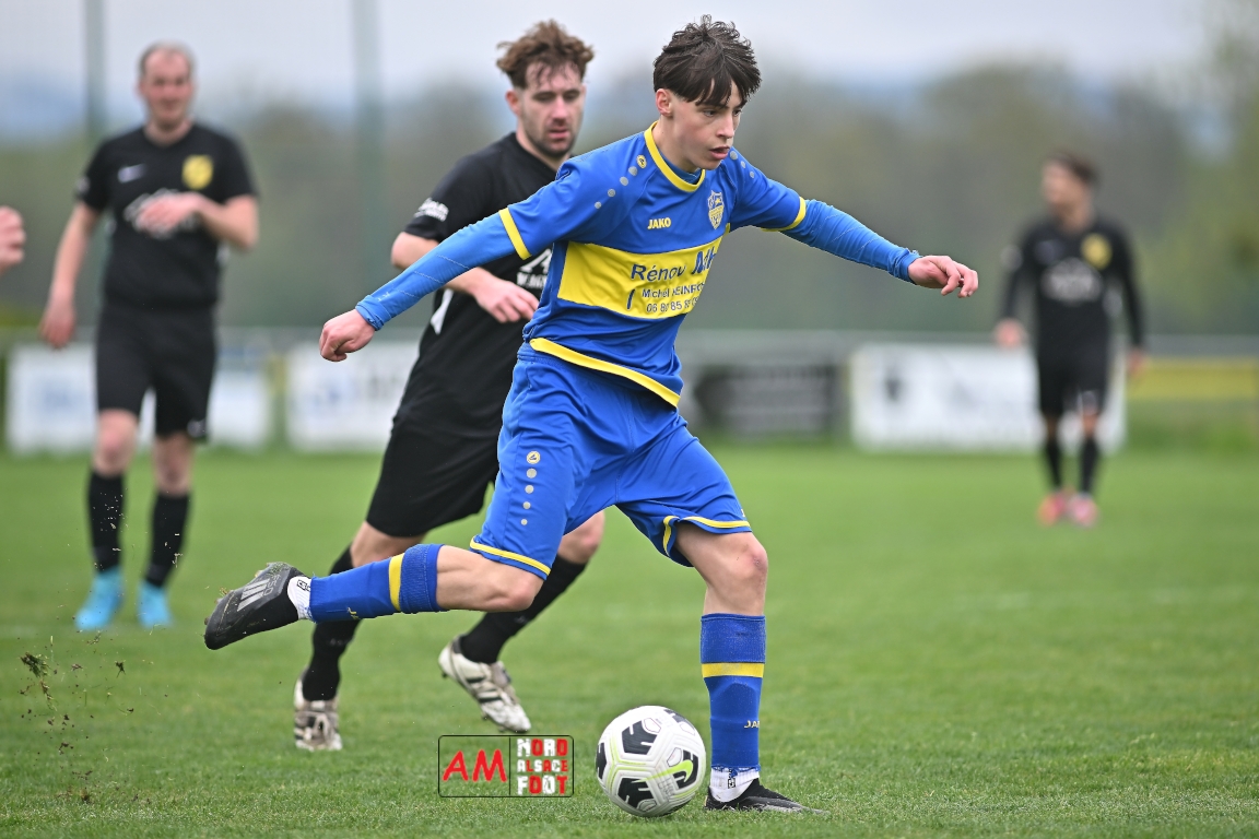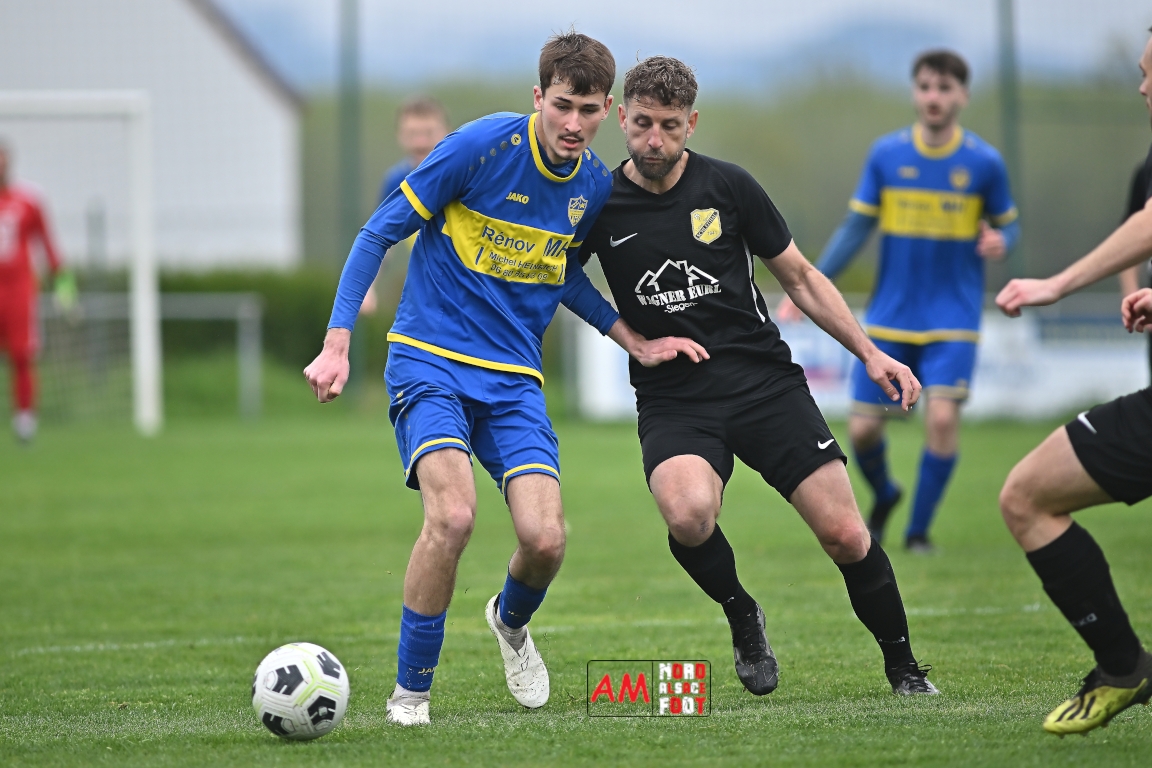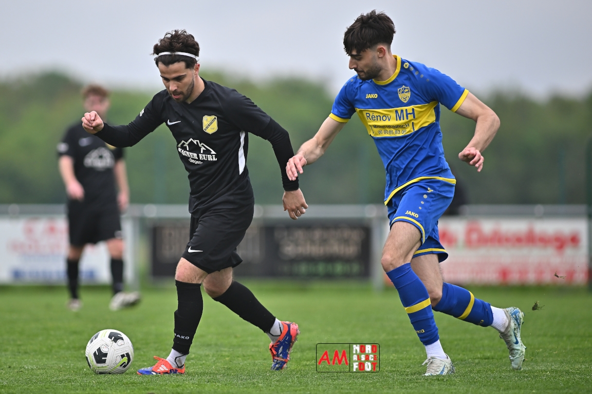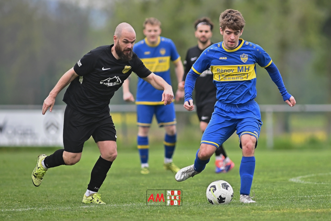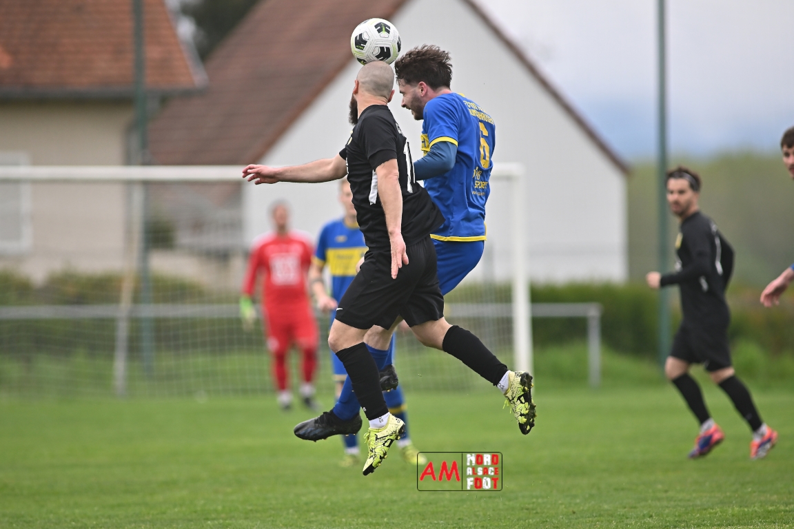 A l’occasion d’un match en retard comptant pour la neuvième journée de championnat en District 5 (Poule B), l’US Schleithal (2e) accueillait l’entente Munchhausen/Mothern 2 (1er) afin de tenter d’infliger un premier revers à leurs adversaires du jour qui, de leur côté, peuvent accuser treize points d’avance en cas de succès ce vendredi matin. Après une première période se soldant par un score nul et vierge, les locaux allaient corriger leurs adversaires en seconde période grâce à des réalisations signées Fischer Michel (55e), Vetter Marvin (69e) et Lienhardt Joey (76e, 90e+2) avant qu’ils ne finissent par largement s’imposer sur ce score de 4-0! Retrouvez, ci-dessous, quelques images de cette rencontre et, pour en apprécier le contenu, veuillez cliquer sur l’une d’entre elles pour afficher le diaporama.