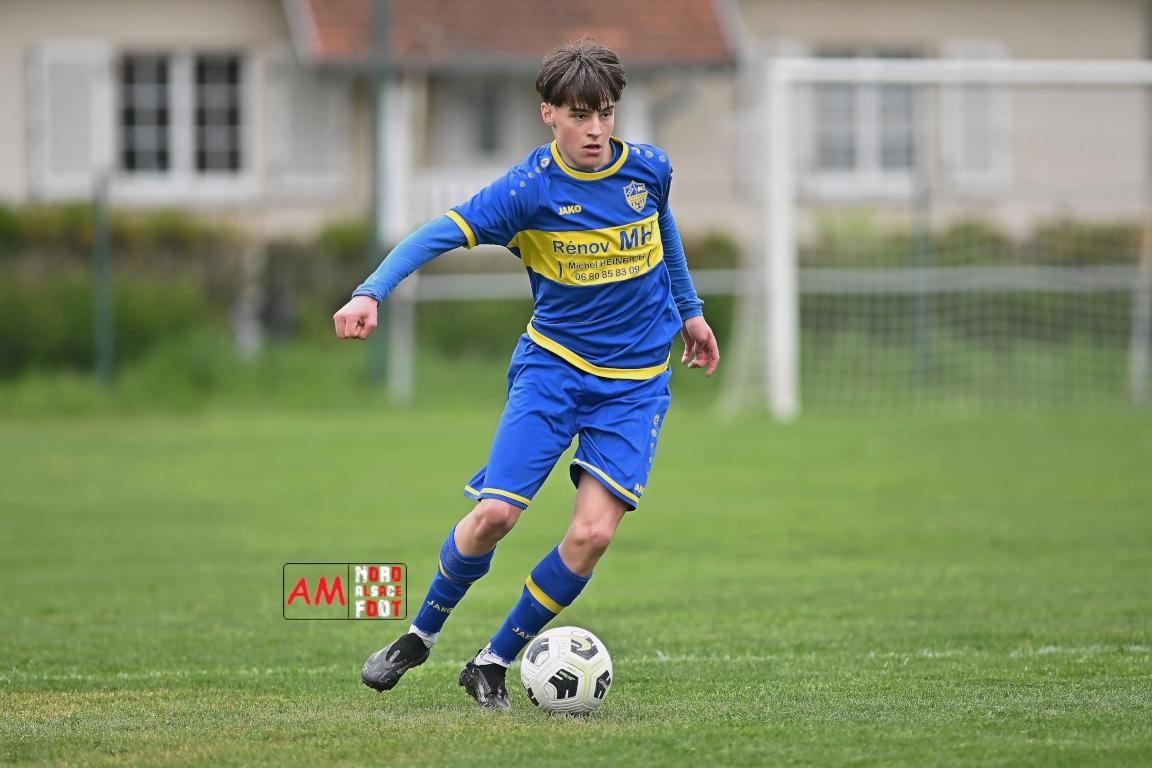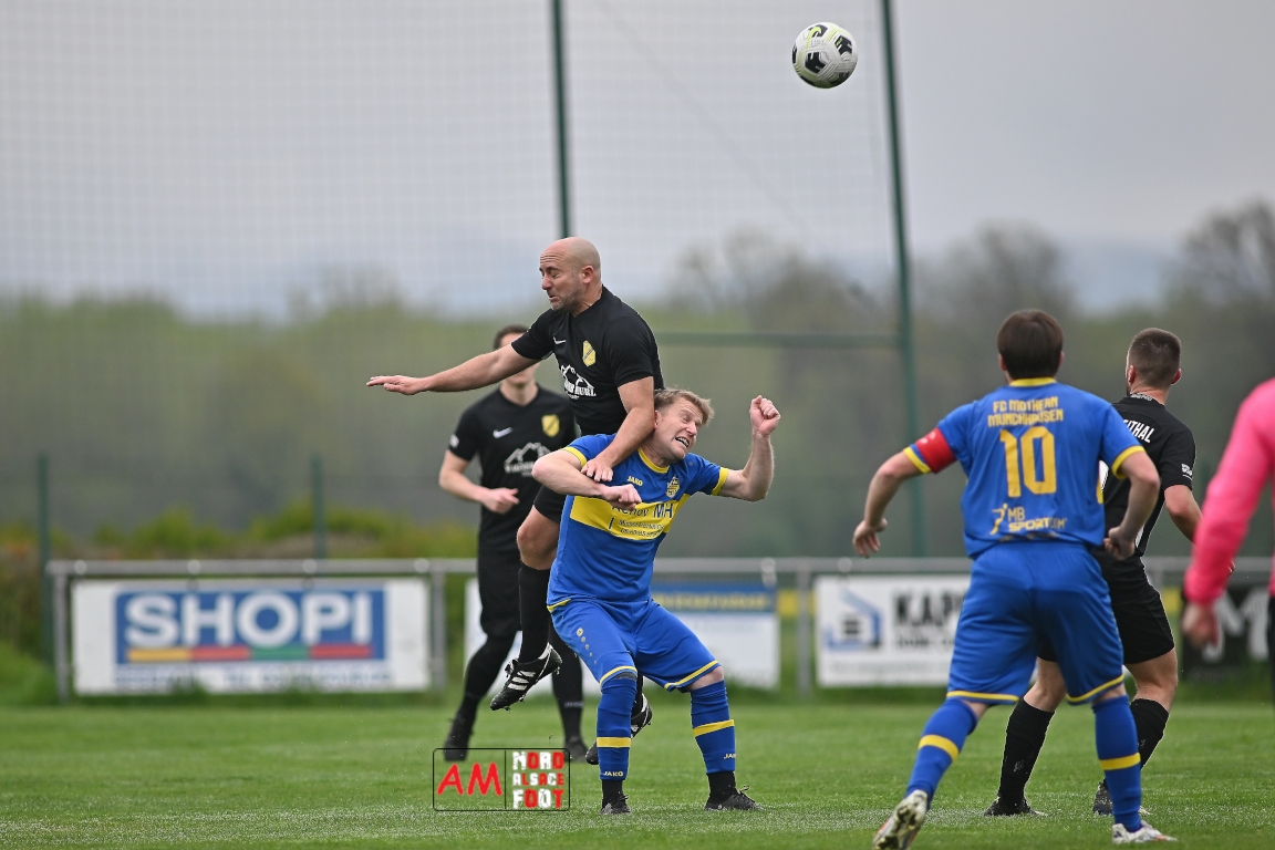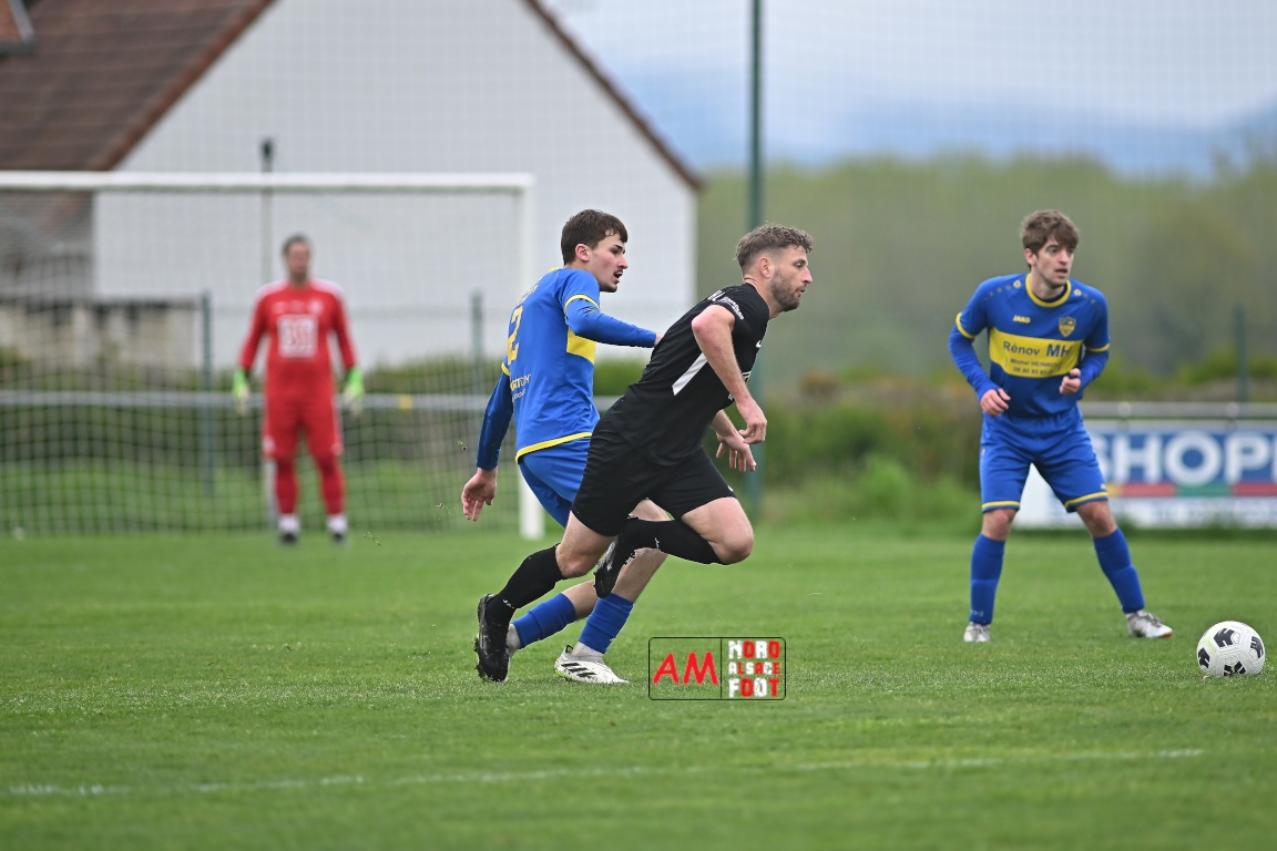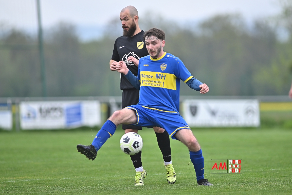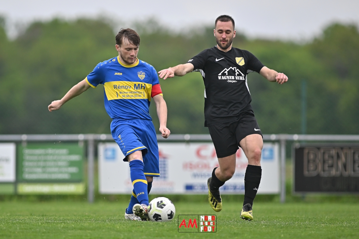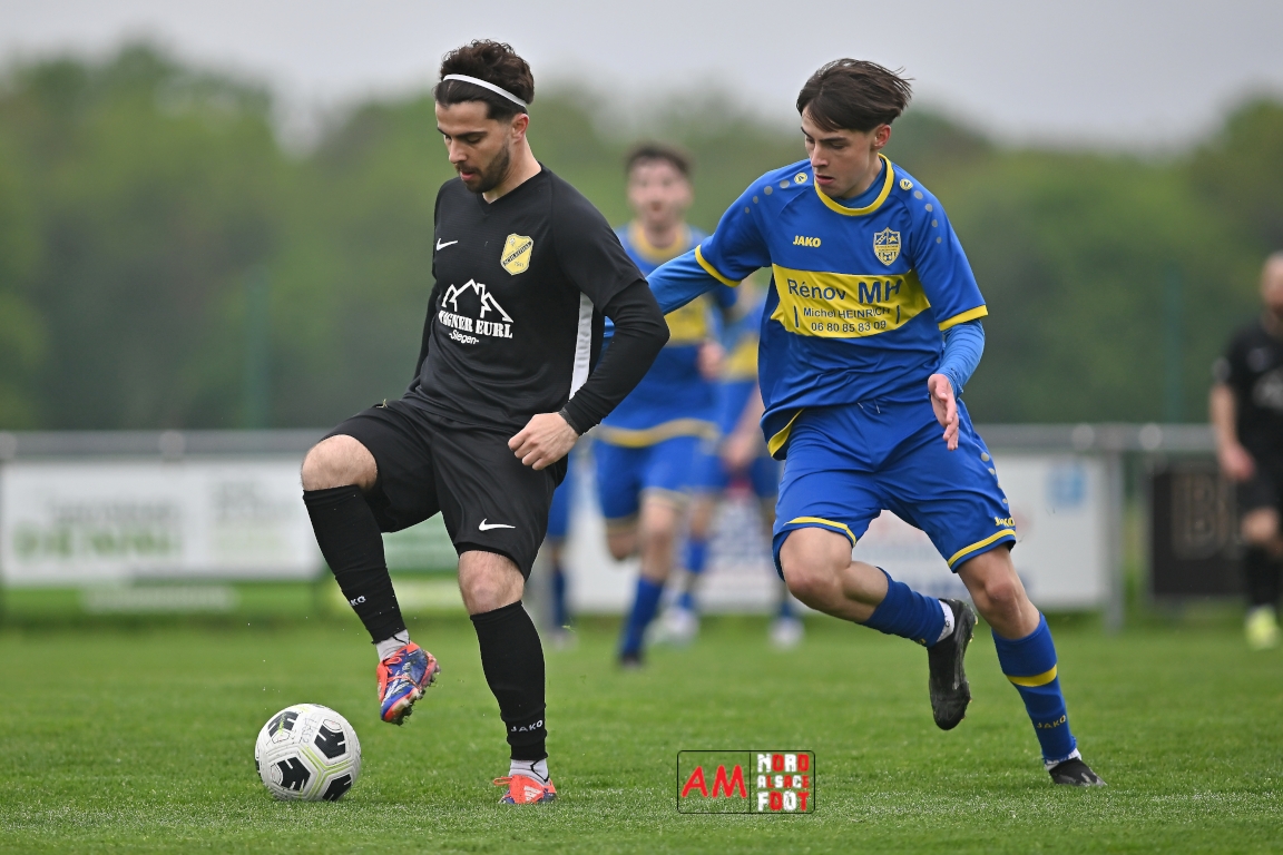 A l’occasion d’un match en retard comptant pour la neuvième journée de championnat en District 5 (Poule B), l’US Schleithal (2e) accueillait l’entente Munchhausen/Mothern 2 (1er) afin de tenter d’infliger un premier revers à leurs adversaires du jour qui, de leur côté, peuvent accuser treize points d’avance en cas de succès ce vendredi matin. Après une première période se soldant par un score nul et vierge, les locaux allaient corriger leurs adversaires en seconde période grâce à des réalisations signées Fischer Michel (55e), Vetter Marvin (69e) et Lienhardt Joey (76e, 90e+2) avant qu’ils ne finissent par largement s’imposer sur ce score de 4-0! Retrouvez, ci-dessous, quelques images de cette rencontre et, pour en apprécier le contenu, veuillez cliquer sur l’une d’entre elles pour afficher le diaporama.