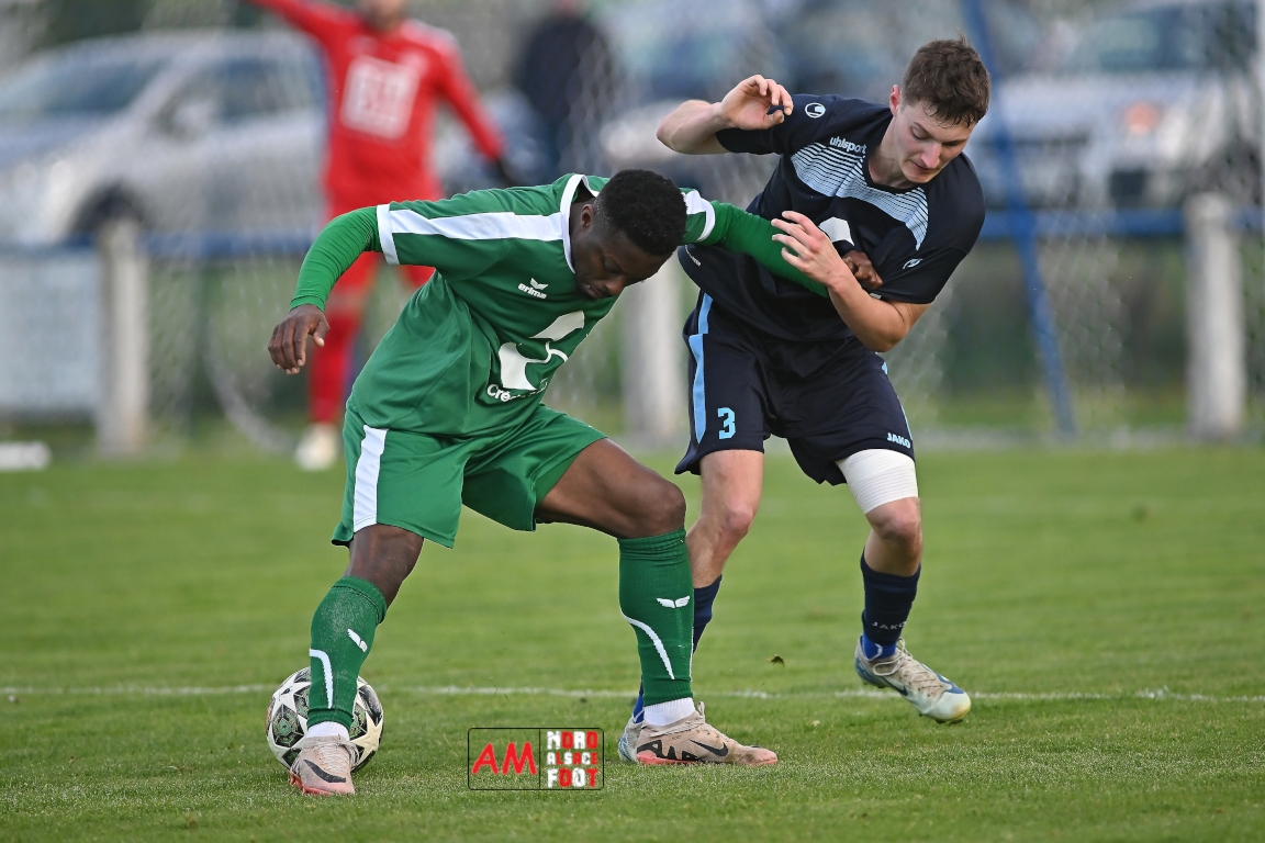 A l’occasion des quarts de finale de la Coupe du Crédit Mutuel – Secteur Wissembourg, le FC Mothern (District 1) accueillait le FC Scheibenhard (Régional 2) avec la ferme intention de battre le tenant du titre. Après une première période se soldant par un score de parité grâce à l’ouverture du score des locaux signée Rauscher Maxime (17e) suivie de l’égalisation des visiteurs signée Koffi Etchjien (21e), les Mothernois allaient parvenir à prendre l’avantage à la 86e minute de jeu suite à une bourde de Nordt Matthieu permettant à Baron Sten d’envoyer le ballon au fond des filets et, au cours des arrêts de jeu du second acte, Schmaltz Simon fut héroïque en nous gratifiant d’une parade de grande classe sur un coup-franc de Mouradov Akhmed, ce qui permit au FC Mothern de préserver son avantage jusqu’au coup de sifflet final. Retrouvez, ci-dessous, quelques images de cette rencontre et, pour en apprécier le contenu, veuillez cliquer sur l’une d’entre elles pour afficher le diaporama.