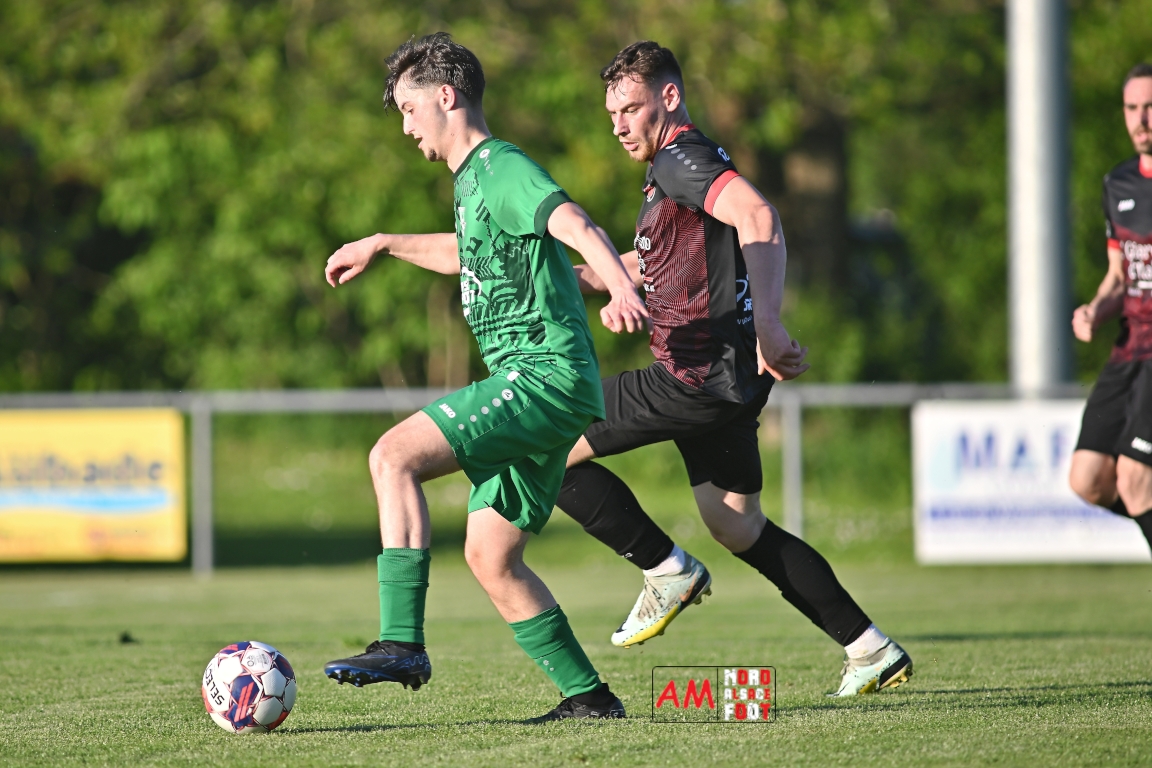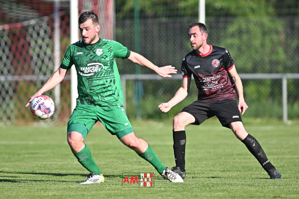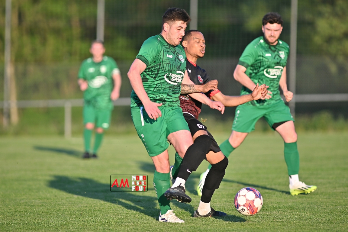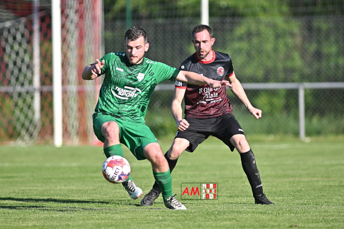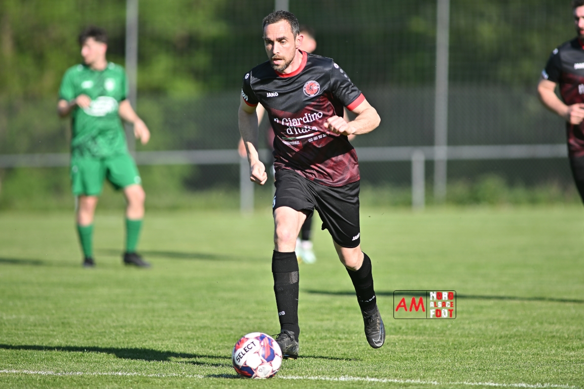 A l’occasion de la seizième journée de championnat en District 3 (Poule B), l’AS Copains Hinterfeld (2e) accueillait le FC Seltz 2 (1er) dans un match au sommet pouvant permettre aux locaux de ravir la première place à leur adversaires du jour en cas de succès. Après une première période se soldant par un score nul et vierge, les locaux ouvrirent le score à la 63e minute de jeu par l’intermédiaire de Fleisch Thomas avant que, sur l’engagement suivant, les verts ne répondent avec l’égalisation d’Alexandrino Flavio, les deux équipes se neutralisant ensuite jusqu’au coup de sifflet final scellant le partage des points. Retrouvez, ci-dessous, quelques images de cette rencontre et, pour en apprécier le contenu, veuillez cliquer sur l’une d’entre elles pour afficher le diaporama.