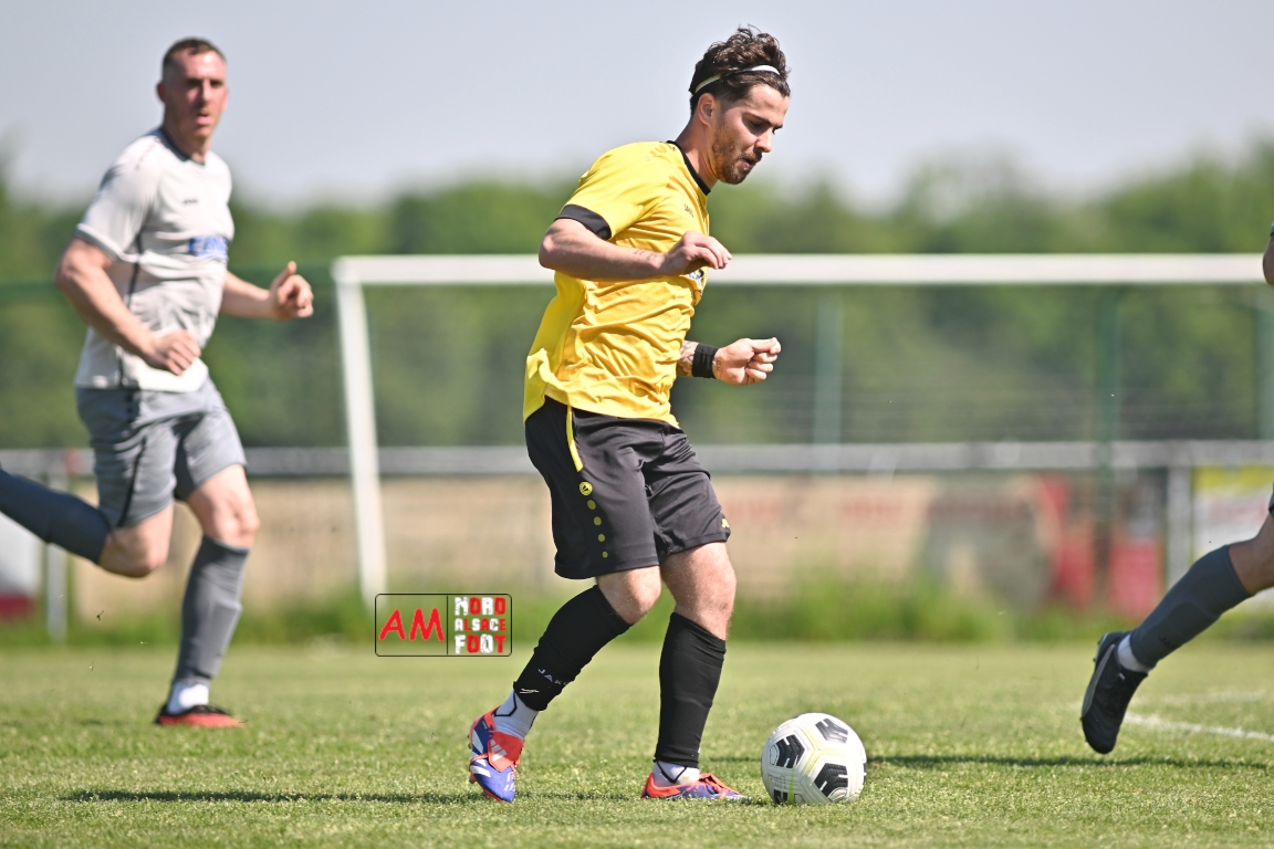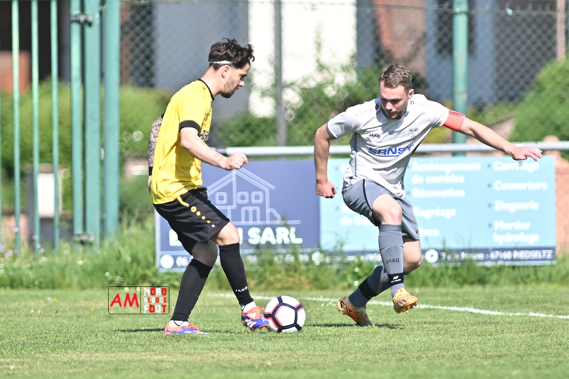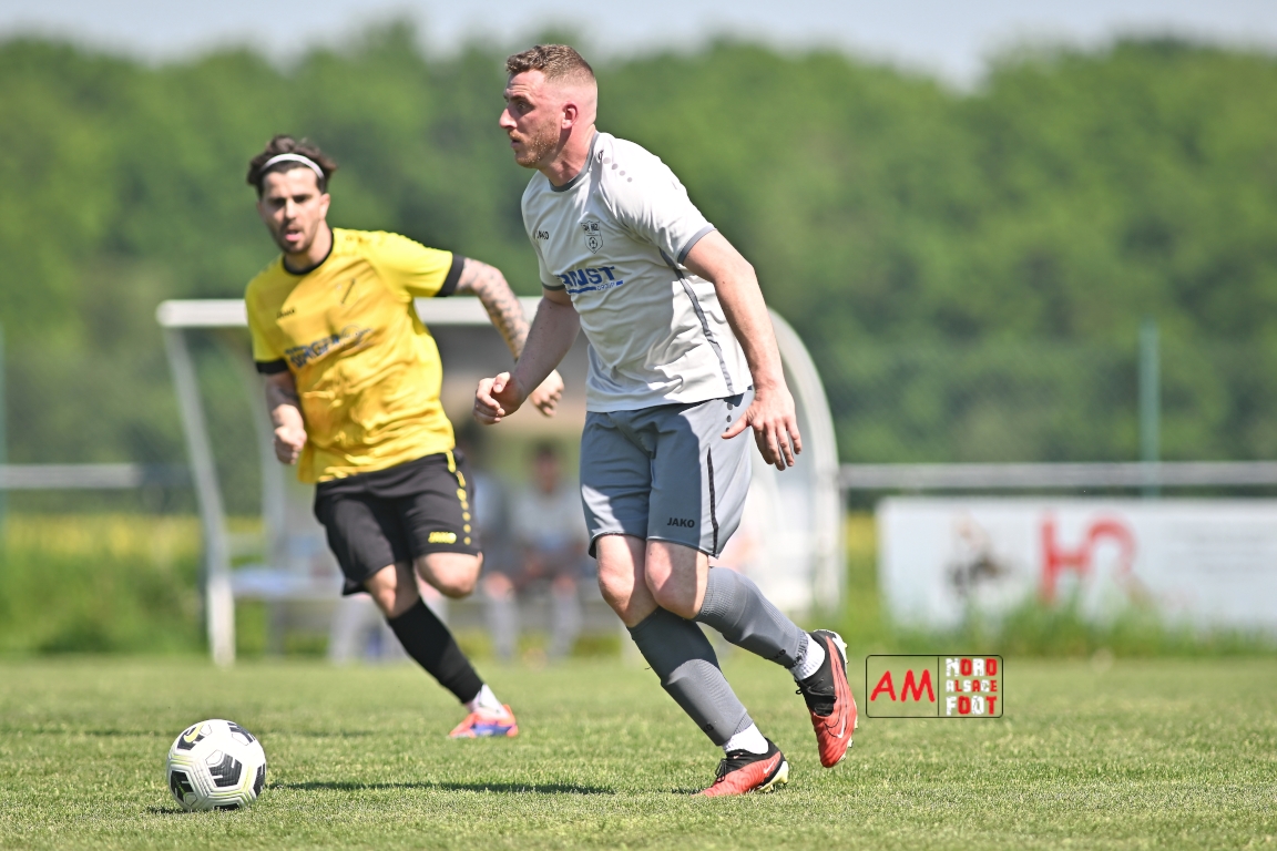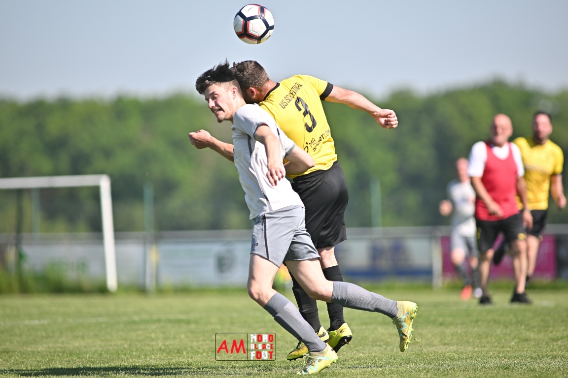 A l’occasion de la seizième journée de championnat en District 5 (Poule B), l’US Schleithal 2 (2e) accueillait le FC Dambach/Neunhoffen 1 (8e) afin de tenter d’enchaîner par une cinquième victoire consécutive pour conforter un peu plus sa place de dauphins de cette poule, et ce, face à des adversaires n’ayant plus gagné un match de championnat depuis le 16 mars dernier et cette victoire face au SC Rittershoffen (1-6). Après une première période se soldant par un léger avantage en faveur des locaux grâce à des réalisations signées Policarpo Kévin (23e) et Schmitt Geoffrey (41e) contre un but inscrit en début de match par Lindauer Ludovic (6e) en faveur des visiteurs, les locaux allaient faire le break peu avant l’heure de jeu par l’intermédiaire de Policarpo Kévin (58e) avant que les visiteurs ne trouvent les ressources nécessaires pour réduire la marque grâce à un but inscrit par Kieger Ludovic (72e) et, au cours des dix dernières minutes de jeu, les jaunes et noirs allaient ajouter deux buts au compteur par l’intermédiaire de Policarpo Kévin (82e) et Lienhardt Joey (85e) avant qu’ils ne s’imposent sur ce score de 5-2. Retrouvez, ci-dessous, quelques images de cette rencontre et, pour en apprécier le contenu, veuillez cliquer sur l’une d’entre elles pour afficher le diaporama.