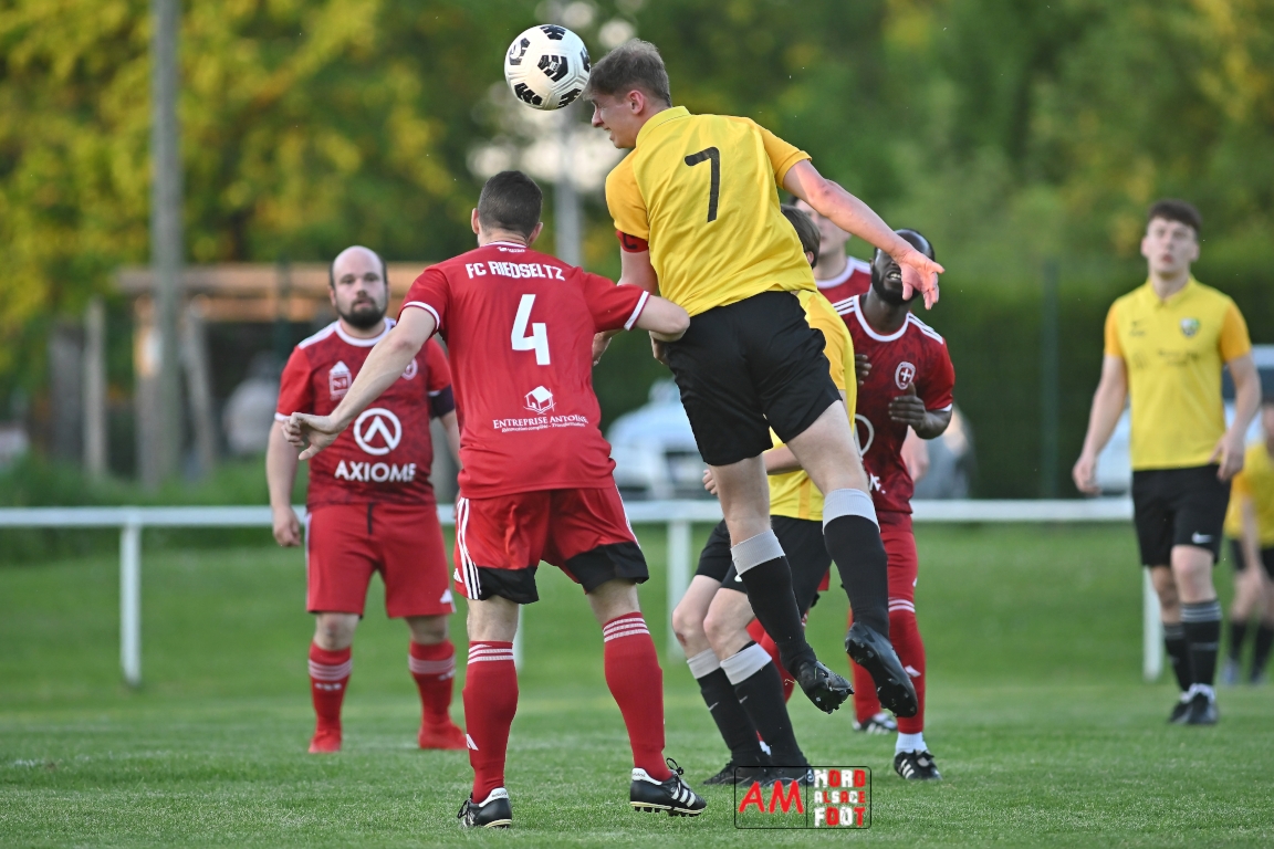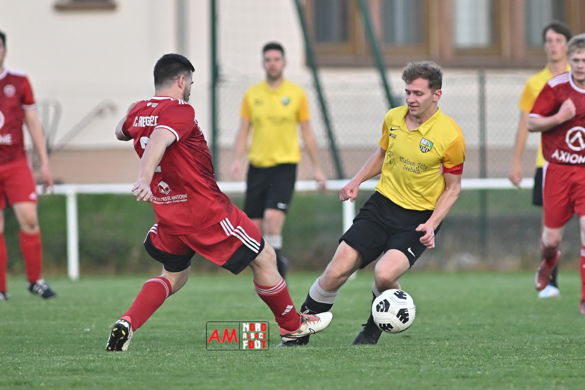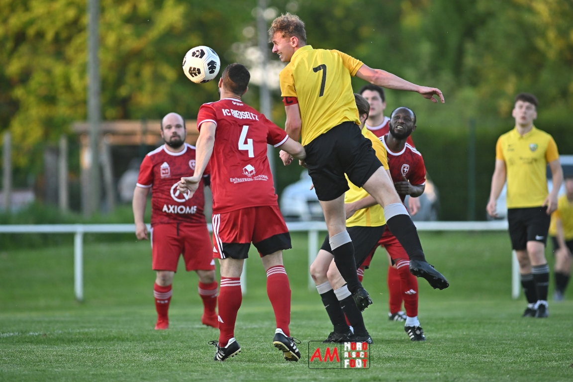 A l’occasion de la seizième journée de championnat en District 6 (Poule B), le FC Riedseltz 2 (2e) accueillait l’AS Seebach 2 (4e) avec la ferme intention de conserver leur place de dauphin de ce groupe en faveur d’une victoire ce mercredi, et ce, face à leurs voisins de Seebach s’étant déplacés pour confirmer leur récent succès décroché dimanche dernier face au FC Herrlisheim 3 (1-3). Après une première période se soldant par un court avantage en faveur des locaux (1-0), ces derniers allaient doubler la mise en seconde période avant que les visiteurs ne réduisent la marque en fin de rencontre sans qu’ils ne parviennent à égaliser, le FC Riedseltz 2 s’imposant finalement sur ce score de 2-1. Retrouvez, ci-dessous, quelques images de cette rencontre et, pour en apprécier le contenu, veuillez cliquer sur l’une d’entre elles pour afficher le diaporama.