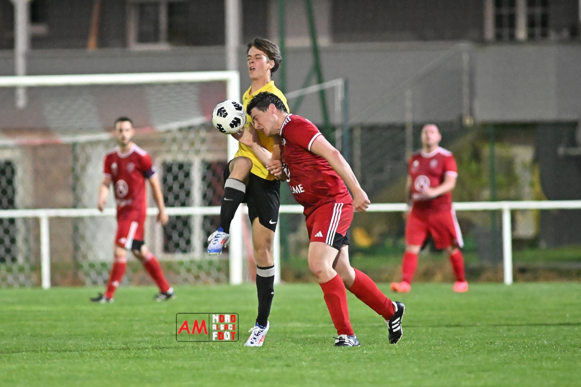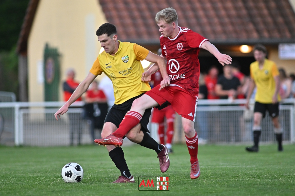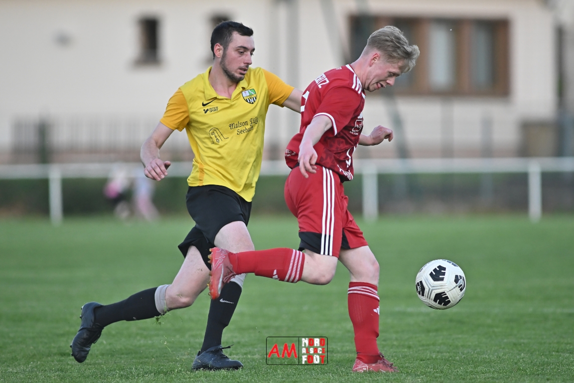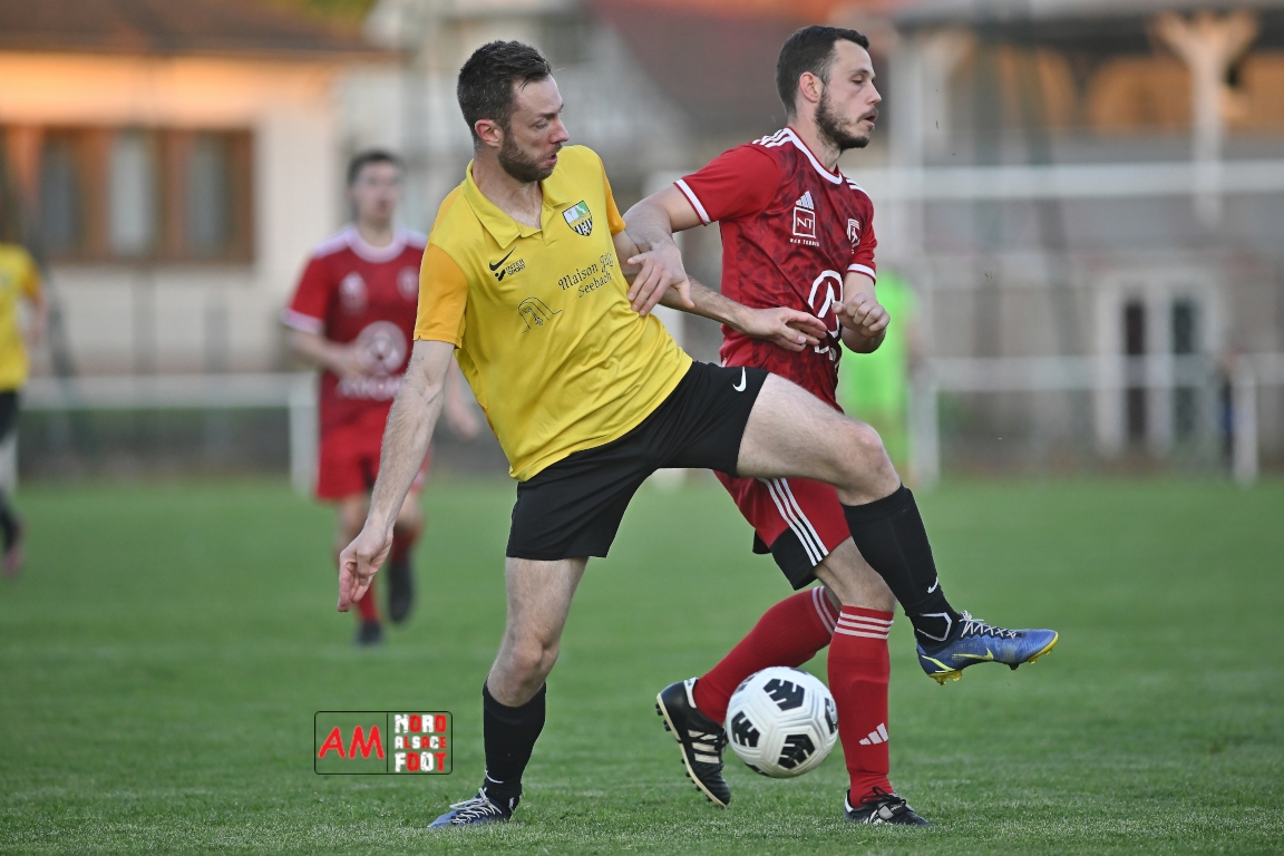 A l’occasion de la seizième journée de championnat en District 6 (Poule B), le FC Riedseltz 2 (2e) accueillait l’AS Seebach 2 (4e) avec la ferme intention de conserver leur place de dauphin de ce groupe en faveur d’une victoire ce mercredi, et ce, face à leurs voisins de Seebach s’étant déplacés pour confirmer leur récent succès décroché dimanche dernier face au FC Herrlisheim 3 (1-3). Après une première période se soldant par un court avantage en faveur des locaux (1-0), ces derniers allaient doubler la mise en seconde période avant que les visiteurs ne réduisent la marque en fin de rencontre sans qu’ils ne parviennent à égaliser, le FC Riedseltz 2 s’imposant finalement sur ce score de 2-1. Retrouvez, ci-dessous, quelques images de cette rencontre et, pour en apprécier le contenu, veuillez cliquer sur l’une d’entre elles pour afficher le diaporama.