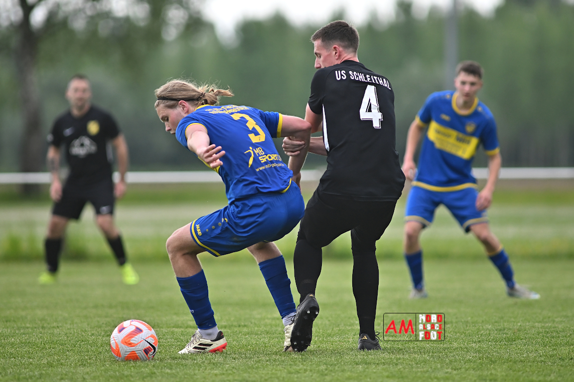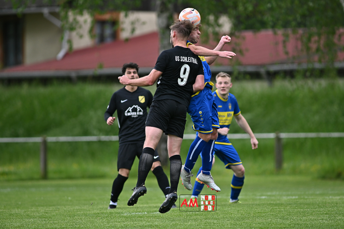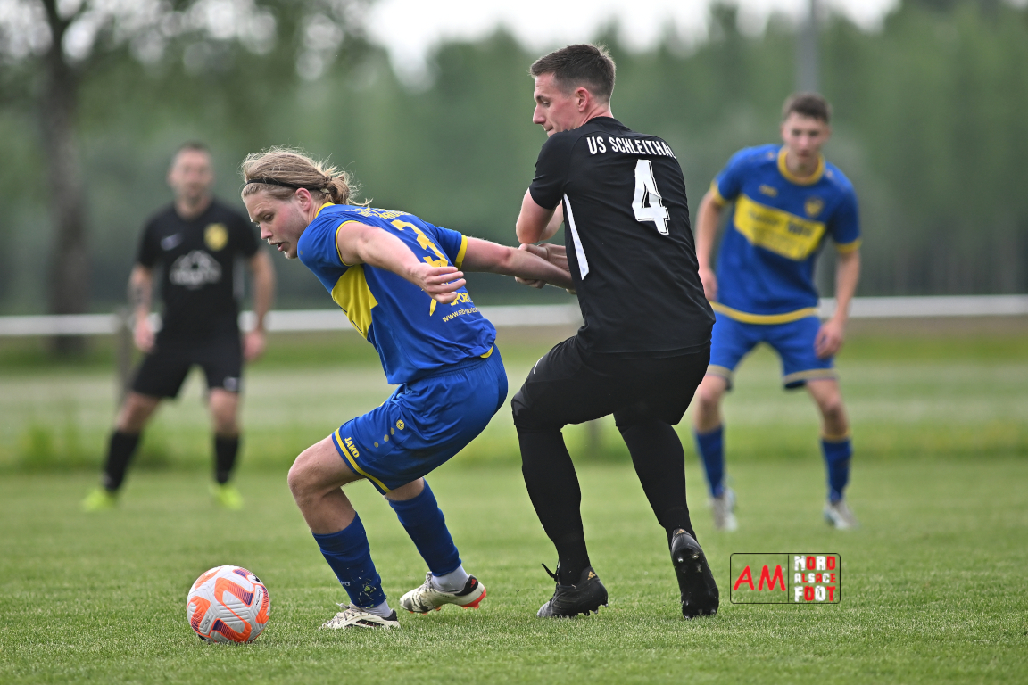 A l’occasion de la dix-neuvième journée de championnat en District 5 (Poule B), l’entente Munchhausen/Mothern 2 (1er) accueillait l’US Schleithal 2 (2e) avec la ferme intention de prendre sa revanche après la défaite du match aller (4-0). Après une première période se soldant par un léger avantage en faveur des visiteurs grâce à des réalisations signées Ozcan Seyh (9e) et Lienhardt Joey (27e) contre un but inscrit par Gerber Loïc (27e) en faveur des locaux, les doublures schleithaloises allaient parvenir à faire le break à la 56e minute de jeu par l’intermédiaire de Sayah Romain avant qu’ils ne finissent par s’imposer sur ce score de 1-3. Retrouvez, ci-dessous, quelques images de cette rencontre et, pour en apprécier le contenu, veuillez cliquer sur l’une d’entre elles pour afficher le diaporama.