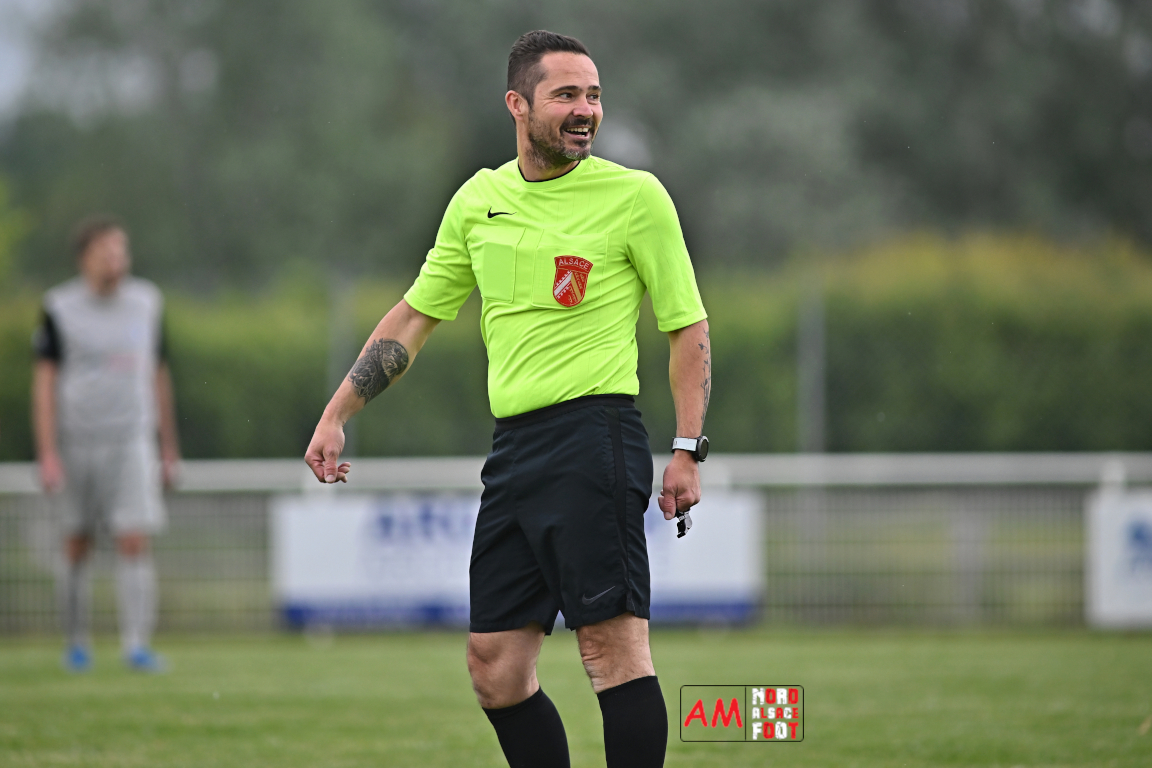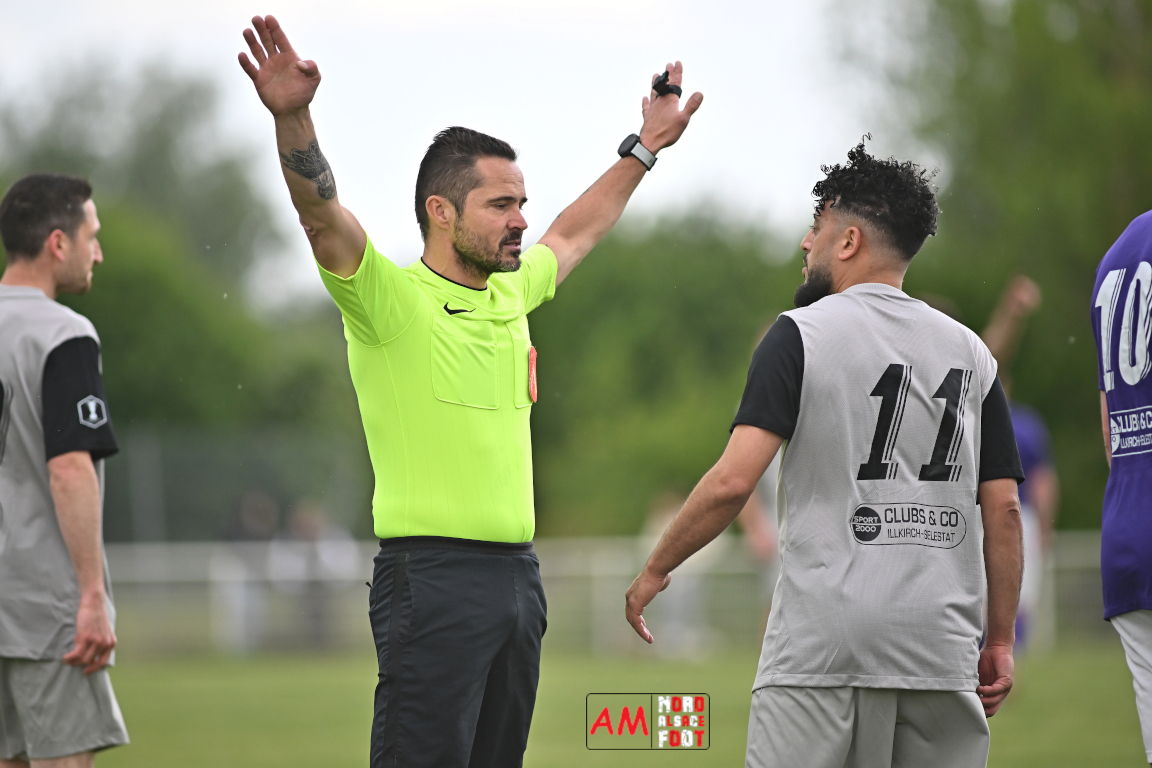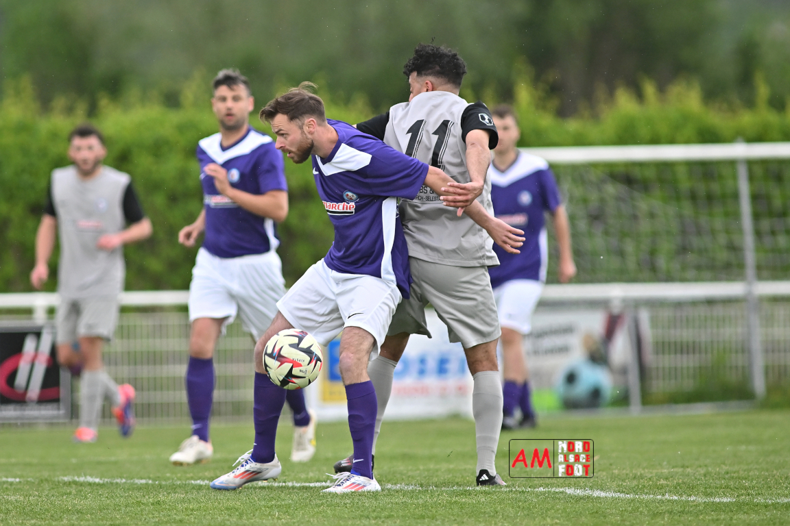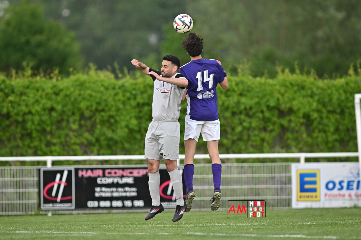 A l’occasion des demi-finales de la Coupe d’Alsace – Intermarché, la SS Beinheim accueillait l’AS Bischoffsheim afin de tenter de s’offrir un ticket pour la finale du 29 mai à Schoenau. Après une première période se soldant par un score de parité grâce à l’ouverture du score des locaux signée Beushausen John (34e) suivie de l’égalisation des visiteurs signée Di Reda Gino (38e), les visiteurs allaient prendre le large en seconde période en inscrivant trois buts par l’intermédiaire de Cicutta Jérémie (70e), de Pfeffer Pierre Louis (75e) et de Di Reda Gino pour son doublé (90e) avant que, au cours de la dernière minute du temps additionnel de cette seconde période, Dietenbeck Steeve ne réduise la marque (90e+4) mais, au final, c’est l’AS Bischoffsheim qui composta son billet pour la finale de cette compétition en s’imposant sur ce score de 2-4. Retrouvez, ci-dessous, quelques images de cette rencontre et, pour en apprécier le contenu, veuillez cliquer sur l’une d’entre elles pour afficher le diaporama.
