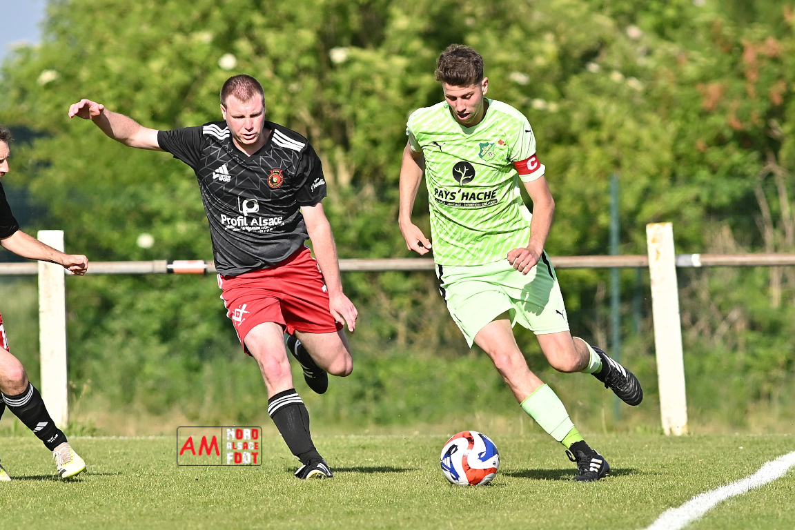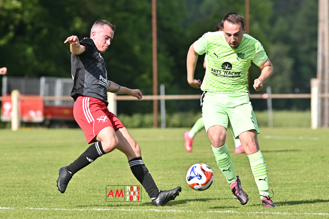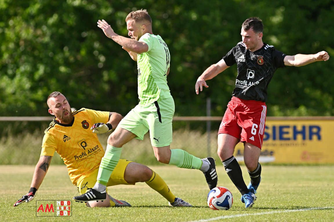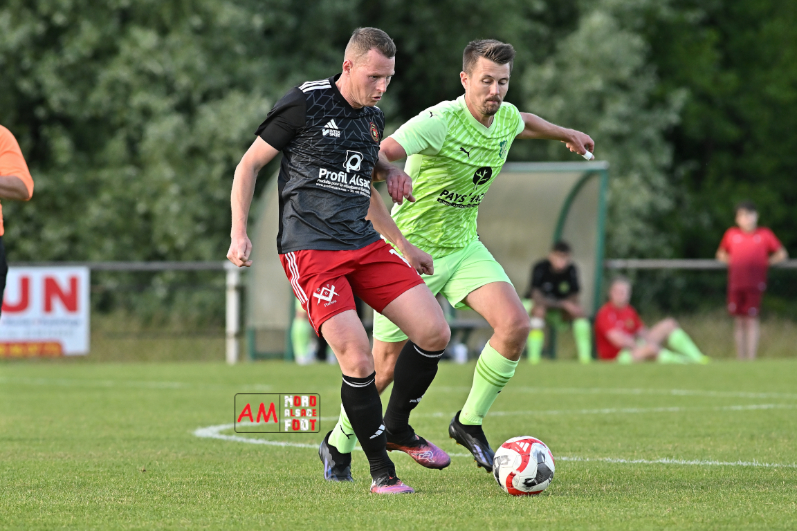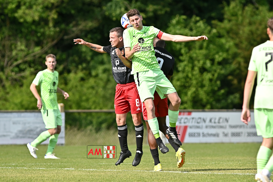 A l’occasion de l’avant-dernière journée de championnat en District 2 (Poule B), le FC Niederlauterbach (10e) accueillait le SC Roeschwoog (2e) afin de tenter de glaner les derniers points pour assurer leur maintien avant la dernière journée de championnat, et ce, face à des adversaires n’étant qu’à un point du trône de leader de cette poule. Après une première période se soldant par un léger avantage en faveur des visiteurs grâce à des réalisations signées Gueracague Emilio (16e) et Debure Kenny (34e) contre une réduction du score des visiteurs signée Schmitt Thomas (43e), les deux équipes allaient se neutraliser en seconde période avant que le SC Roeschwoog ne finisse par s’imposer sur ce score de 1-2. Retrouvez, ci-dessous, quelques images de cette rencontre et, pour en apprécier le contenu, veuillez cliquer sur l’une d’entre elles pour afficher le diaporama.