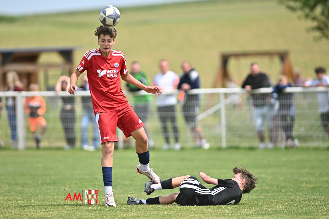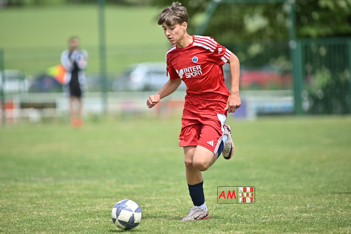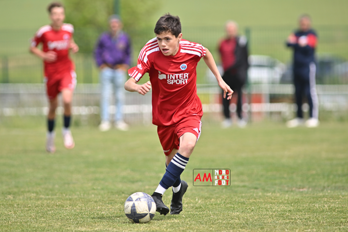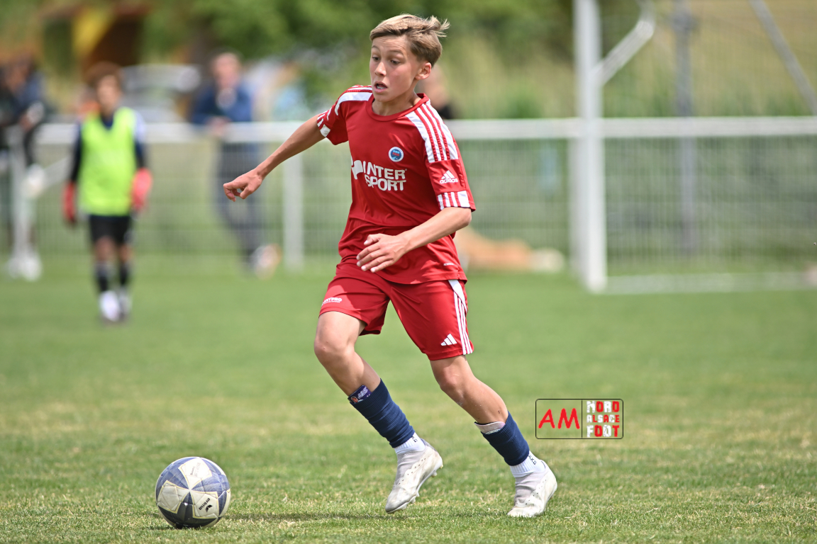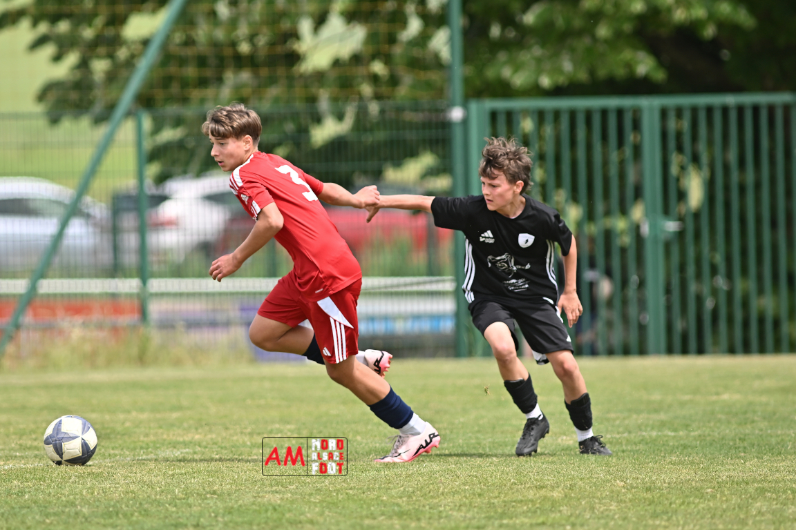 A l’occasion de l’avant-dernière journée de championnat chez les U13/D1 (Poule A), le Groupement Jeunes d’Alsace du Nord accueillait le FR Haguenau afin de tenter de prendre sa revanche du match aller (4-0), et ce, face à des adversaires voulant conclure leur saison par une victoire. Après une première période se soldant par un score de parité (1-1), les visiteurs allaient prendre le large en seconde période en inscrivant pas moins de six buts avant qu’ils ne finissent par largement s’imposer sur ce score de 1-7. Retrouvez, ci-dessous, quelques images de cette rencontre et, pour en apprécier le contenu, veuillez cliquer sur l’une d’entre elles pour afficher le diaporama.