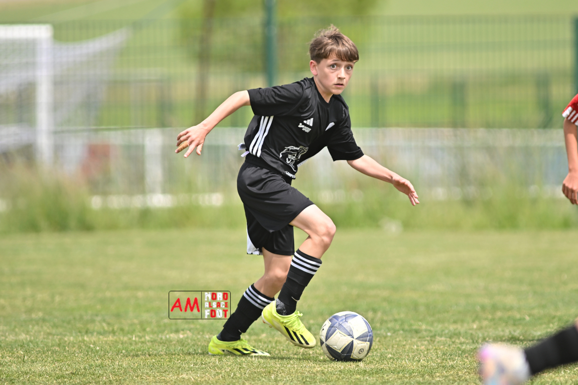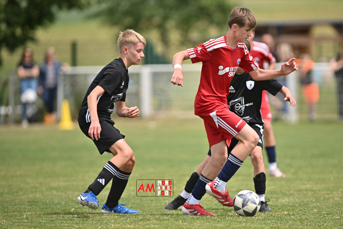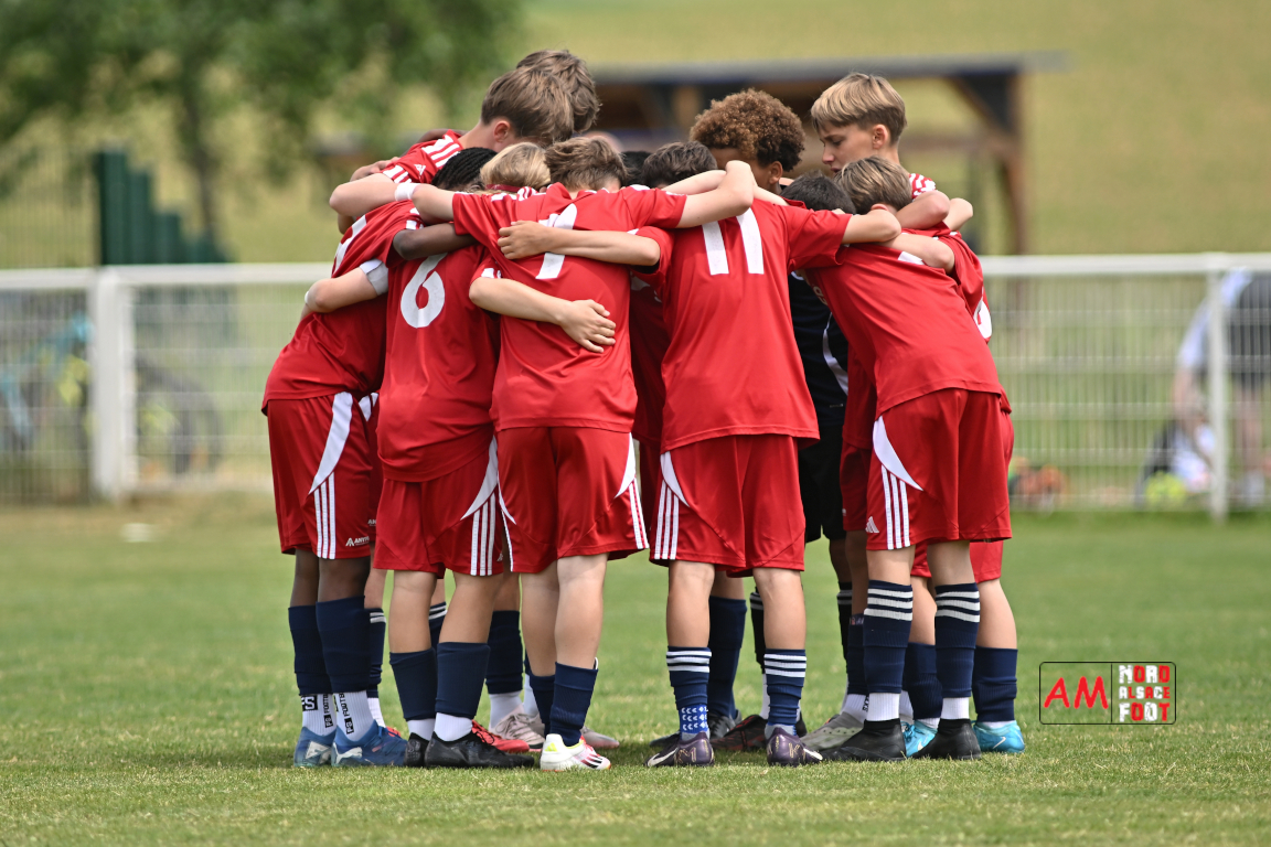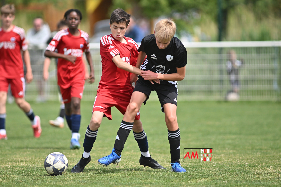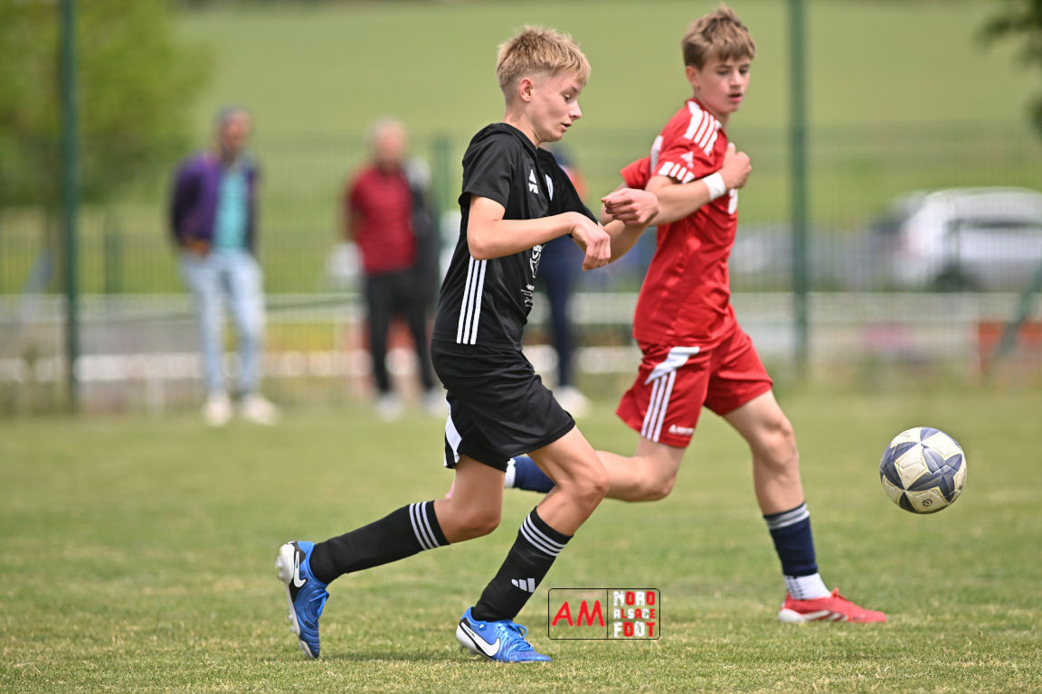 A l’occasion de l’avant-dernière journée de championnat chez les U13/D1 (Poule A), le Groupement Jeunes d’Alsace du Nord accueillait le FR Haguenau afin de tenter de prendre sa revanche du match aller (4-0), et ce, face à des adversaires voulant conclure leur saison par une victoire. Après une première période se soldant par un score de parité (1-1), les visiteurs allaient prendre le large en seconde période en inscrivant pas moins de six buts avant qu’ils ne finissent par largement s’imposer sur ce score de 1-7. Retrouvez, ci-dessous, quelques images de cette rencontre et, pour en apprécier le contenu, veuillez cliquer sur l’une d’entre elles pour afficher le diaporama.
