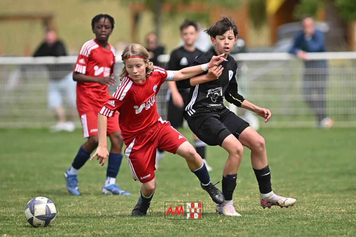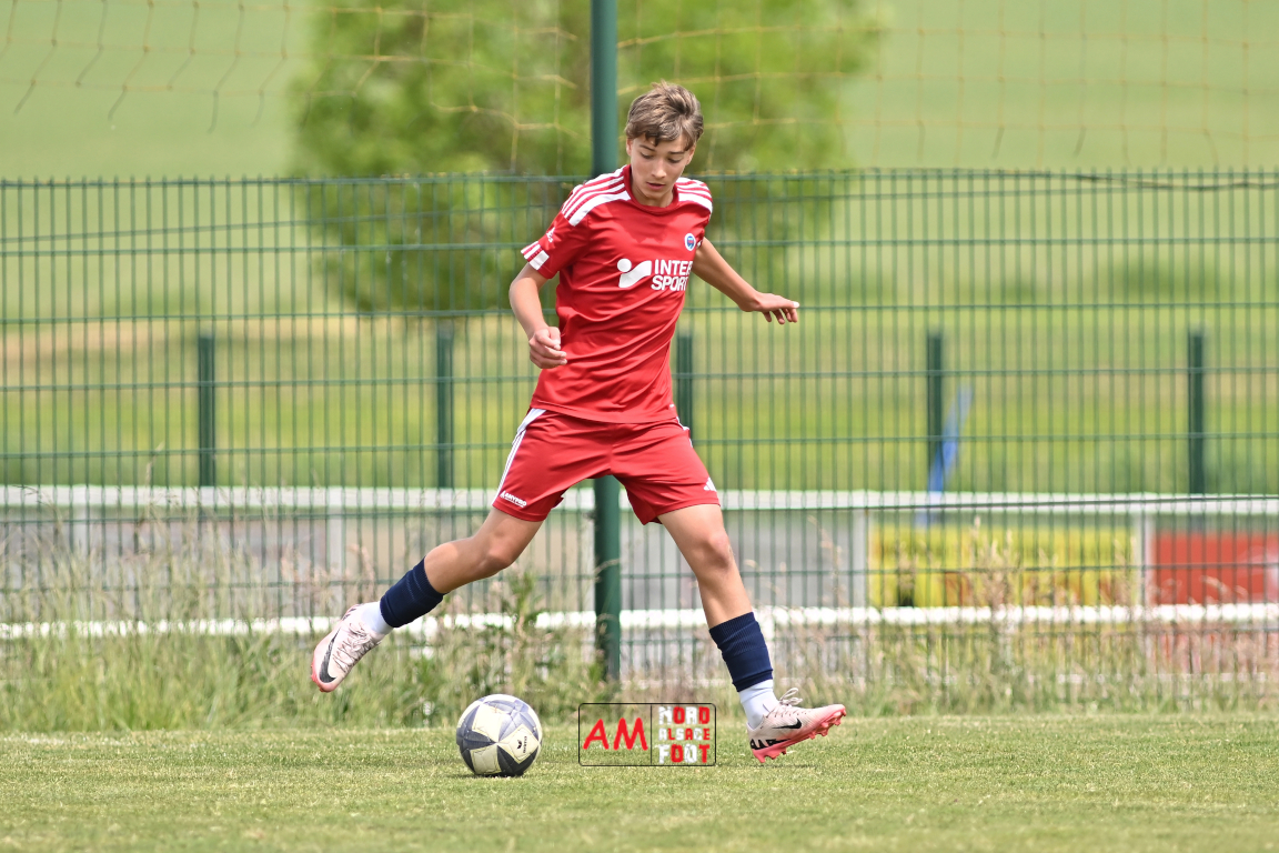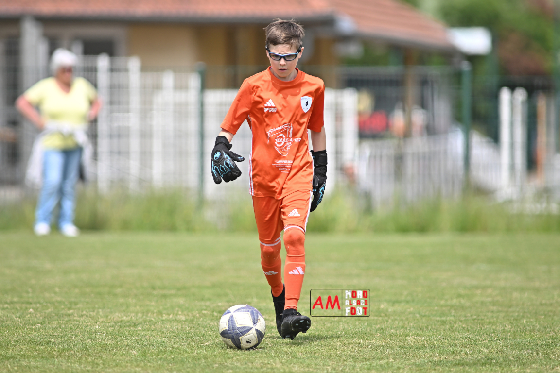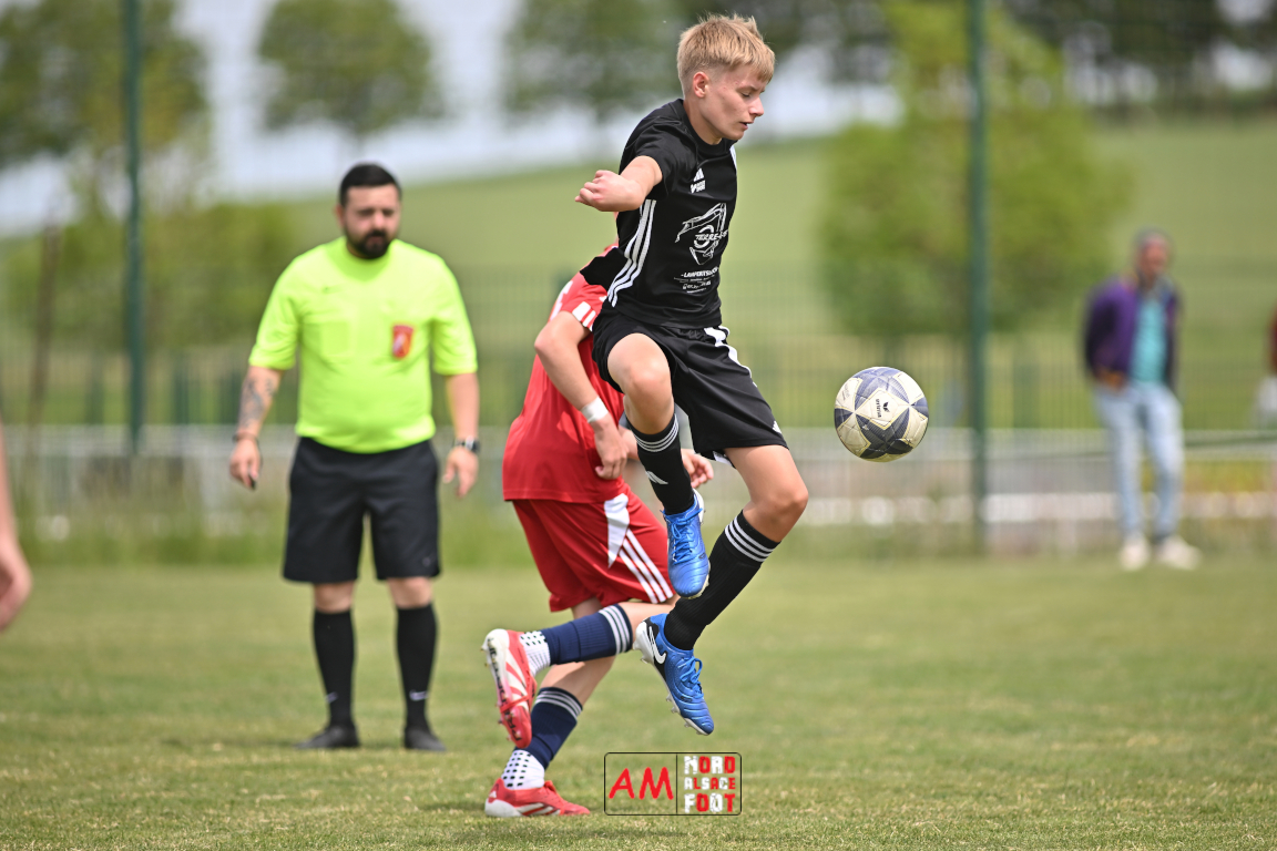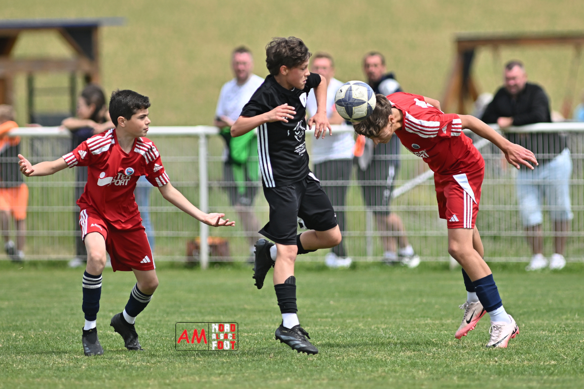 A l’occasion de l’avant-dernière journée de championnat chez les U13/D1 (Poule A), le Groupement Jeunes d’Alsace du Nord accueillait le FR Haguenau afin de tenter de prendre sa revanche du match aller (4-0), et ce, face à des adversaires voulant conclure leur saison par une victoire. Après une première période se soldant par un score de parité (1-1), les visiteurs allaient prendre le large en seconde période en inscrivant pas moins de six buts avant qu’ils ne finissent par largement s’imposer sur ce score de 1-7. Retrouvez, ci-dessous, quelques images de cette rencontre et, pour en apprécier le contenu, veuillez cliquer sur l’une d’entre elles pour afficher le diaporama.