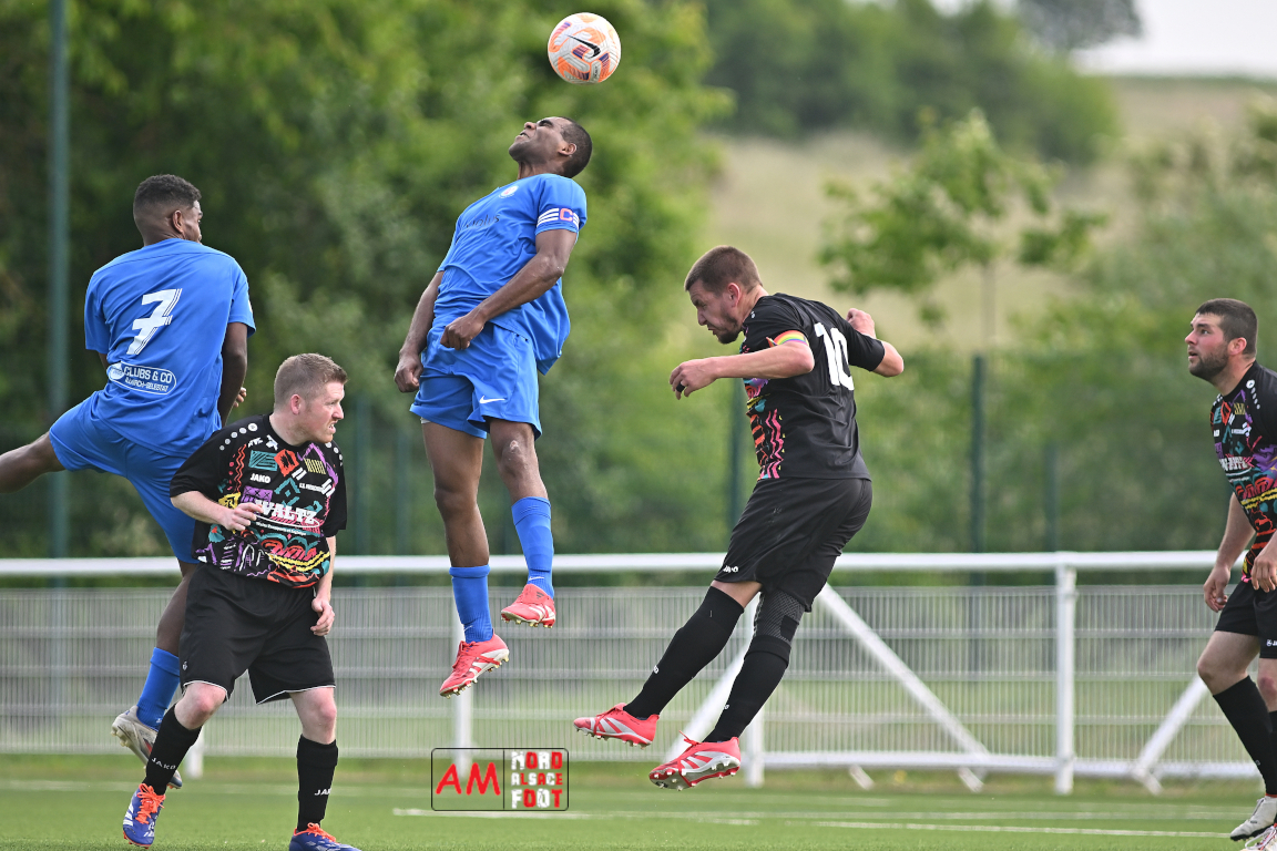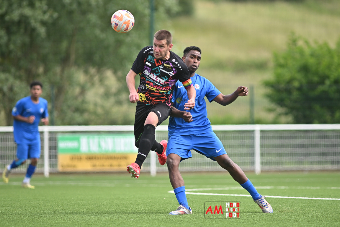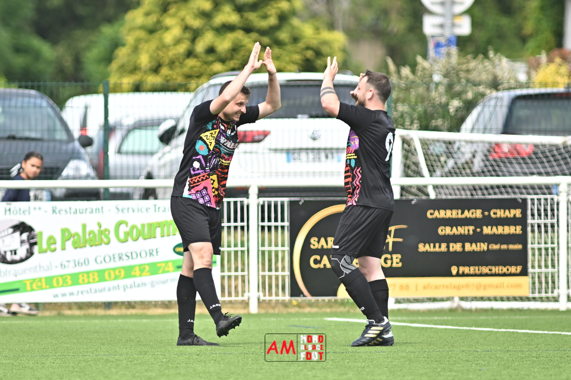 A l’occasion de la dernière journée de championnat de cette phase “Accession” en District 7 (Poule B), l’US Preuschdorf 3 (2e) accueillait le FC Batzendorf 2 (1er) afin de tenter de leur ravir le titre en faveur d’une victoire. Après une première période se soldant par un score nul et vierge, les locaux ouvrirent la marque à l’heure de jeu par l’intermédiaire de Voegele Guillaume avant que ce dernier ne s’offre un doublé quatre minutes plus tard et les Preuschdorfois conservèrent ce confortable avantage jusqu’au terme de la rencontre avant qu’ils ne célèbrent le titre comme il se doit. Retrouvez, ci-dessous, quelques images de cette rencontre et, pour en apprécier le contenu, veuillez cliquer sur l’une d’entre elles pour afficher le diaporama.