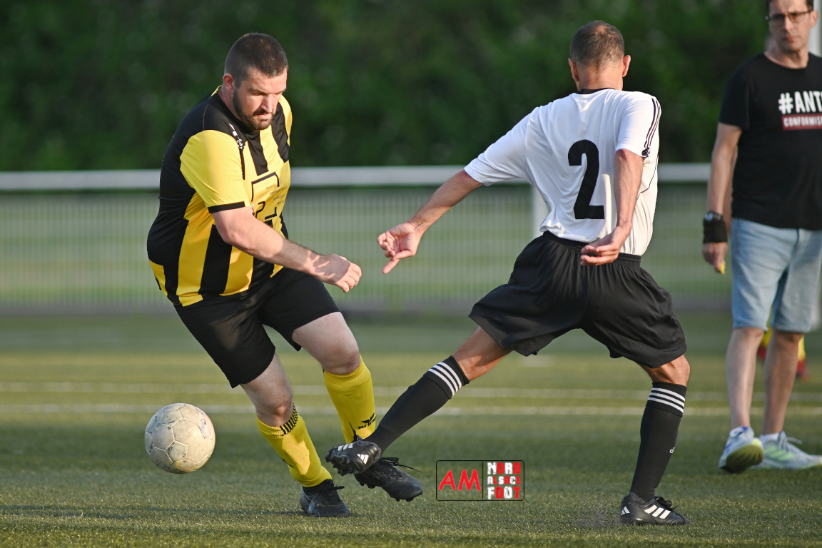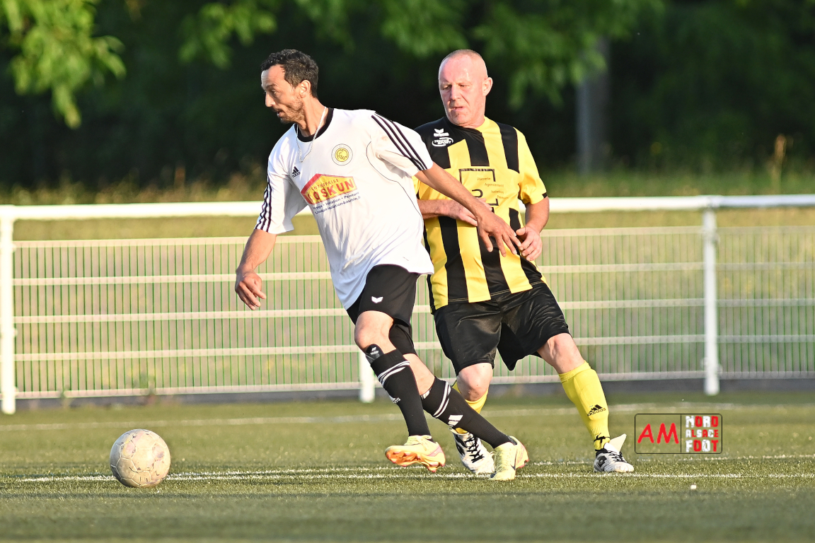 A l’occasion d’un match en retard comptant pour la treizième journée de championnat chez les Super Vétérans (Poule J), le FC Wissembourg 91 accueillait le FC Seltz 91 afin de tenter de remporter une première victoire cette saison, et ce, face à des adversaires pouvant se hisser à la quatrième place en faveur d’un succès ce vendredi. Après une première période se soldant par un score de parité grâce à l’ouverture du score des locaux signée Hof Vincent (17e) contre une égalisation des visiteurs signée Nagel Raphaël (20e), les Wissembougeois allaient reprendre l’avantage à la 39e minute de jeu par l’intermédiaire de Hof Vincent avant que Nagel ne lui réponde à la 40e de jeu et, deux minutes plus tard, Hof Vincent claqua un triplé mais ce fut sans compter sur Fischer Philippe, ce dernier égalisant définitivement à la 49e minute de jeu. Retrouvez, ci-dessous, quelques images de cette rencontre et, pour en apprécier le contenu, veuillez cliquer sur l’une d’entre elles pour afficher le diaporama.